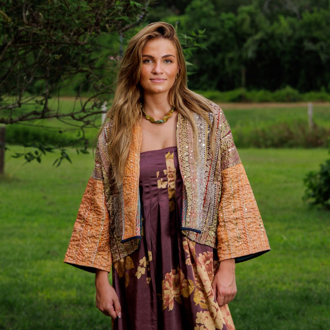 The Tara Crop Jacket is a one-of-a-kind vintage kantha coat with a...