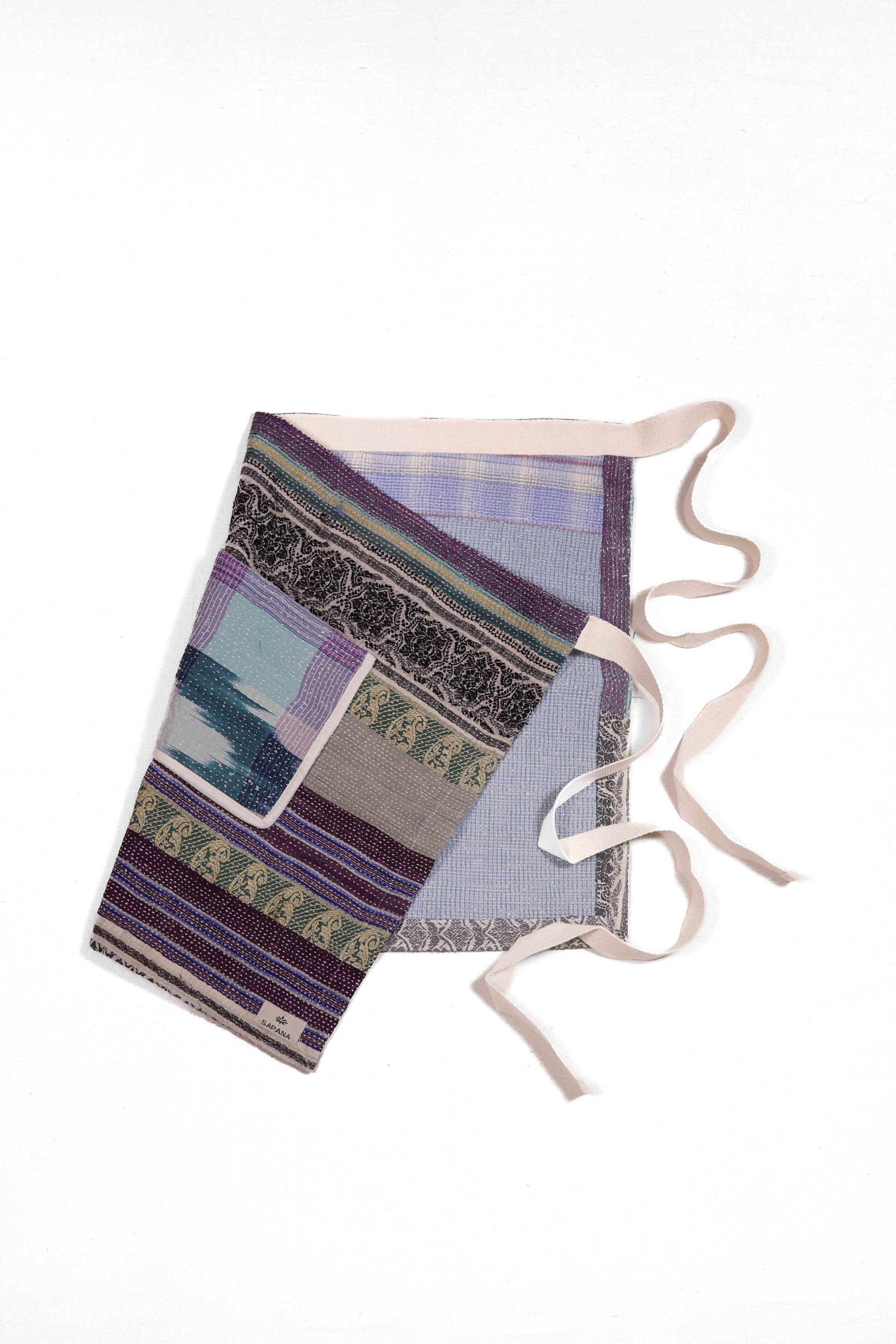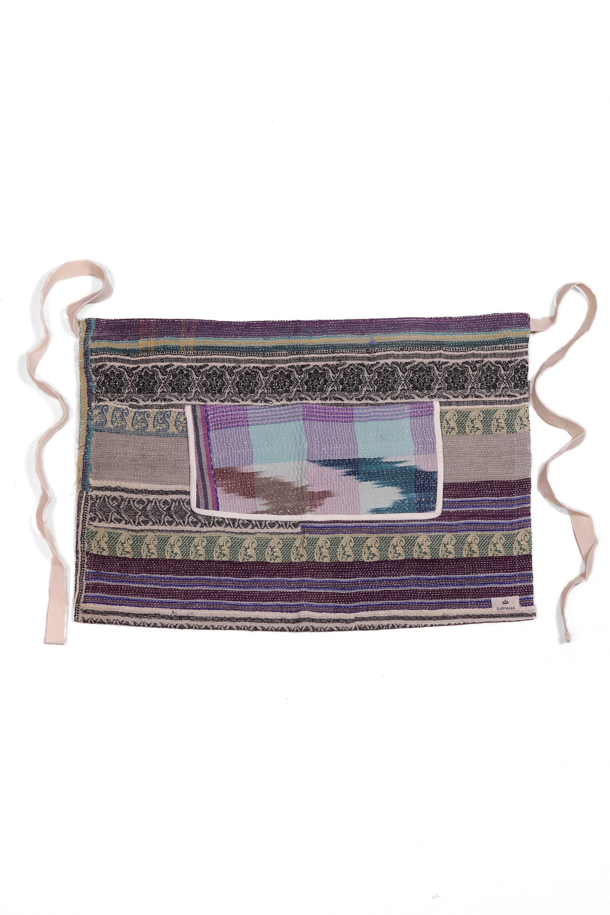 Every apron is one of a kind, made from a vintage kantha quilt. Layers of fabric bound by a hand sewn running stitch - your piece may have markings or worn areas that we find make our apron even more storied and unique.