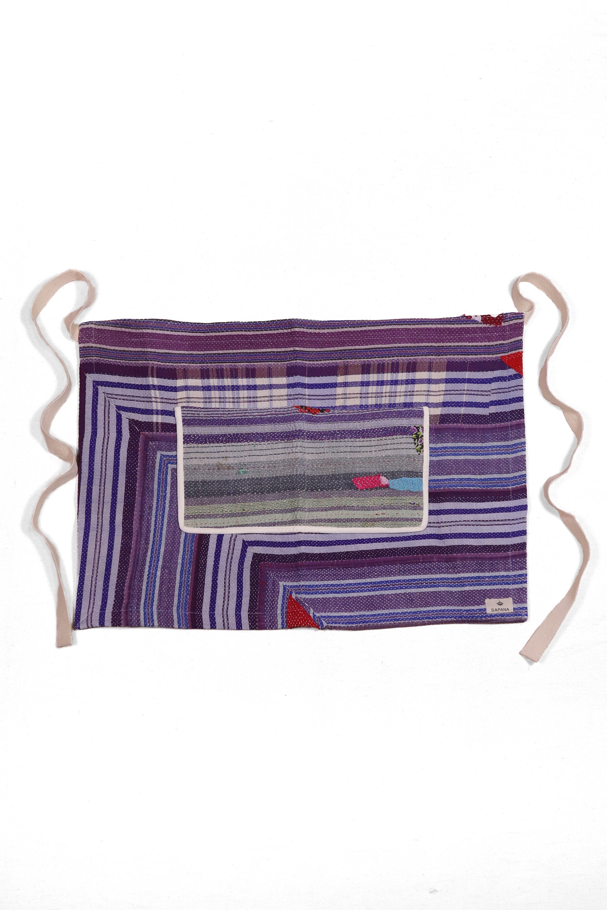 Every apron is one of a kind, made from a vintage kantha quilt. Layers of fabric bound by a hand sewn running stitch - your piece may have markings or worn areas that we find make our apron even more storied and unique.