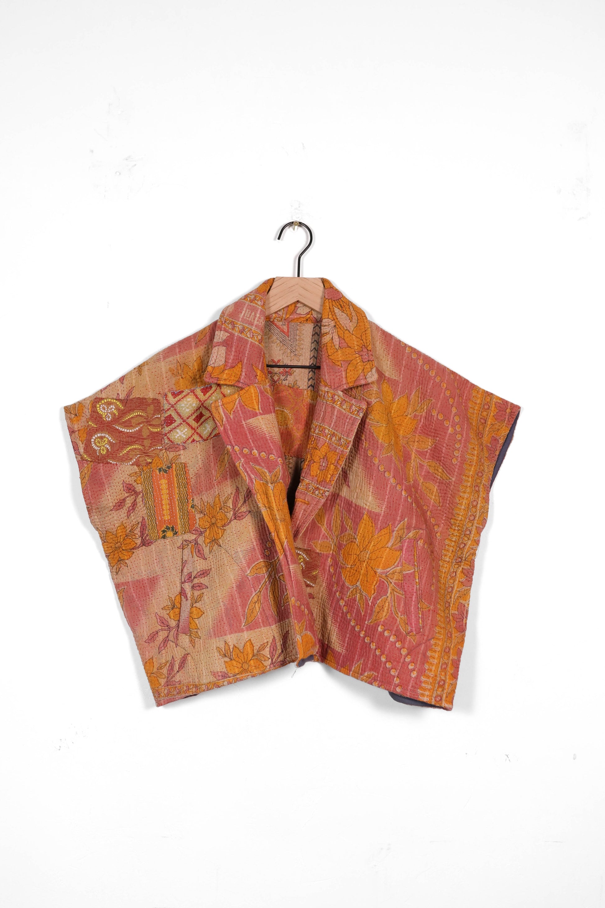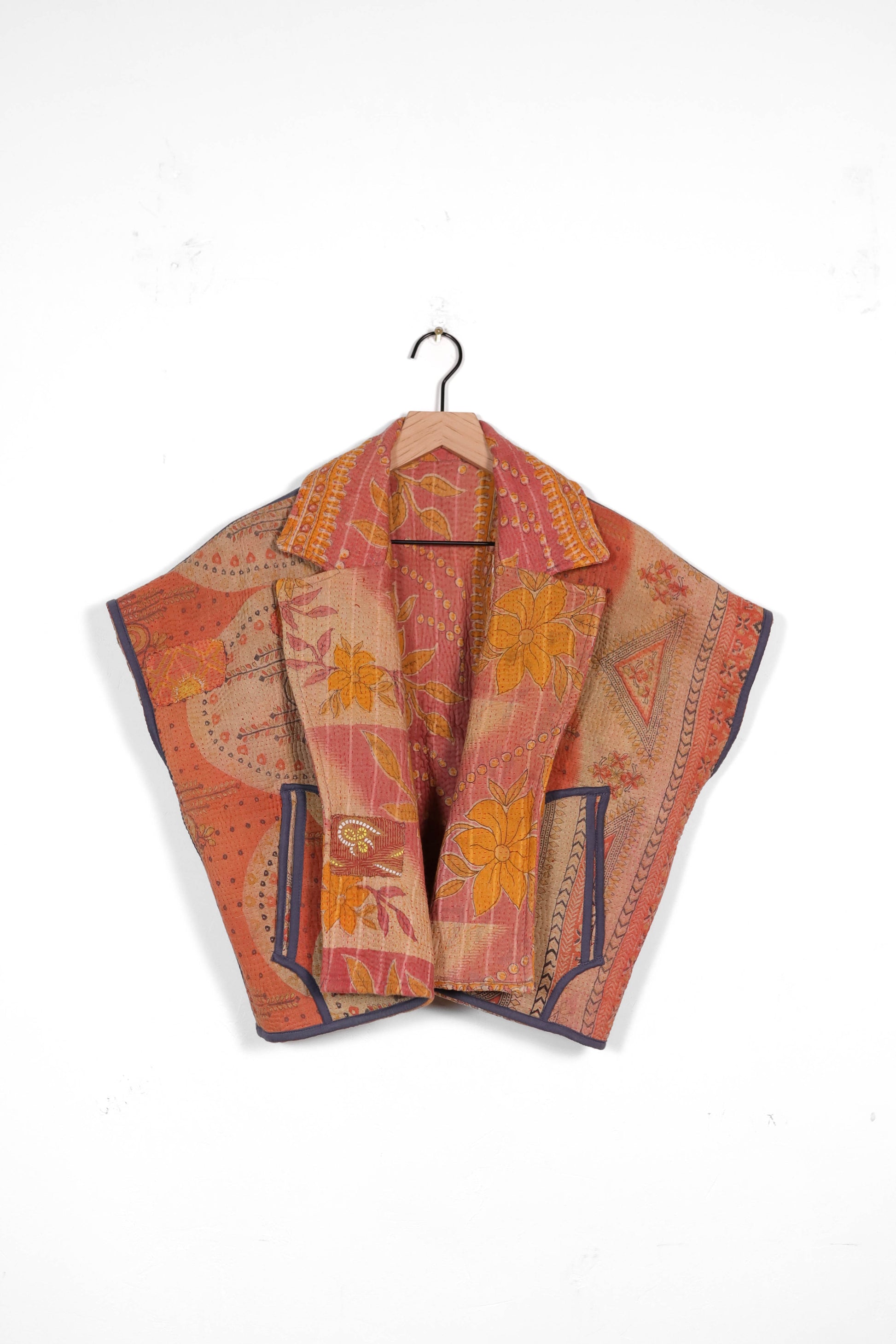 Every coat is one of a kind, made from a vintage kantha quilt. Layers of fabric bound by a hand sewn running stitch - your piece may have markings or worn areas that we find make our coats even more storied and unique.