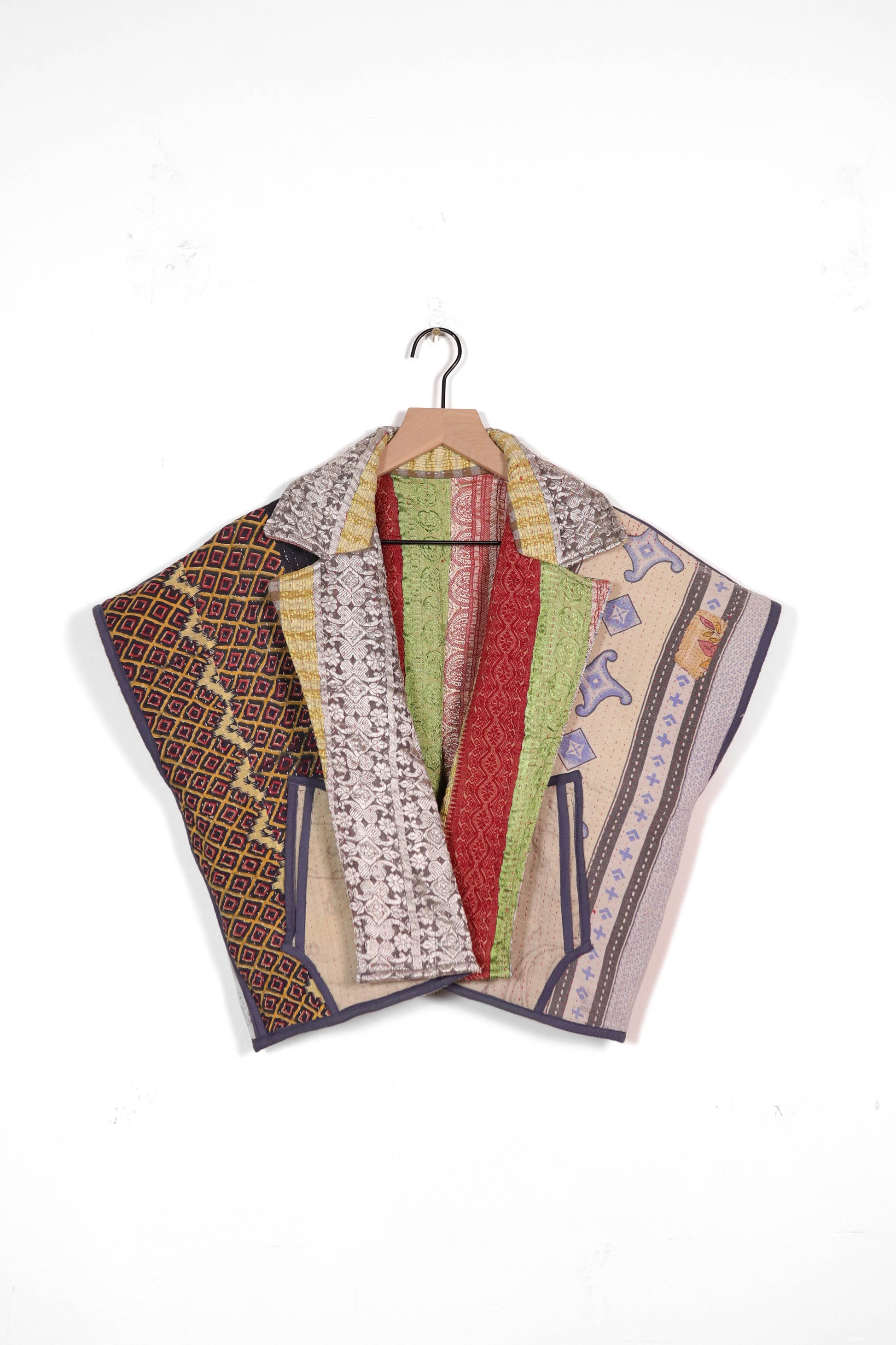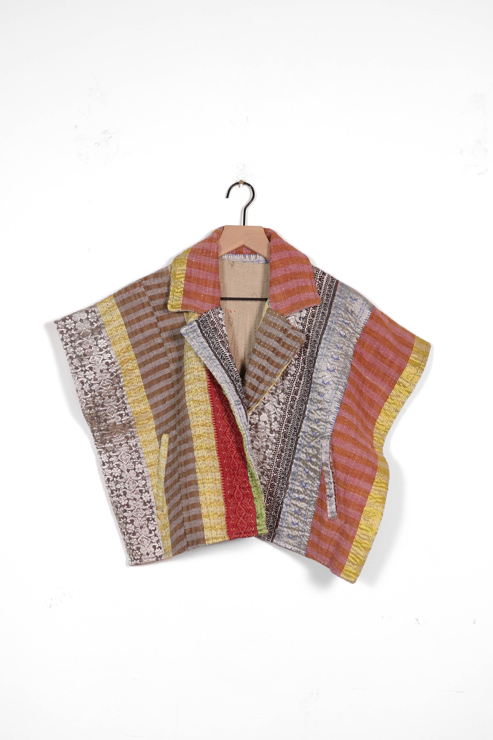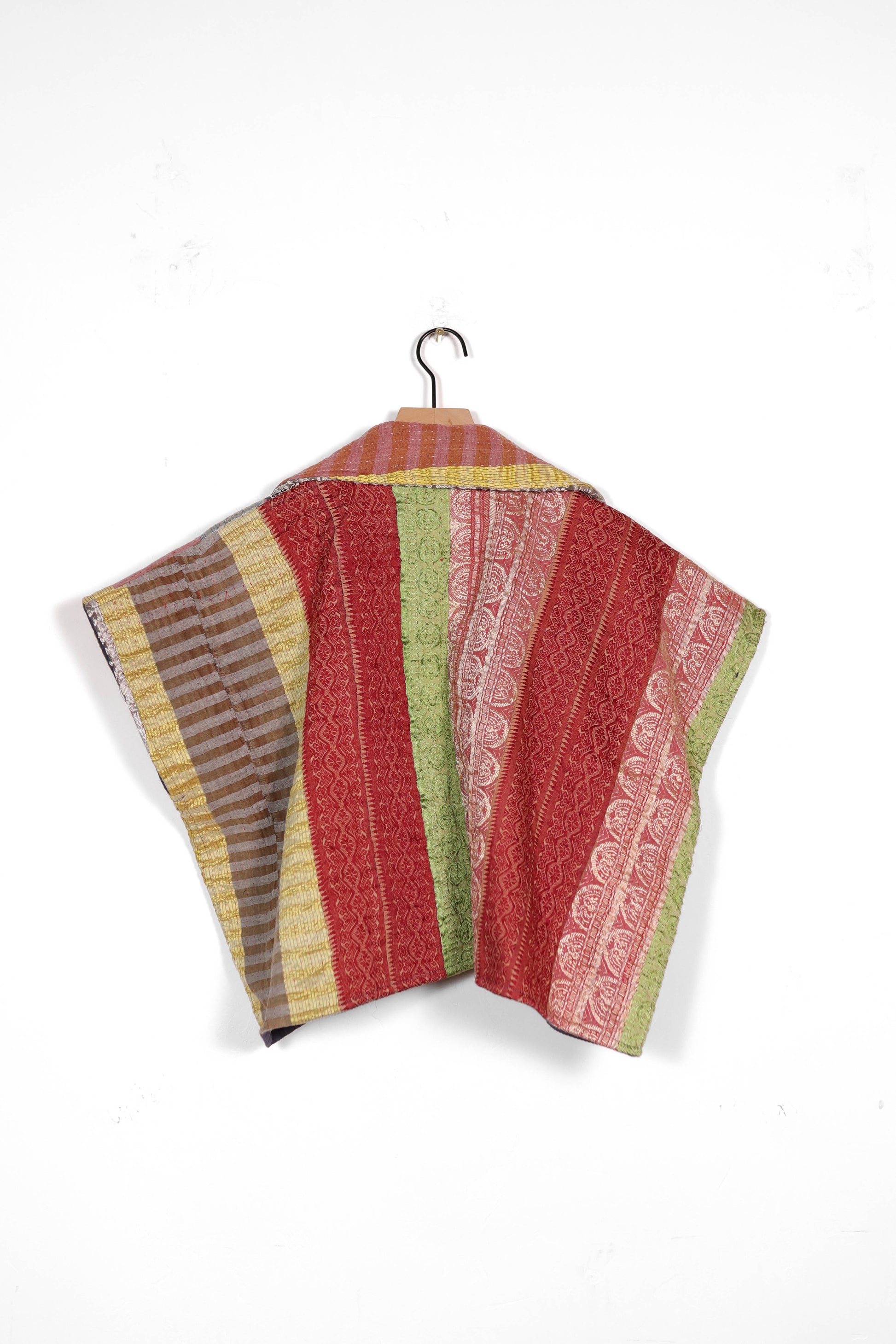 Every coat is one of a kind, made from a vintage kantha quilt. Layers of fabric bound by a hand sewn running stitch - your piece may have markings or worn areas that we find make our coats even more storied and unique.