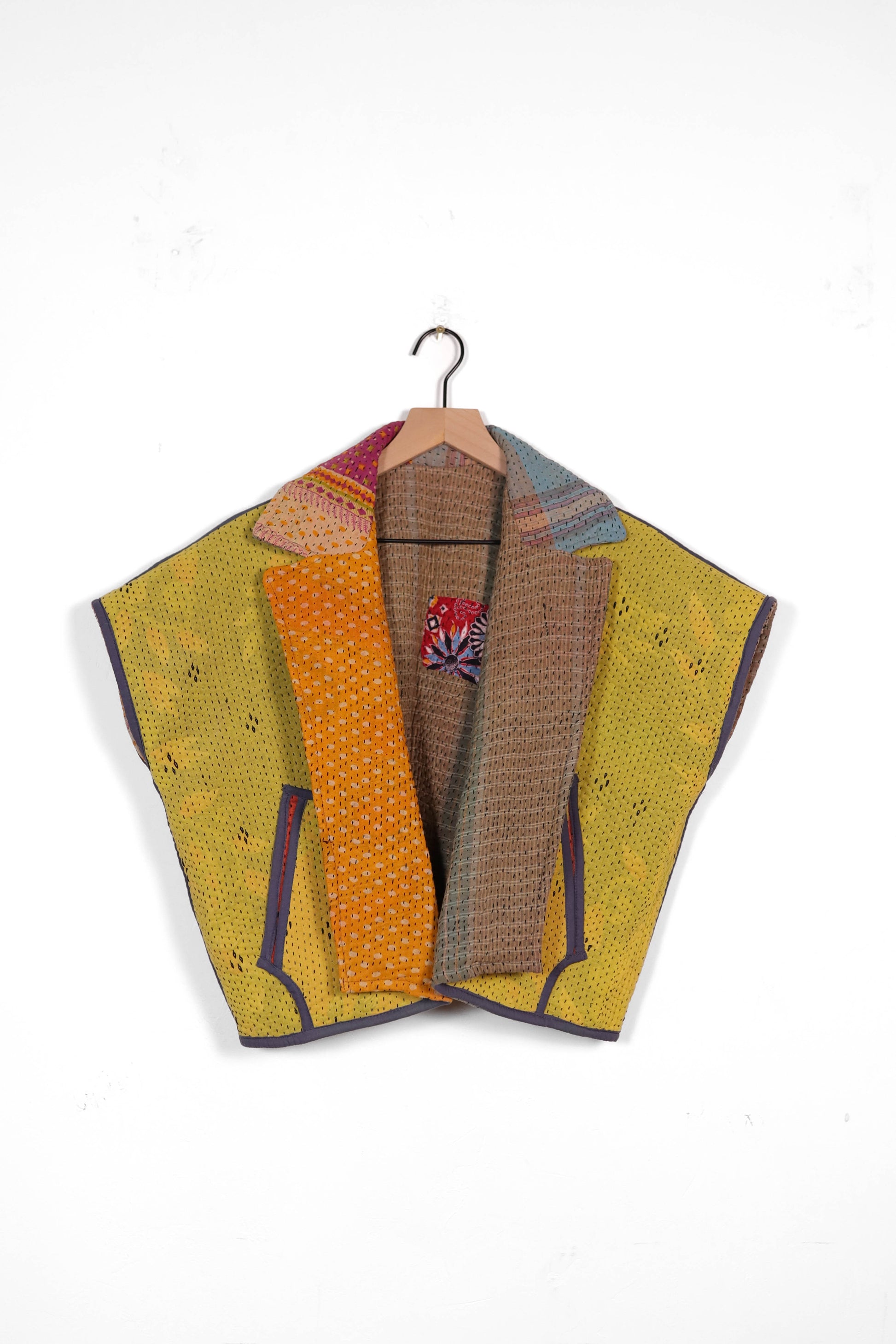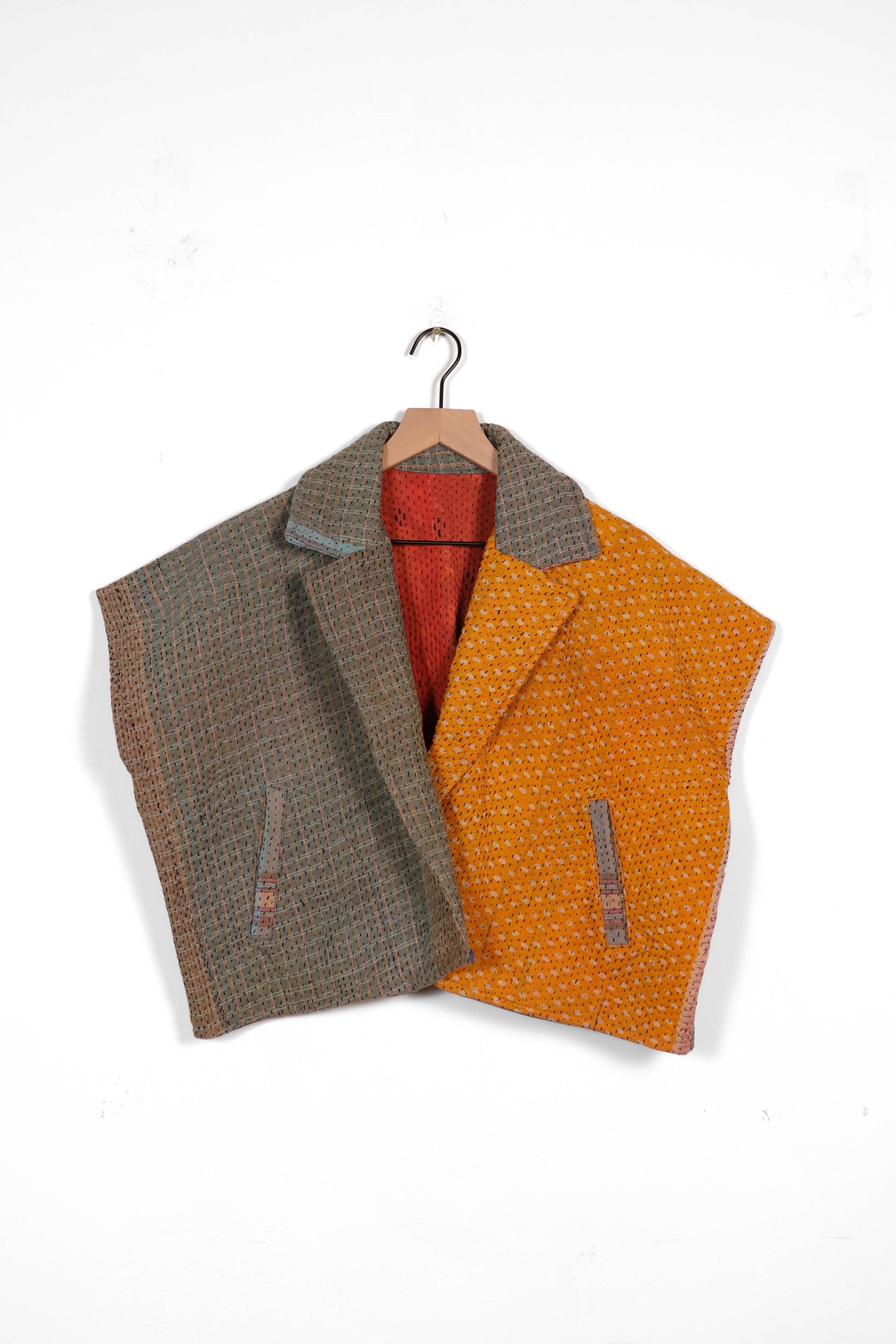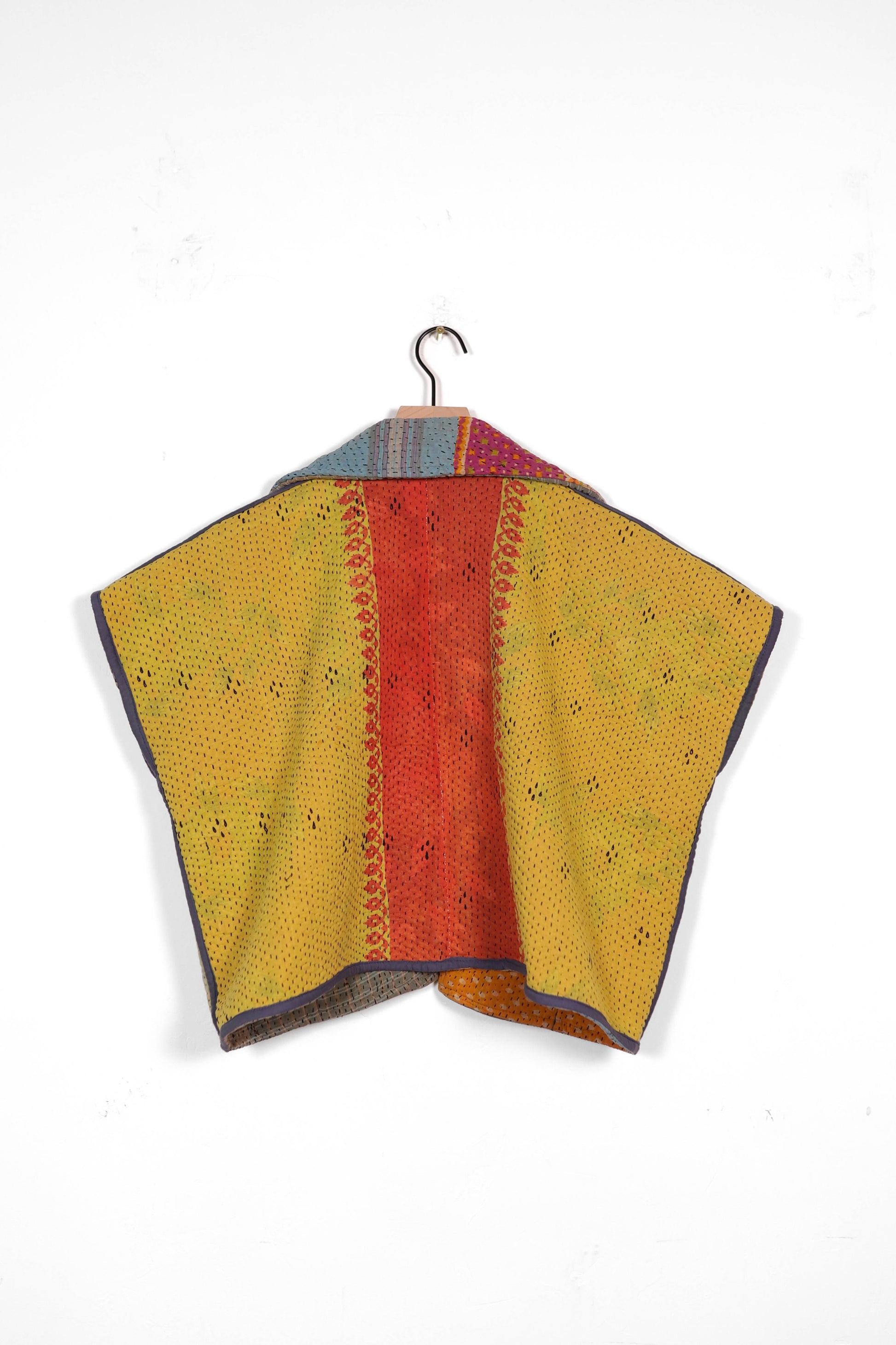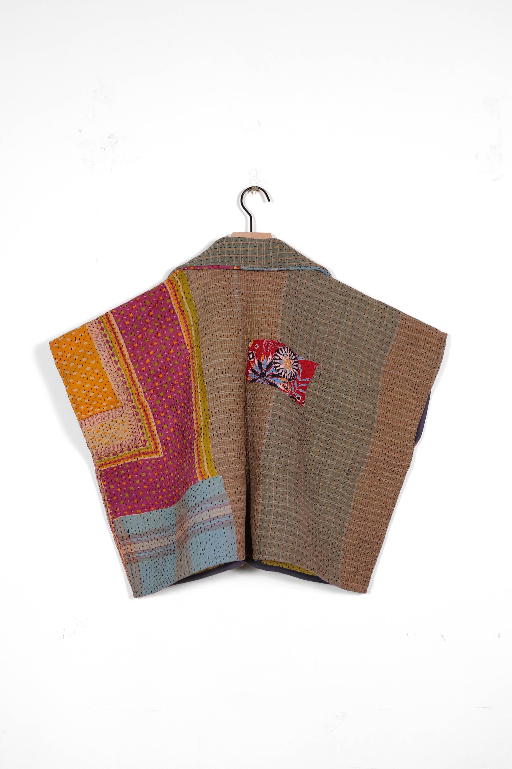 Every coat is one of a kind, made from a vintage kantha quilt. Layers of fabric bound by a hand sewn running stitch - your piece may have markings or worn areas that we find make our coats even more storied and unique.