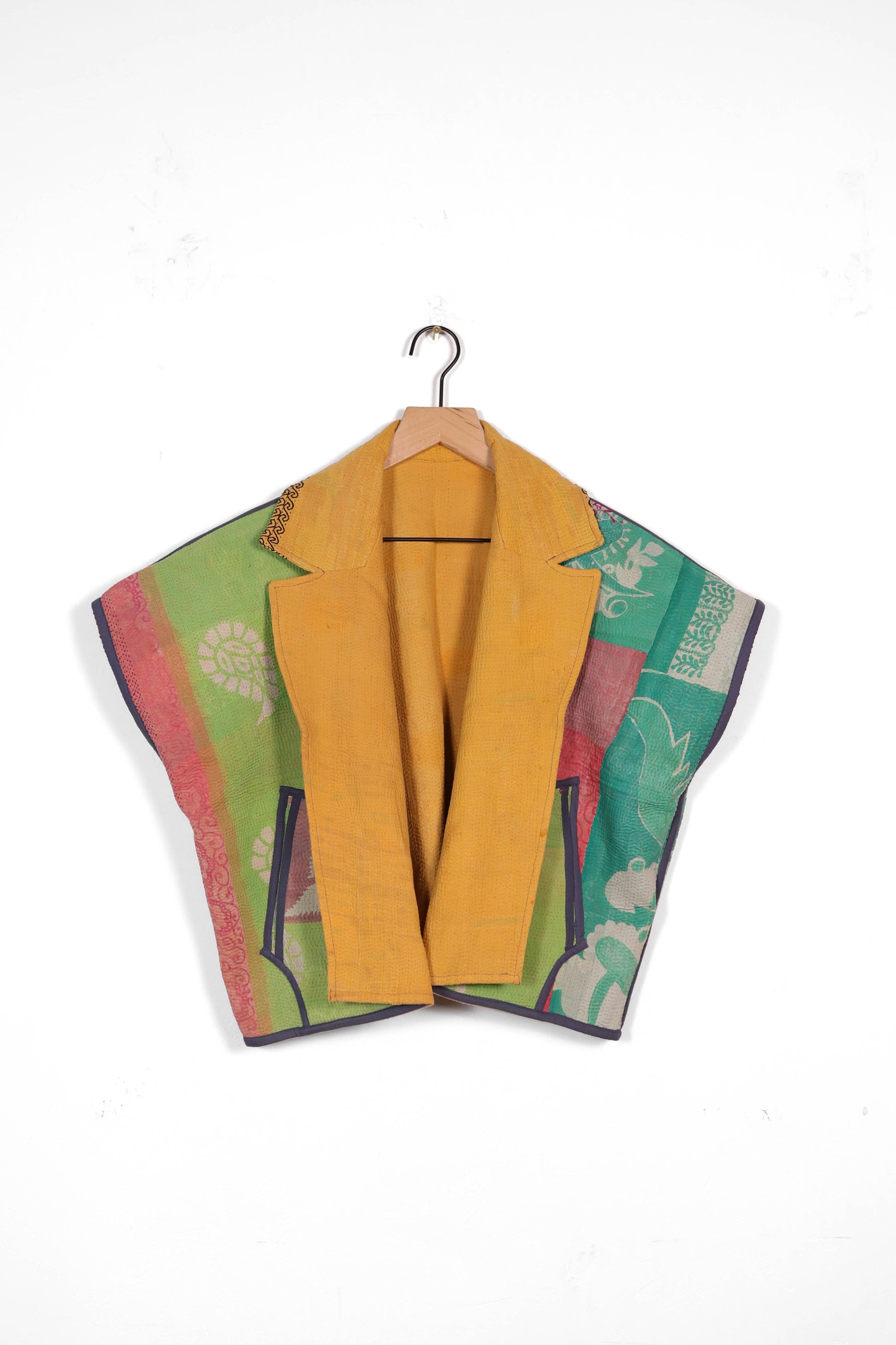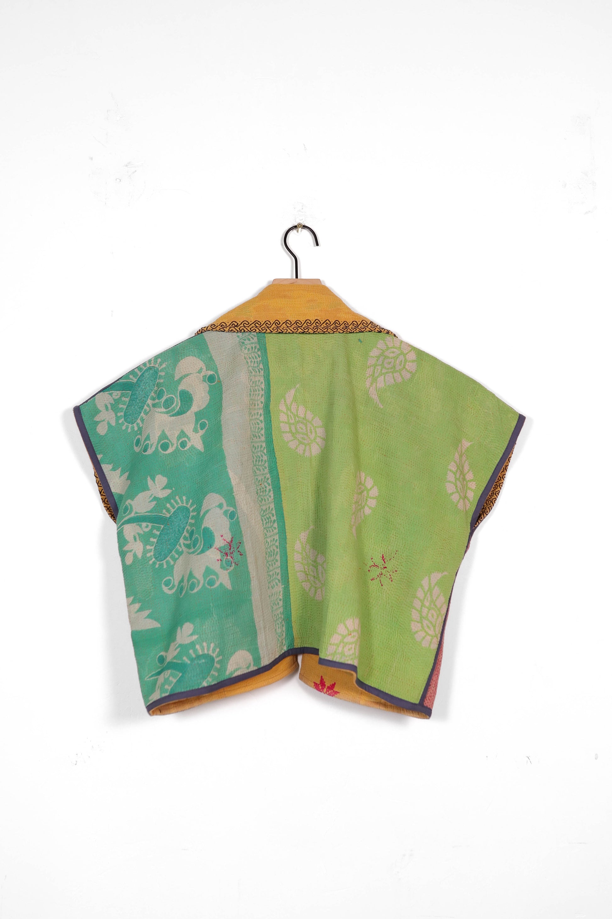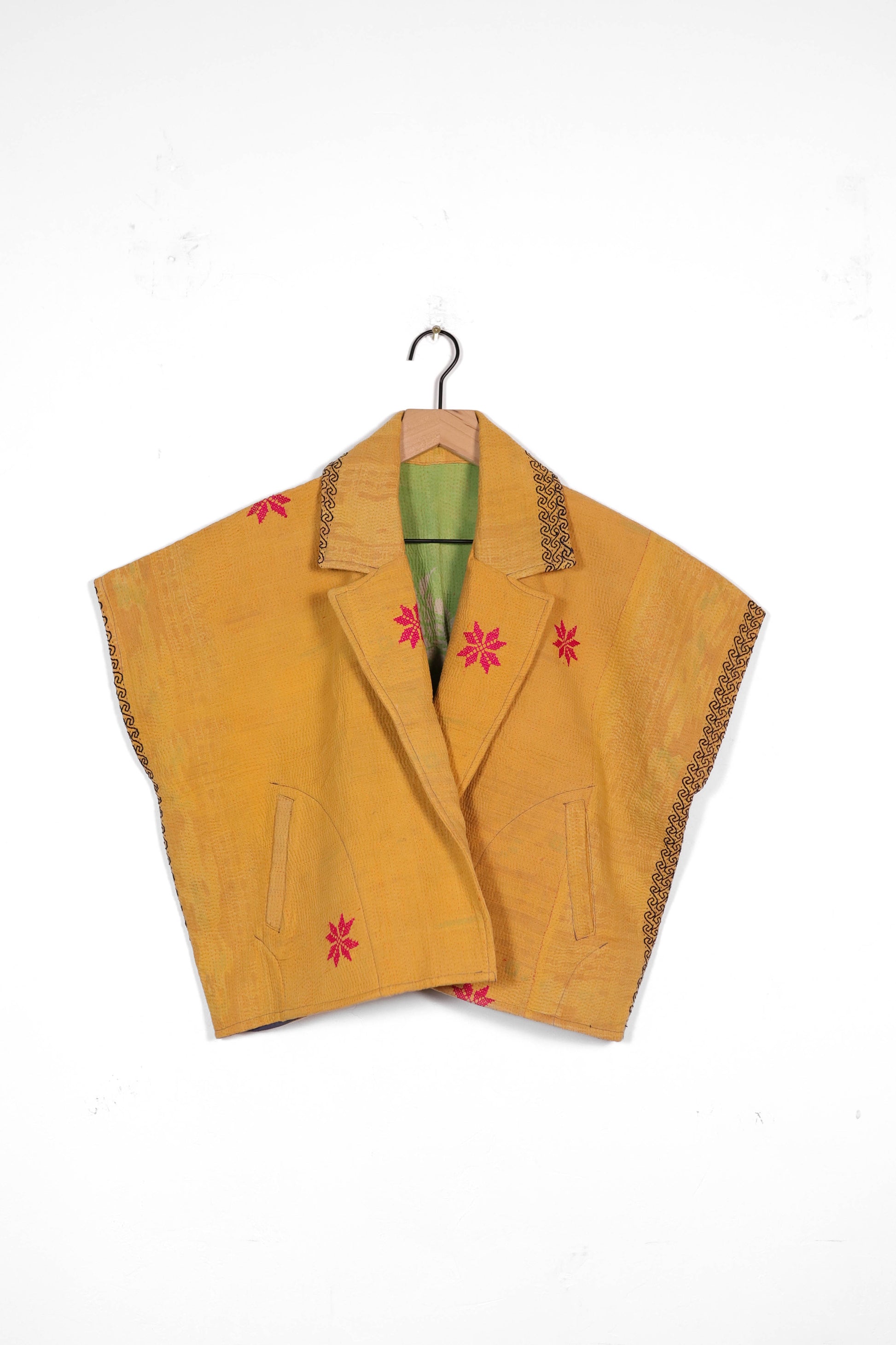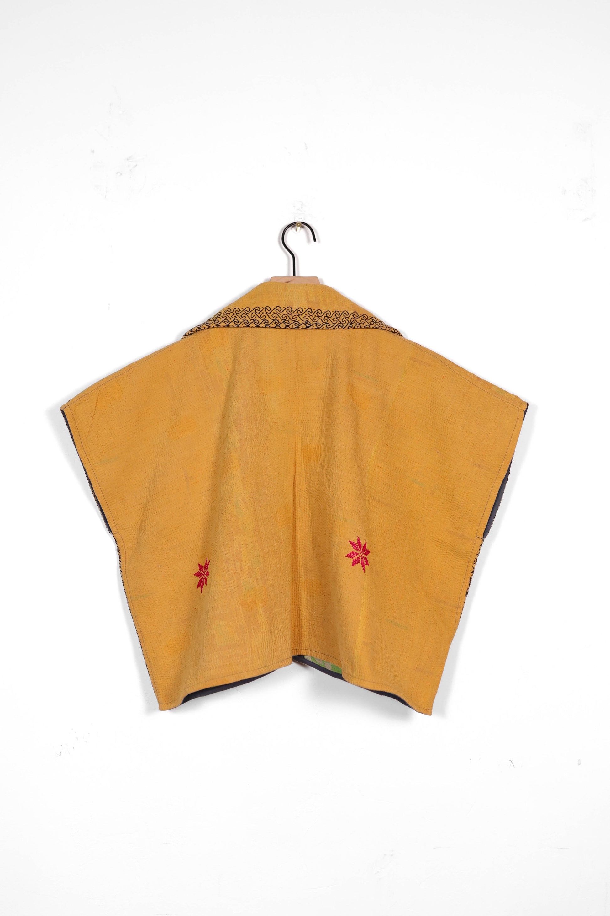 Every coat is one of a kind, made from a vintage kantha quilt. Layers of fabric bound by a hand sewn running stitch - your piece may have markings or worn areas that we find make our coats even more storied and unique.