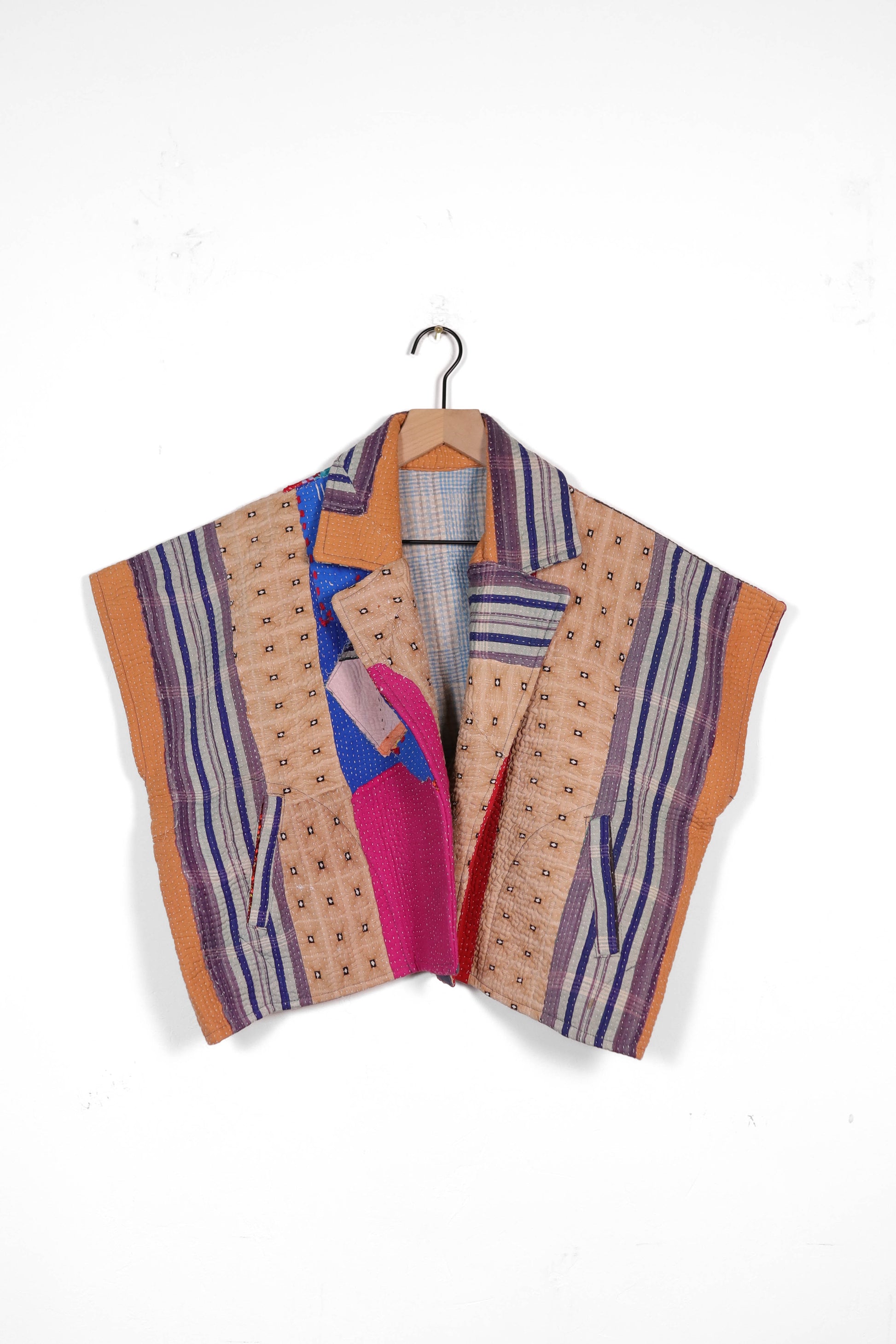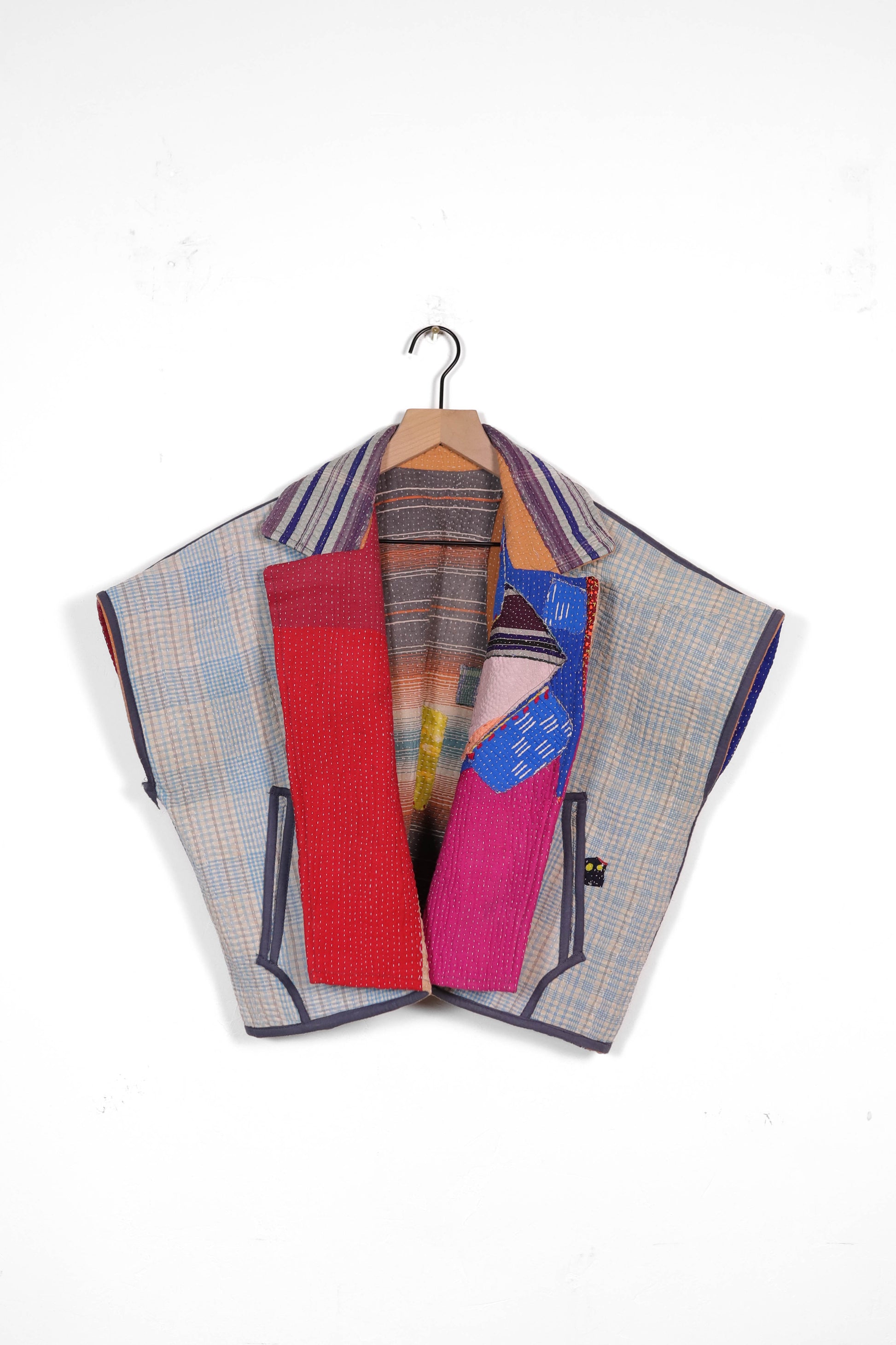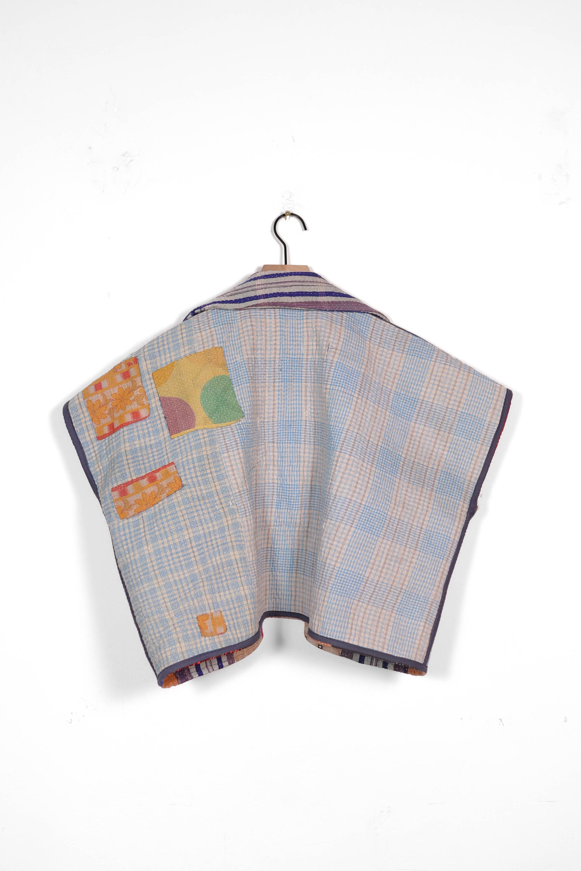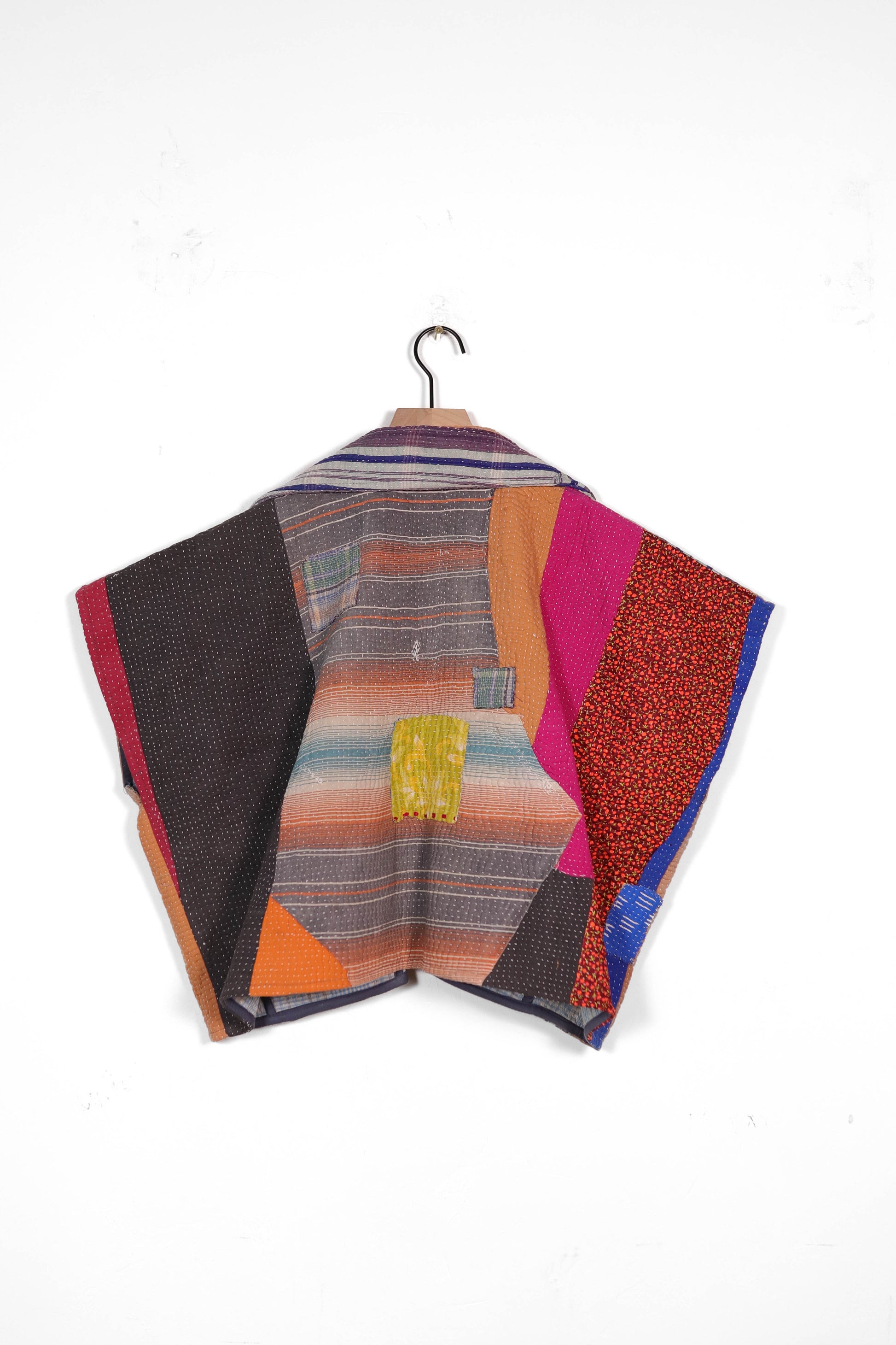 Every coat is one of a kind, made from a vintage kantha quilt. Layers of fabric bound by a hand sewn running stitch - your piece may have markings or worn areas that we find make our coats even more storied and unique.
