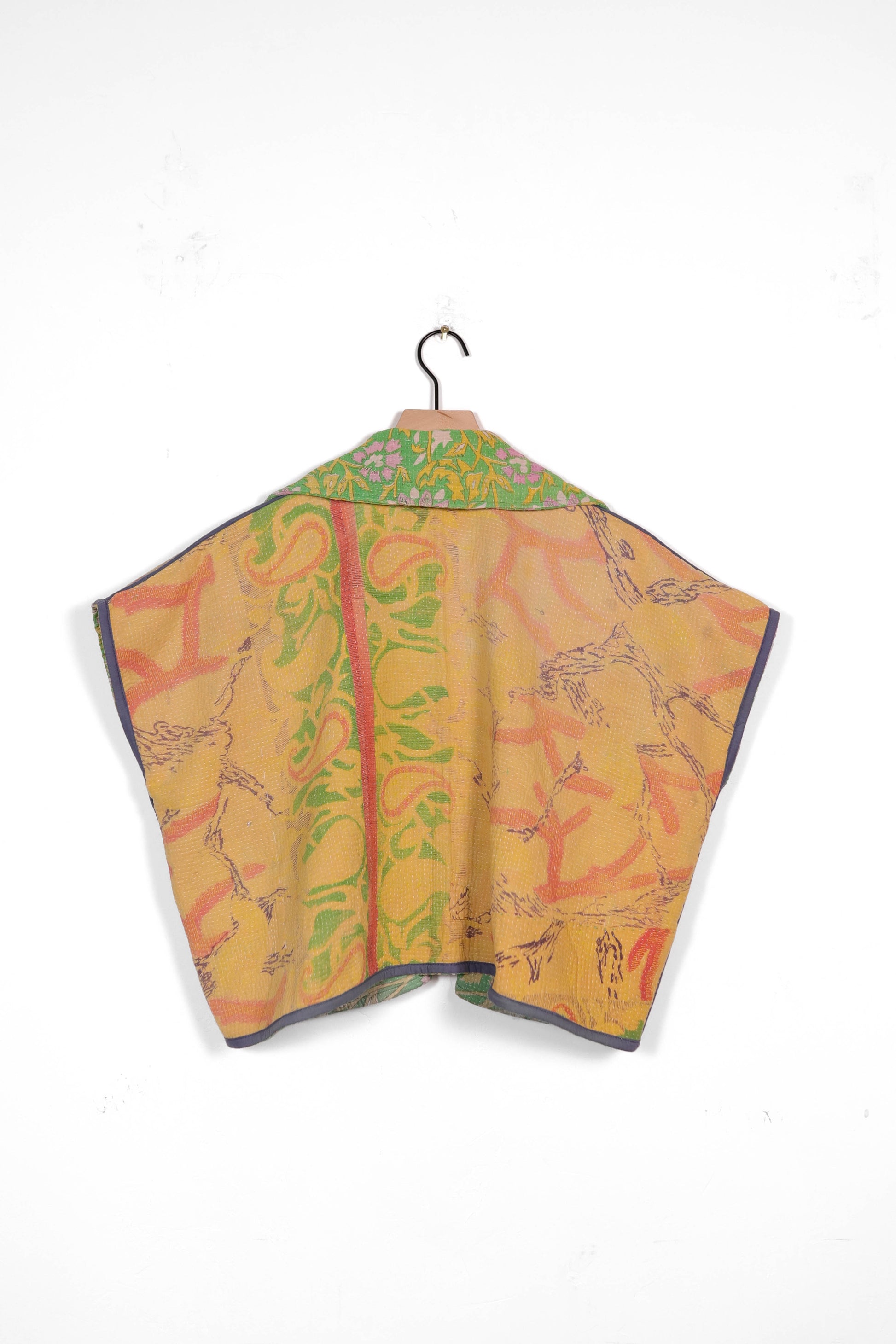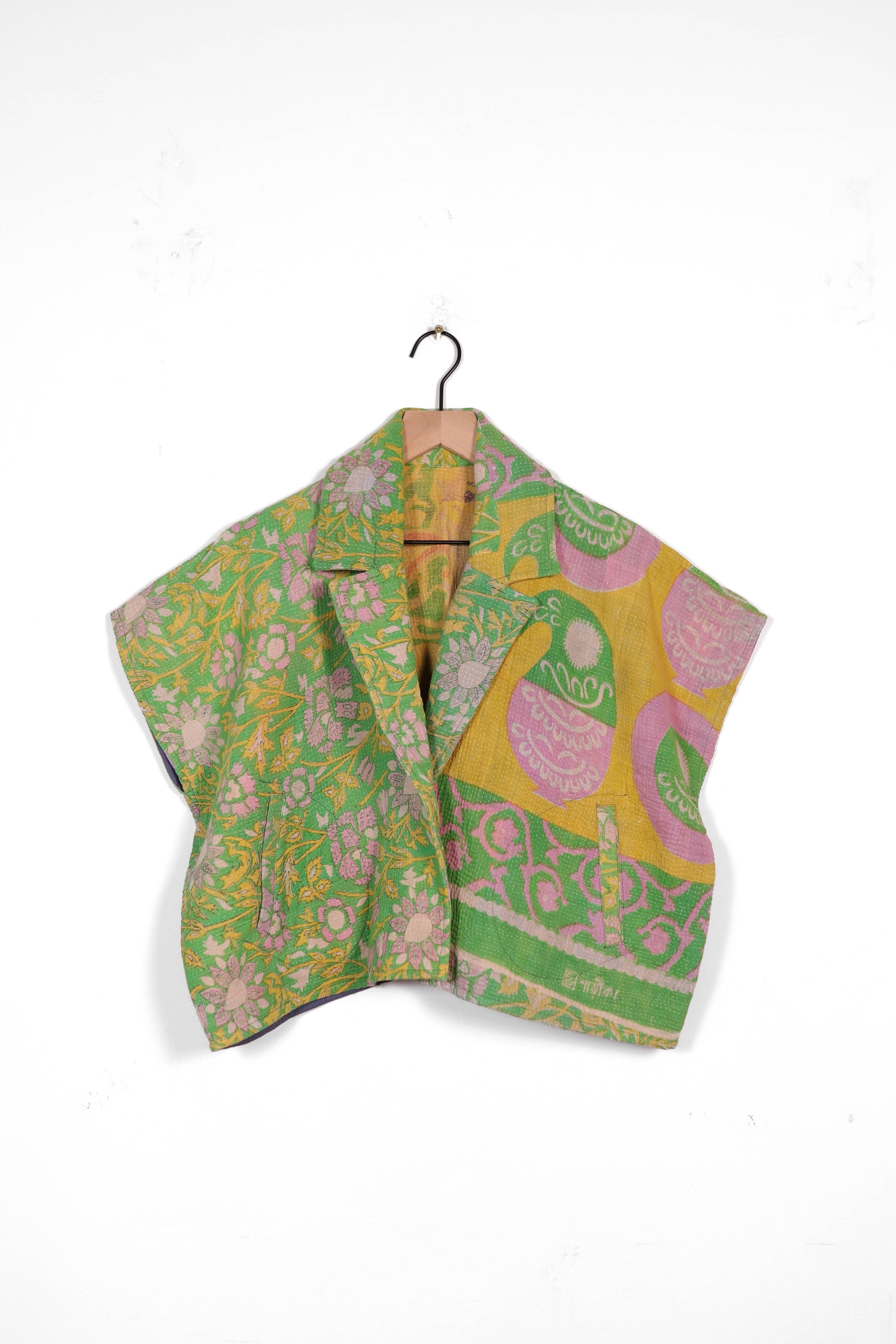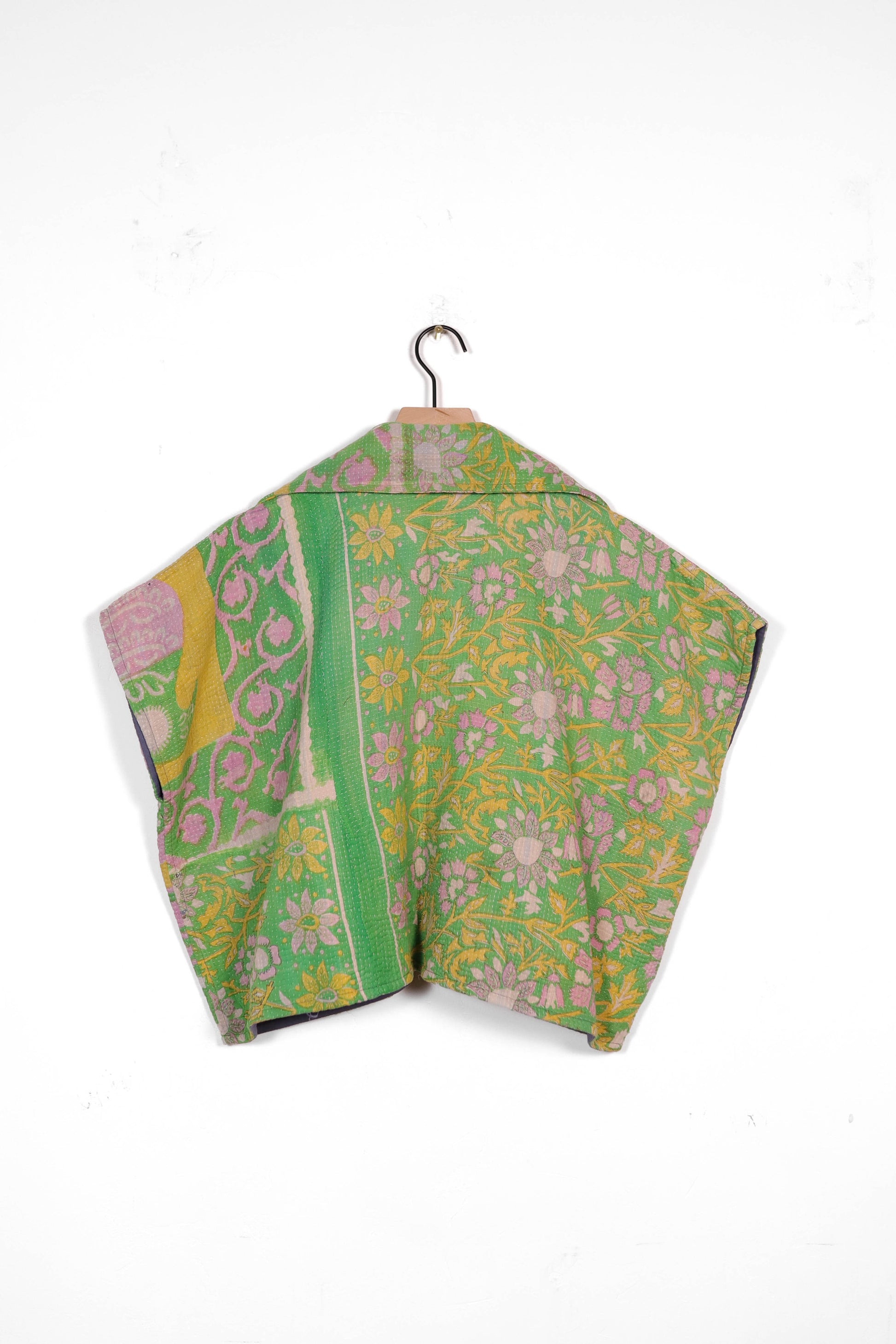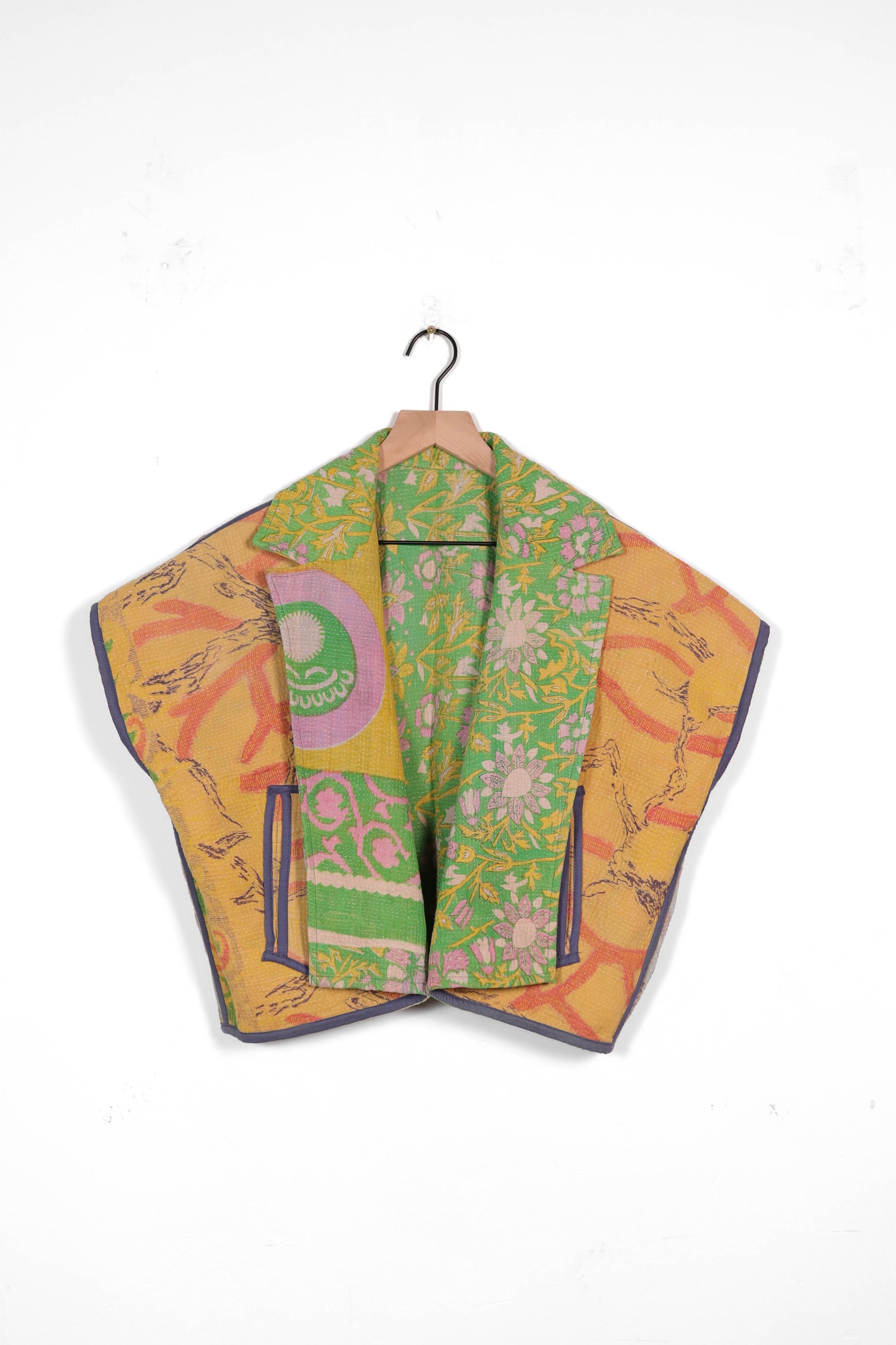 Every coat is one of a kind, made from a vintage kantha quilt. Layers of fabric bound by a hand sewn running stitch - your piece may have markings or worn areas that we find make our coats even more storied and unique.