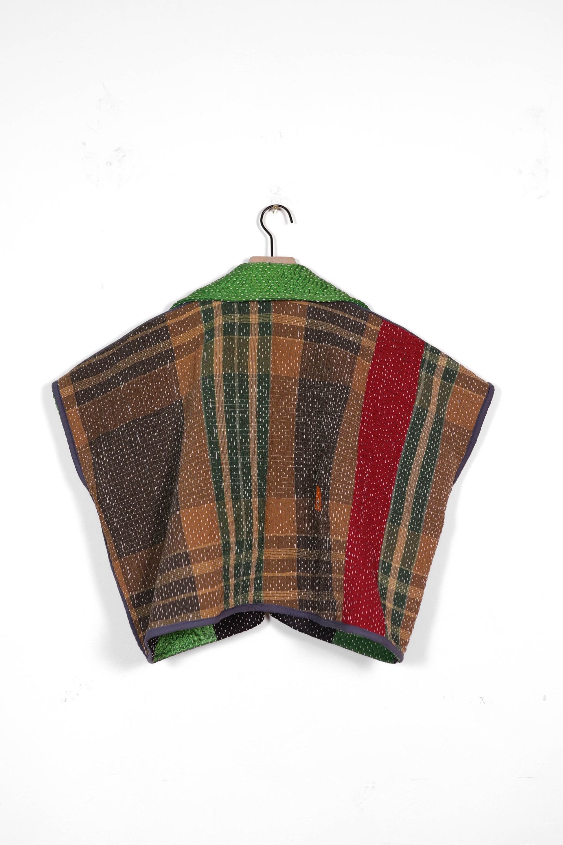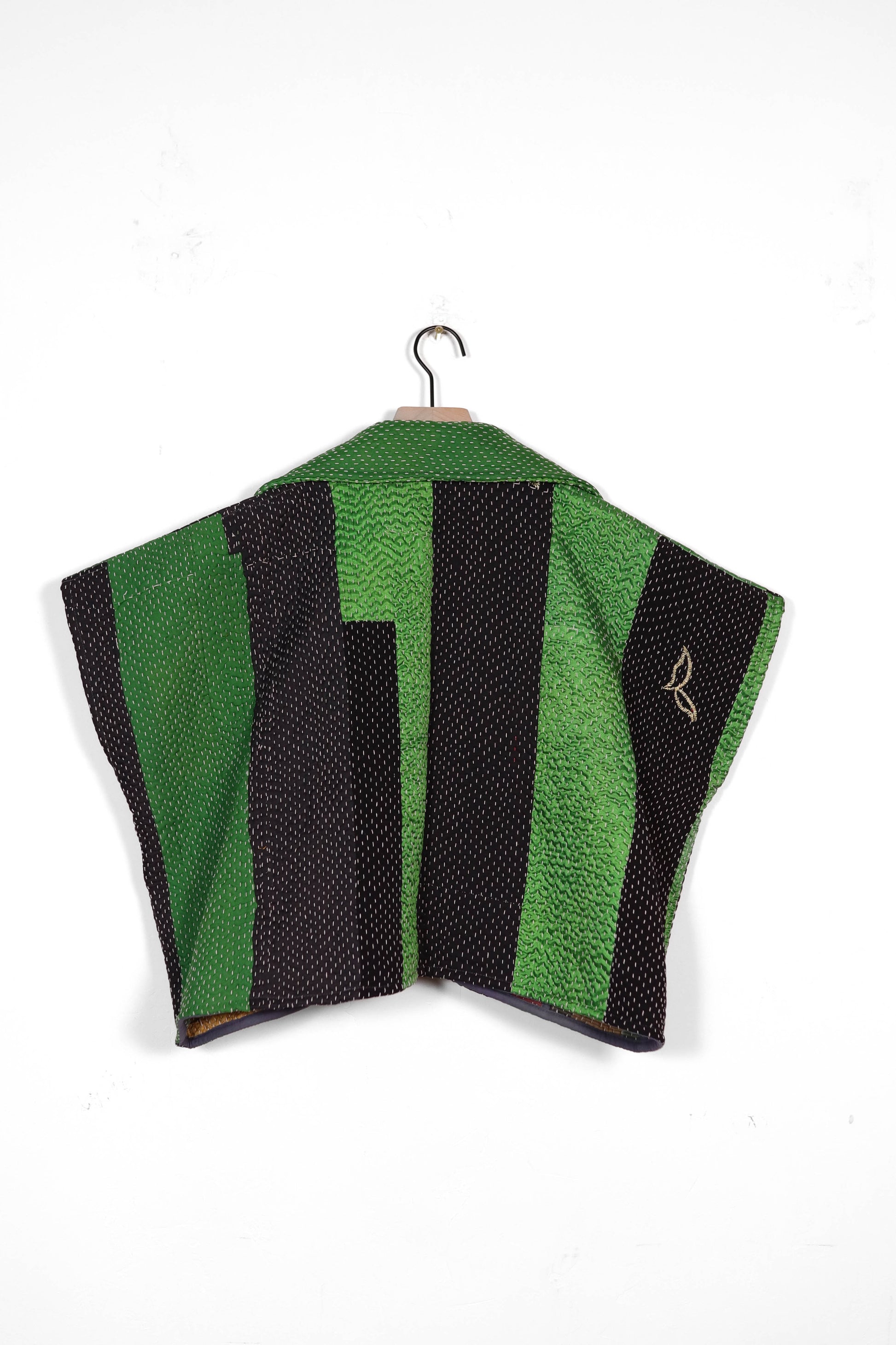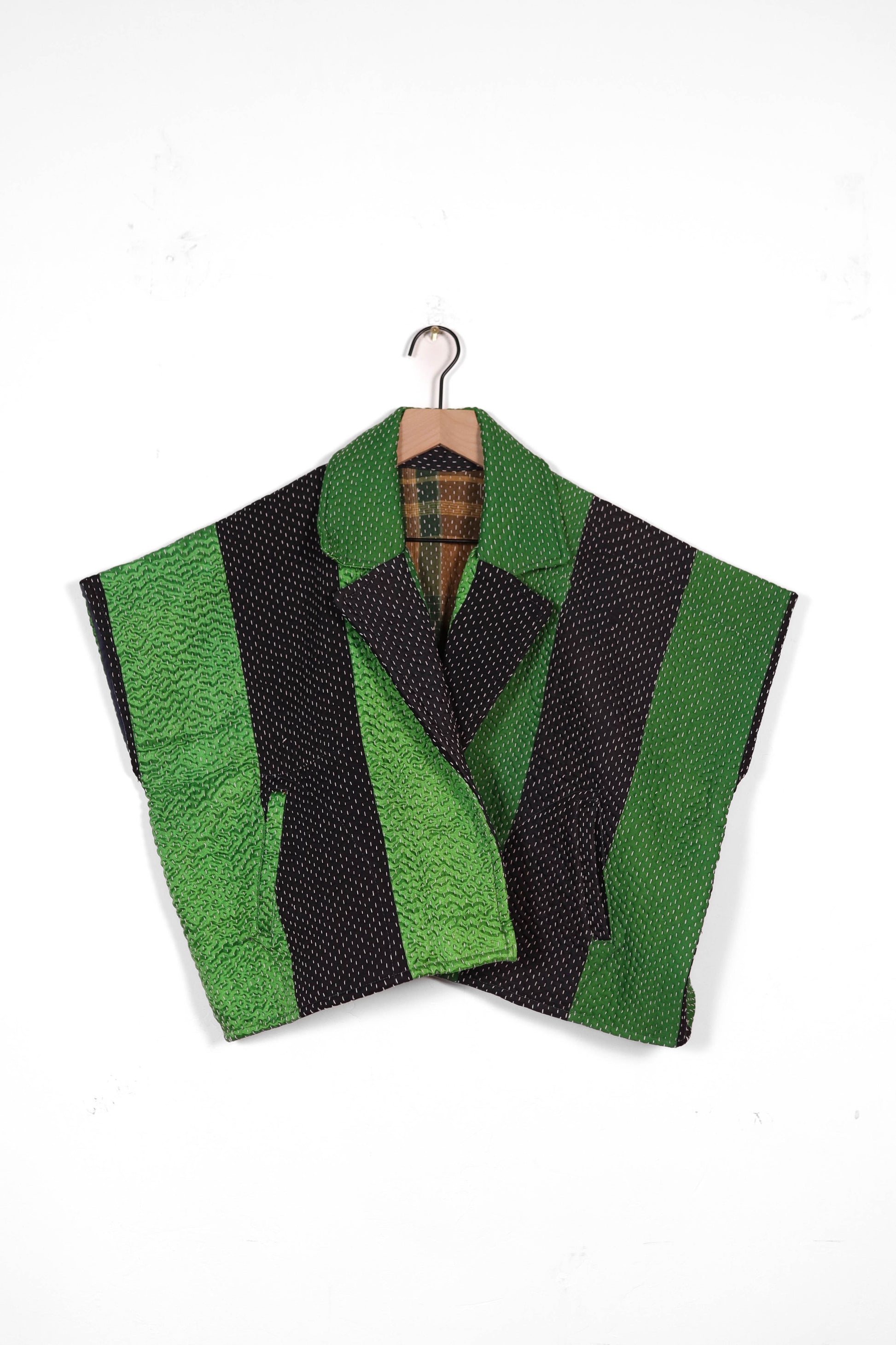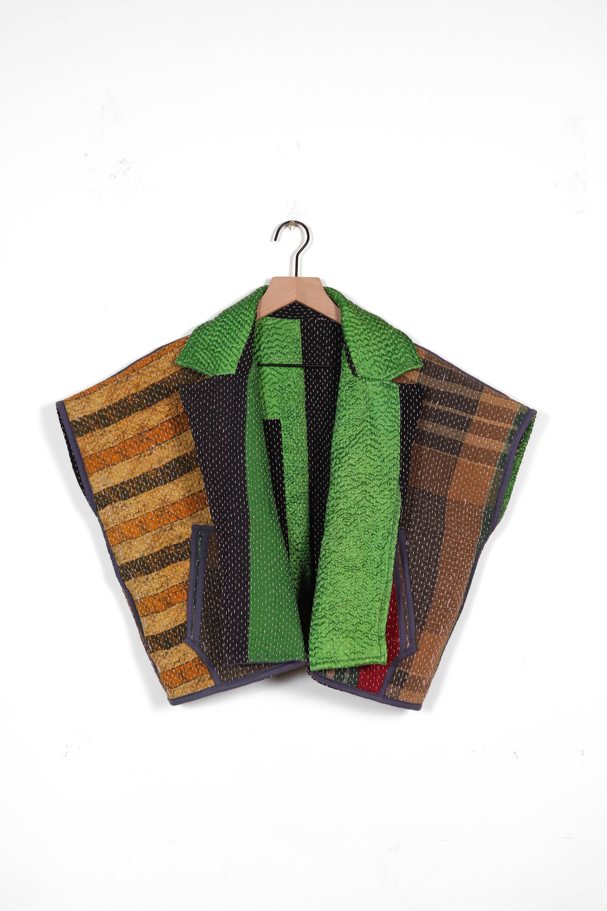 Every coat is one of a kind, made from a vintage kantha quilt. Layers of fabric bound by a hand sewn running stitch - your piece may have markings or worn areas that we find make our coats even more storied and unique.