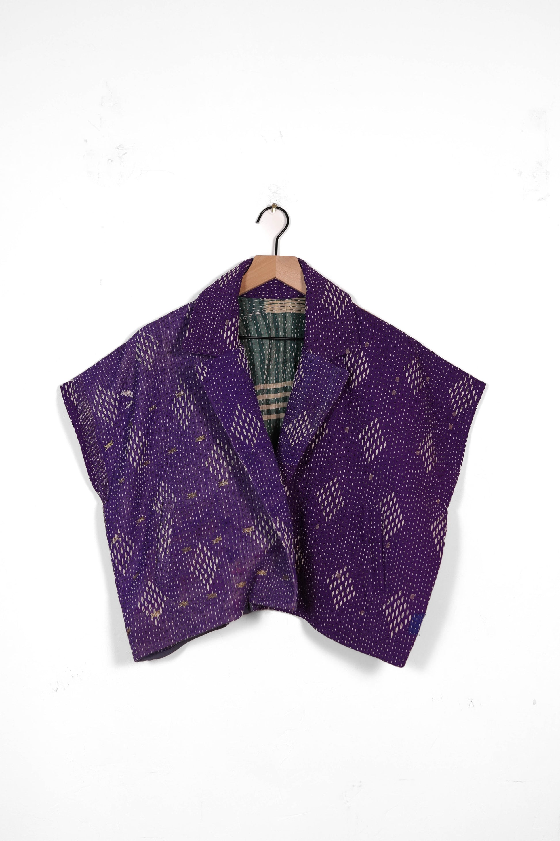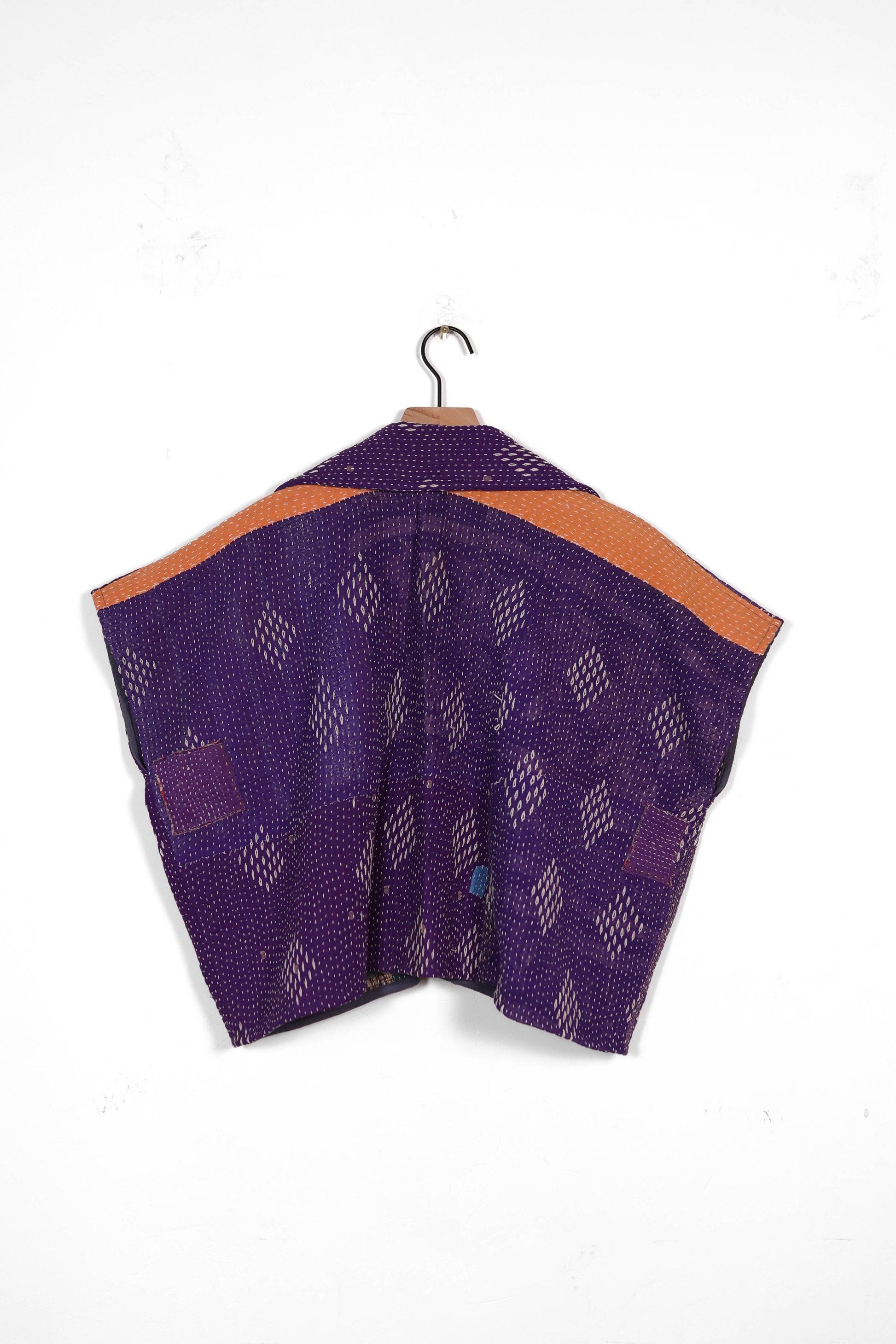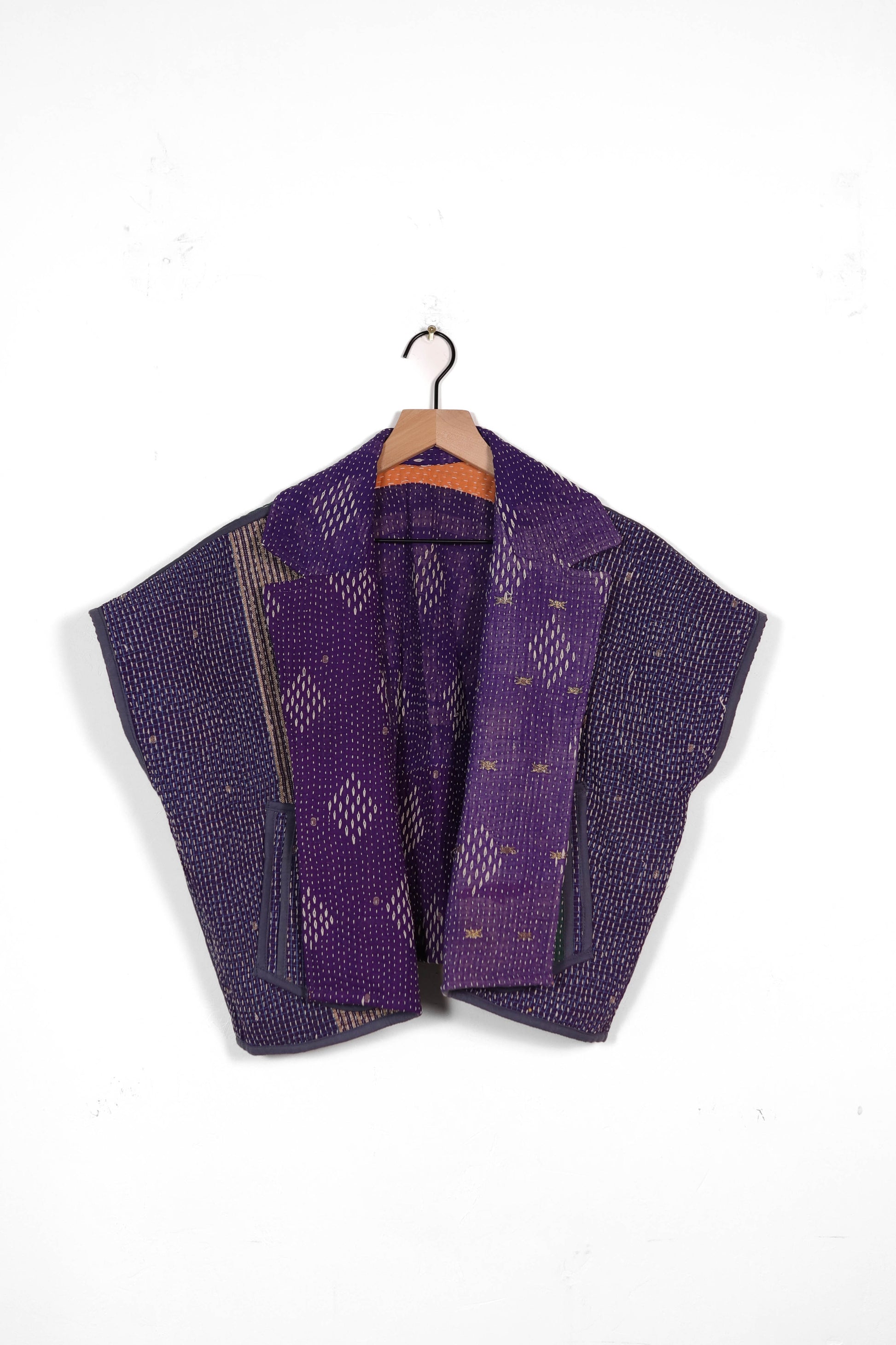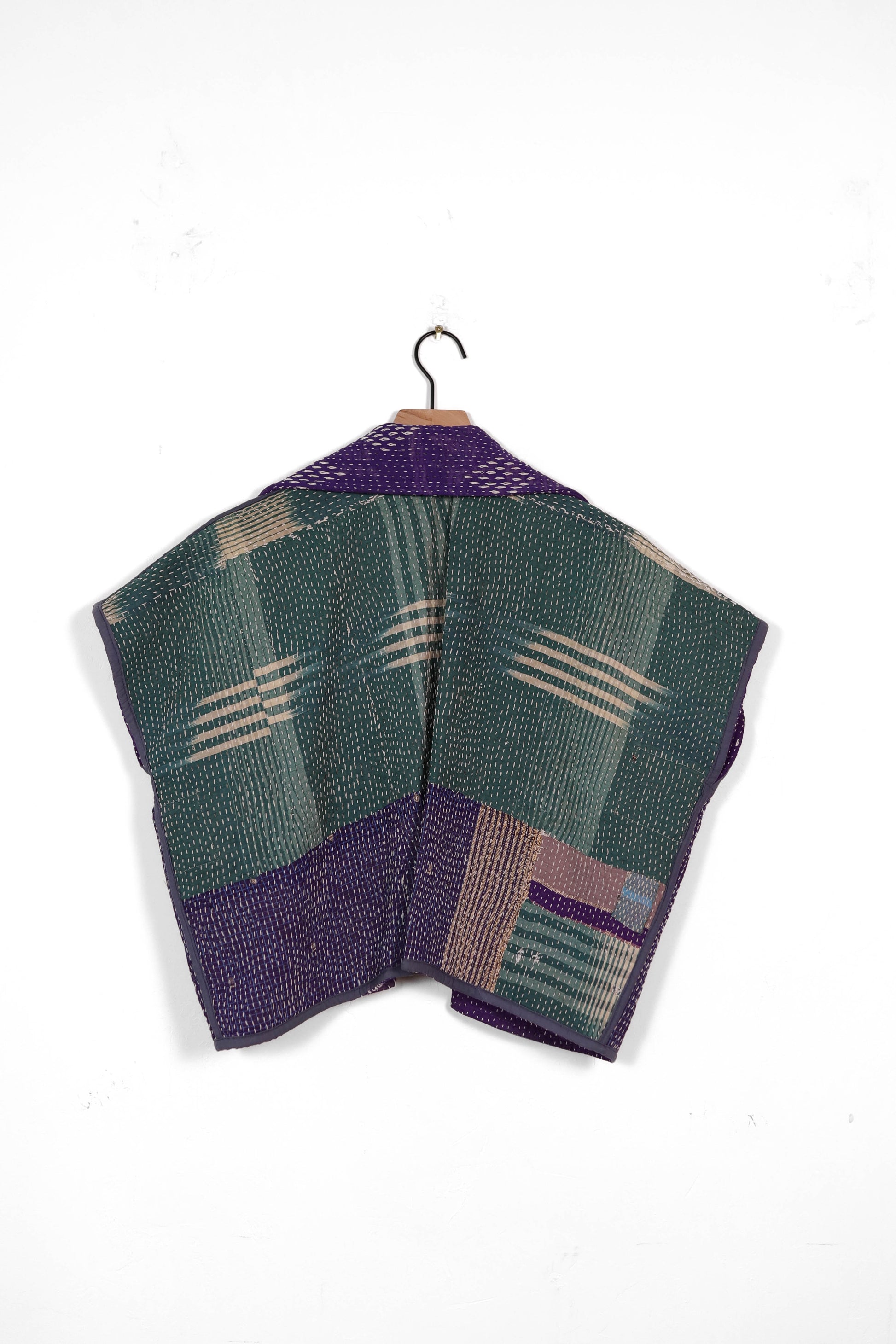 Every coat is one of a kind, made from a vintage kantha quilt. Layers of fabric bound by a hand sewn running stitch - your piece may have markings or worn areas that we find make our coats even more storied and unique.