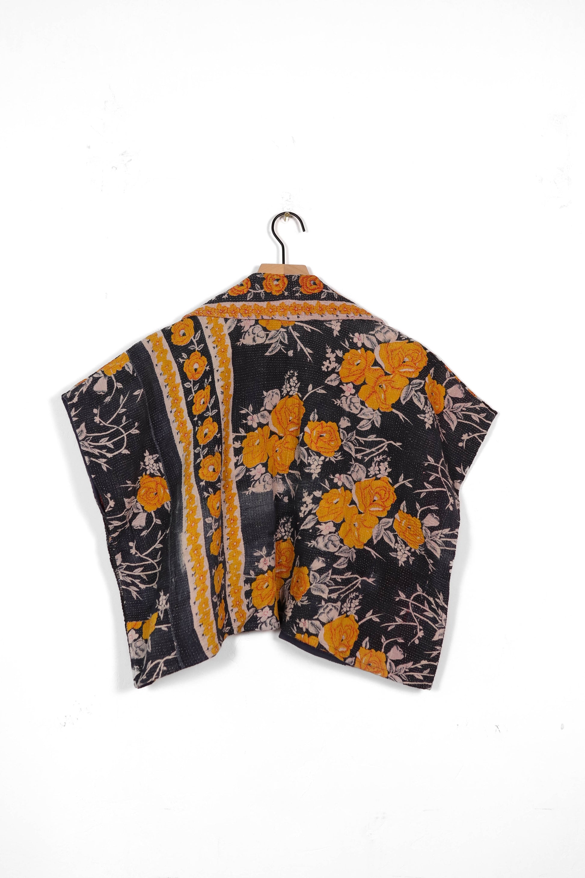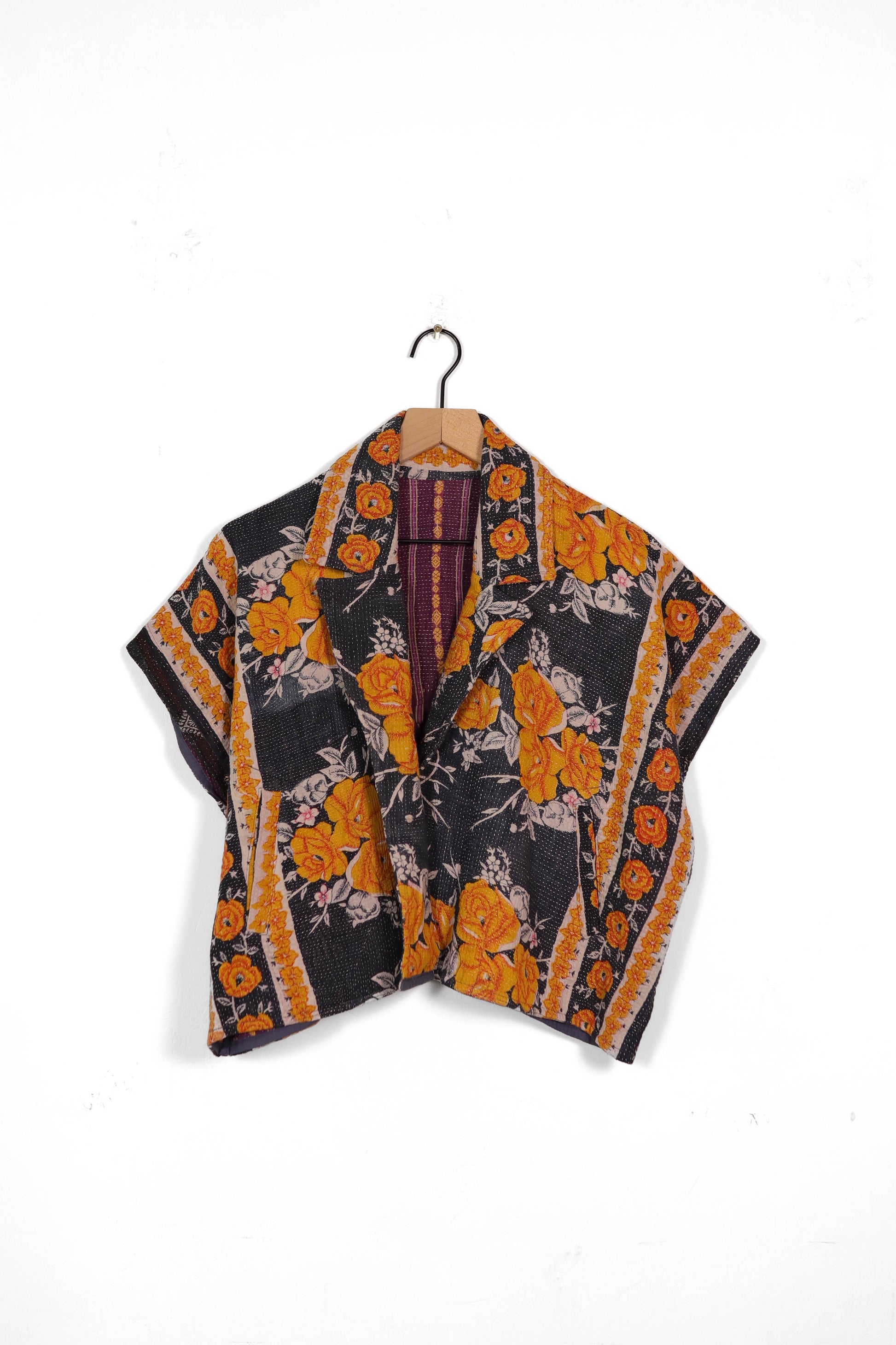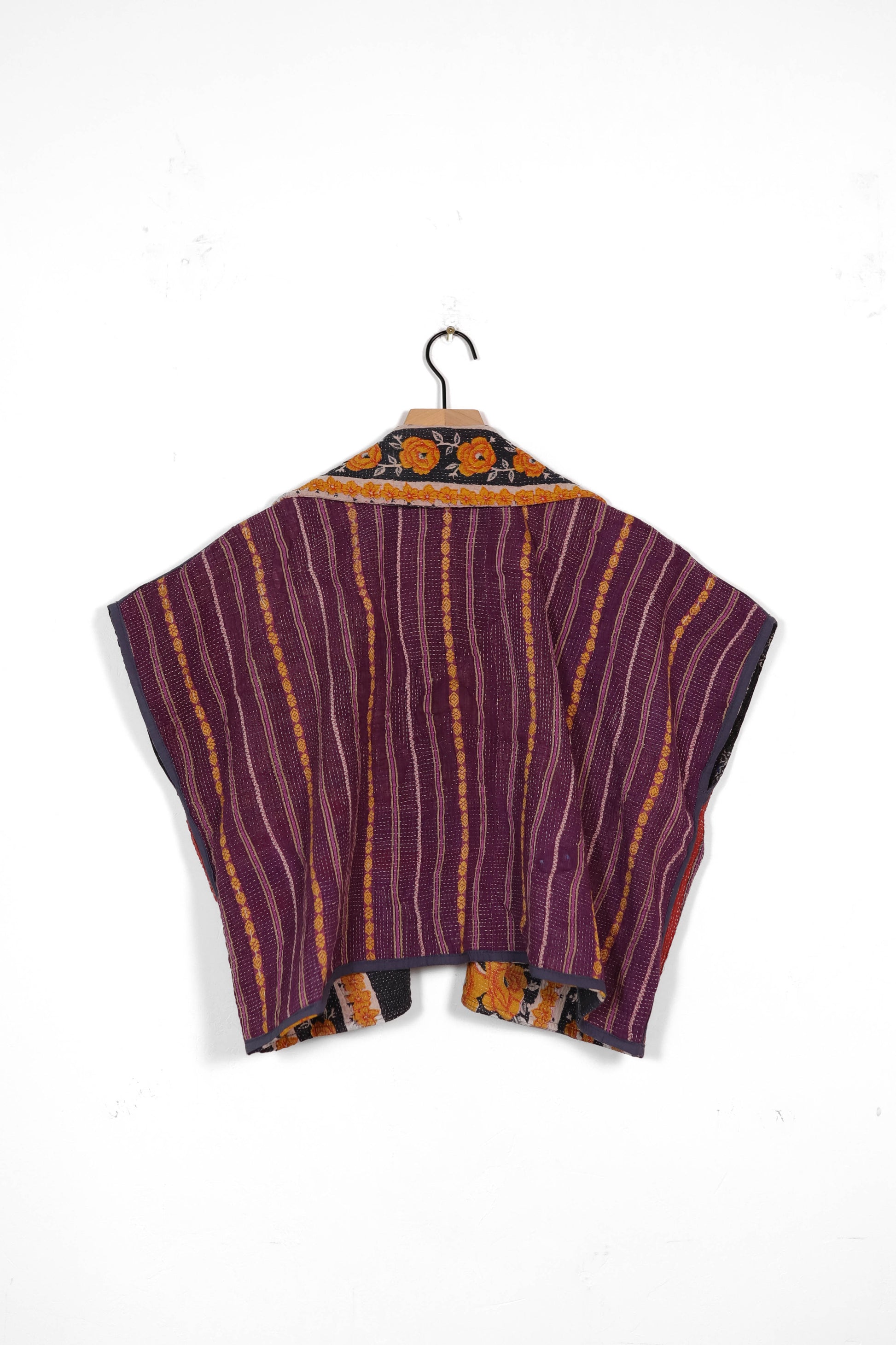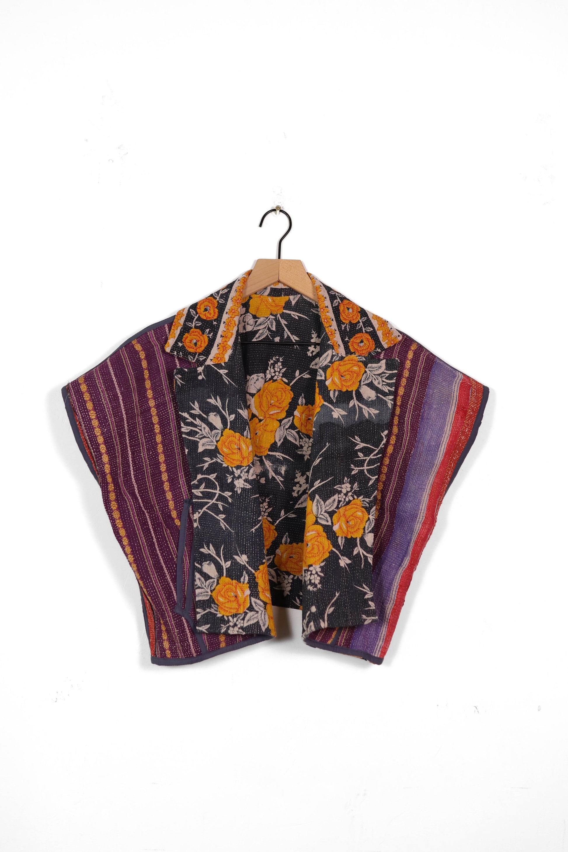 Every coat is one of a kind, made from a vintage kantha quilt. Layers of fabric bound by a hand sewn running stitch - your piece may have markings or worn areas that we find make our coats even more storied and unique.