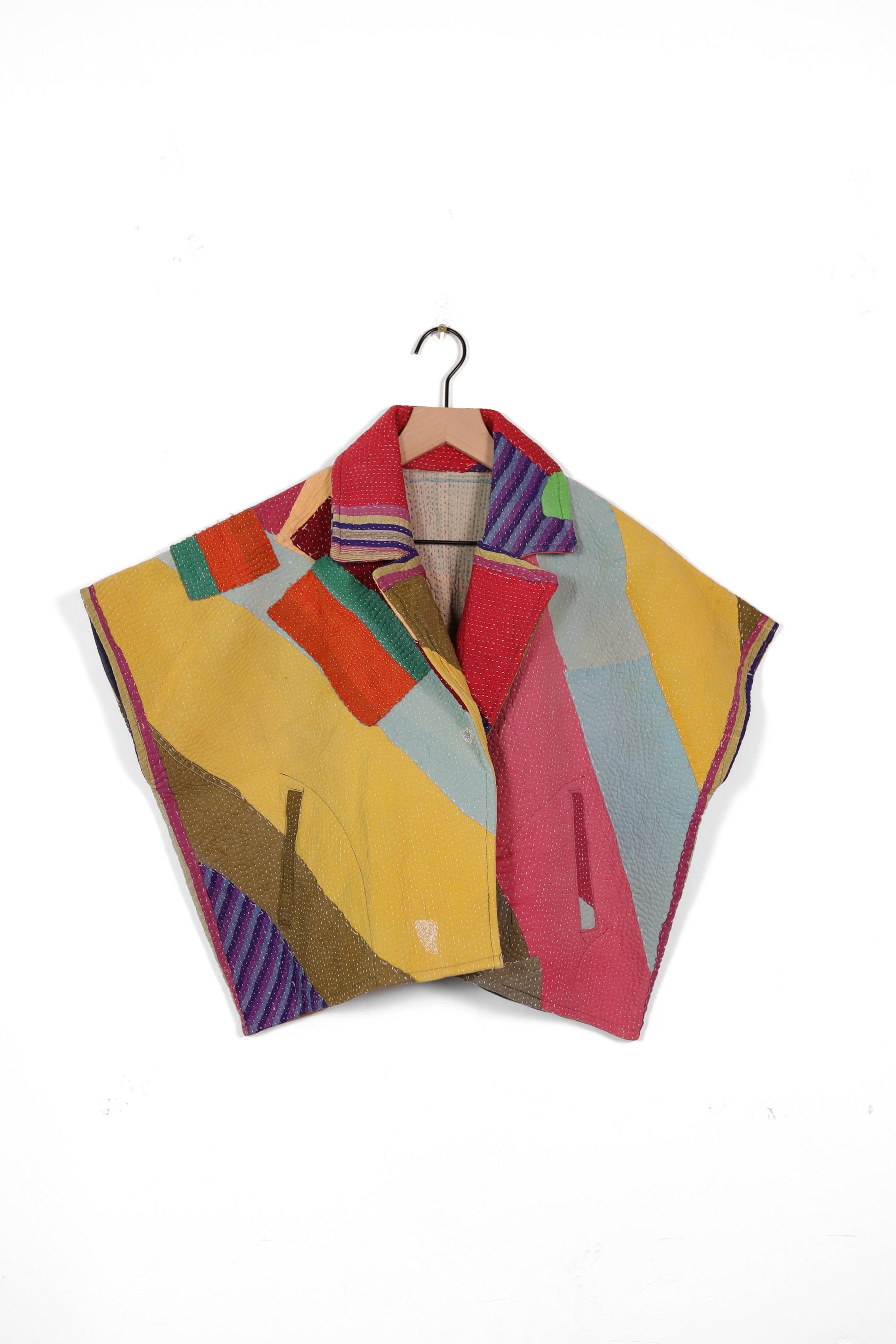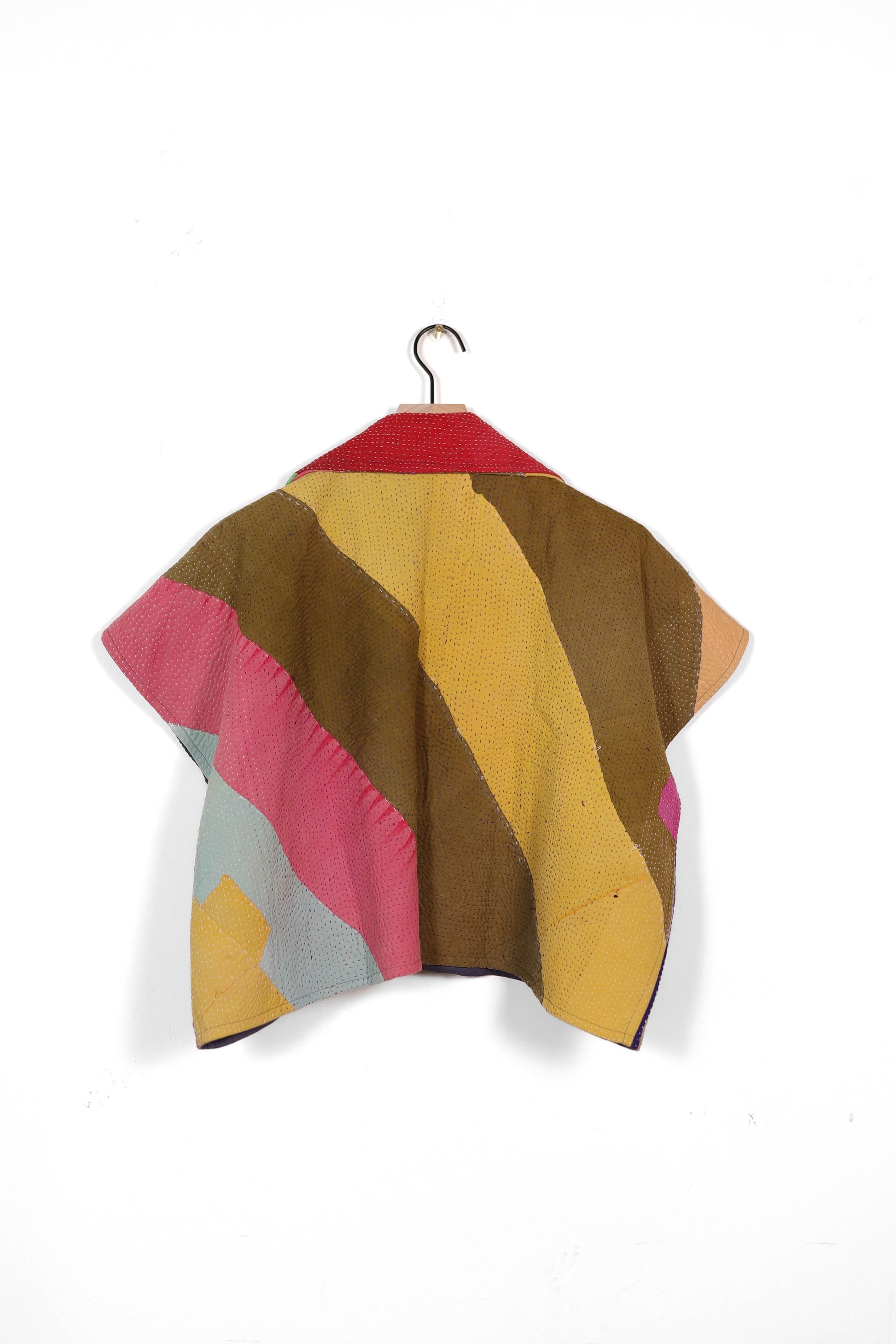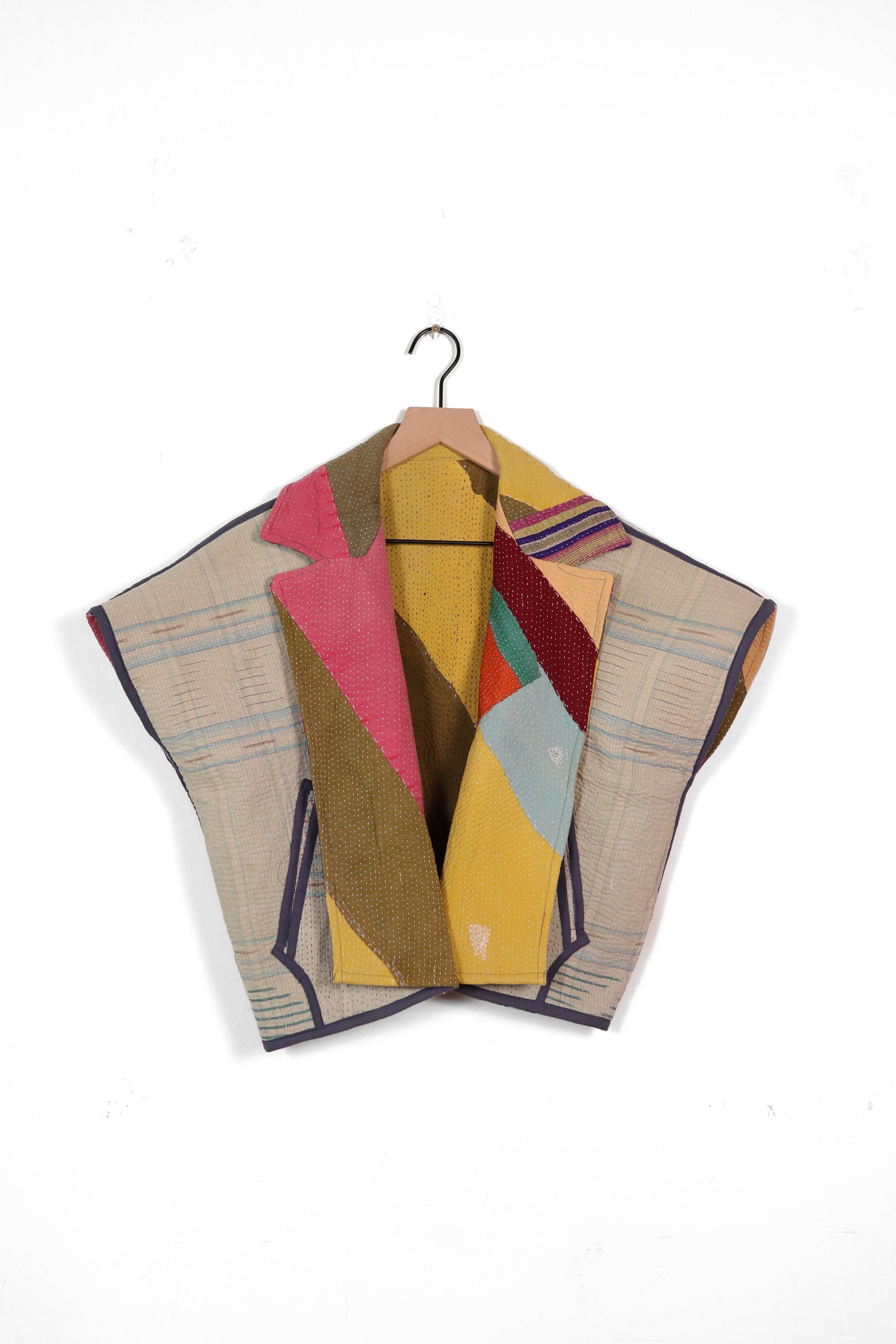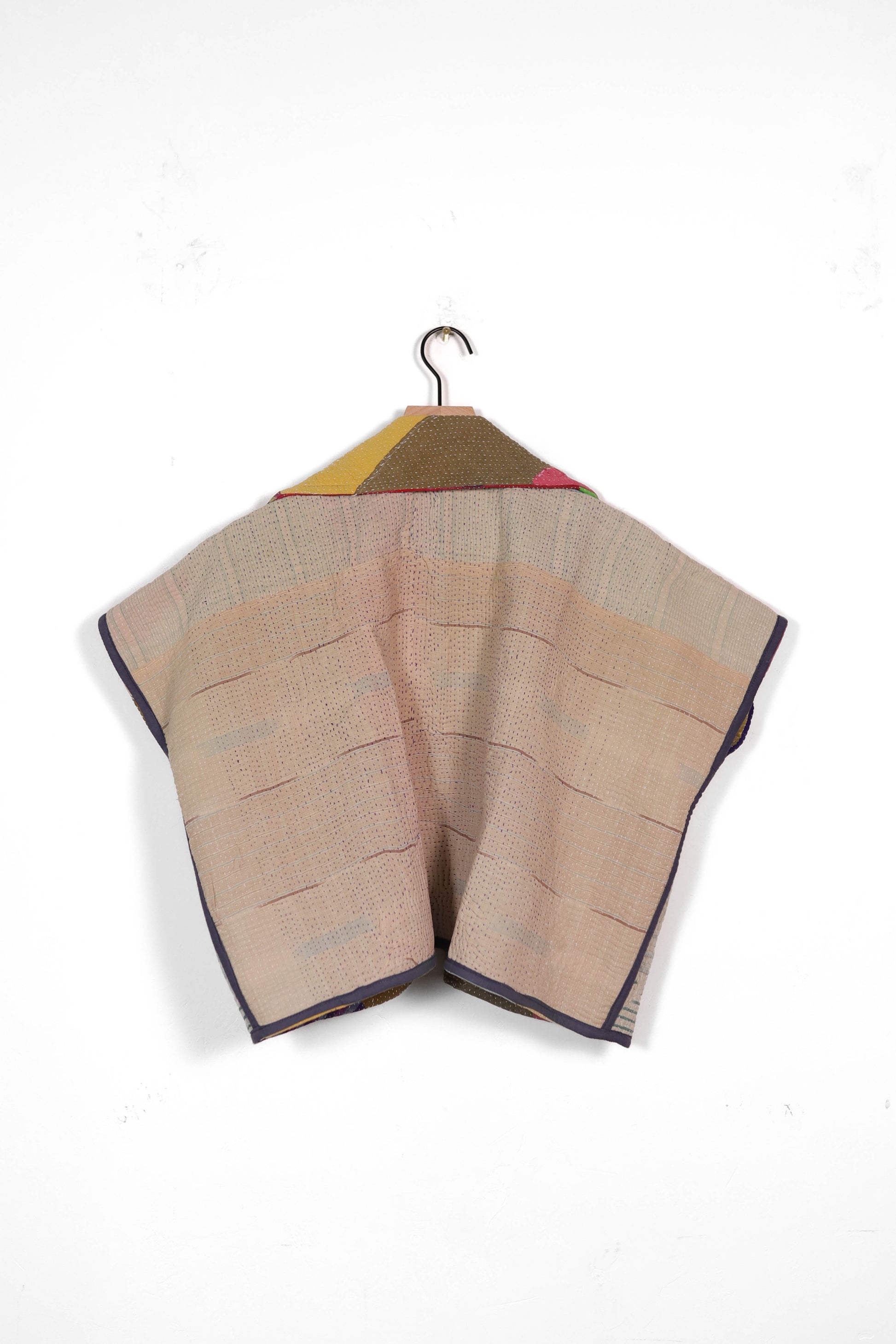 Every coat is one of a kind, made from a vintage kantha quilt. Layers of fabric bound by a hand sewn running stitch - your piece may have markings or worn areas that we find make our coats even more storied and unique.