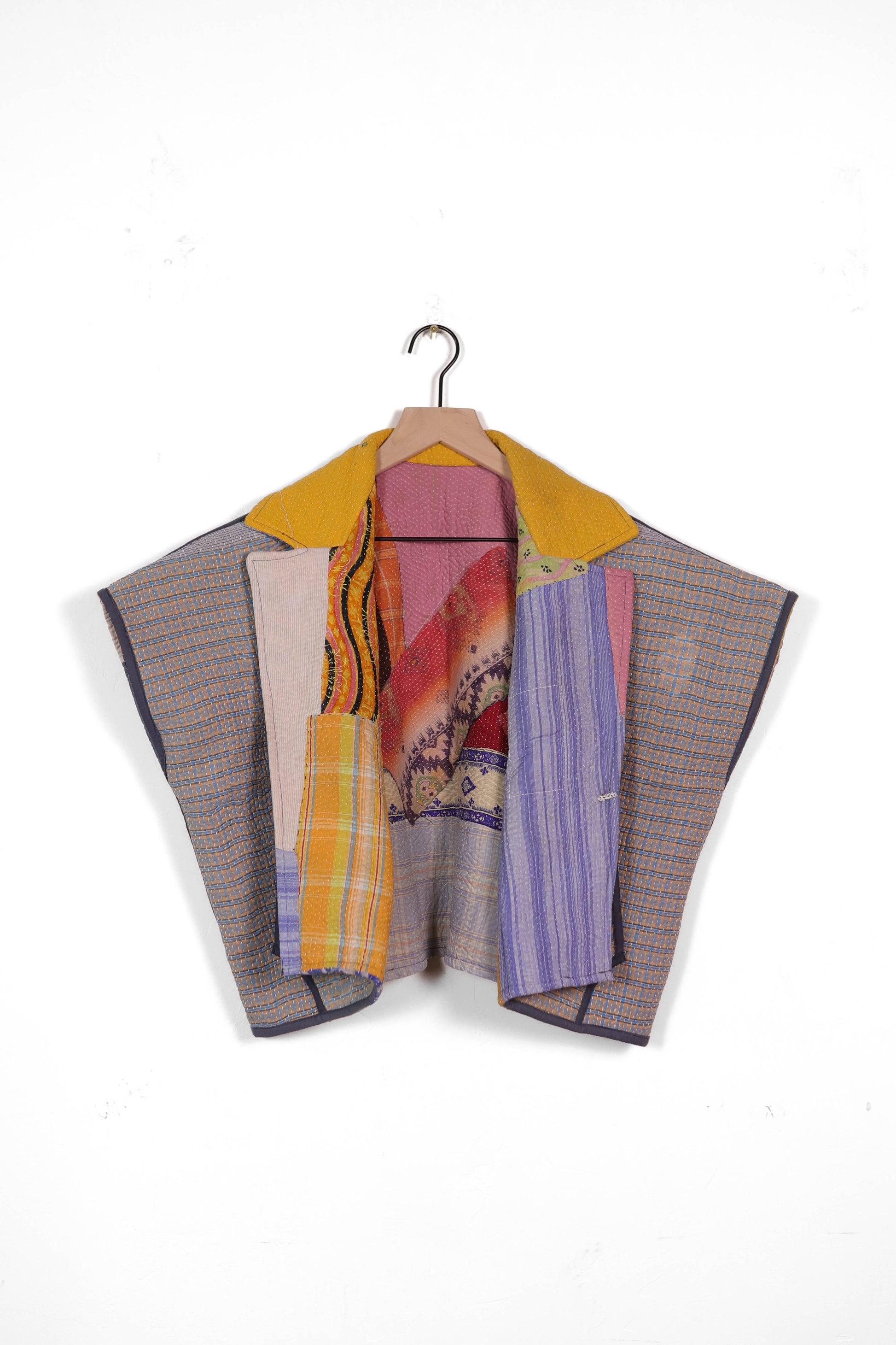 Every coat is one of a kind, made from a vintage kantha quilt. Layers of fabric bound by a hand sewn running stitch - your piece may have markings or worn areas that we find make our coats even more storied and unique.