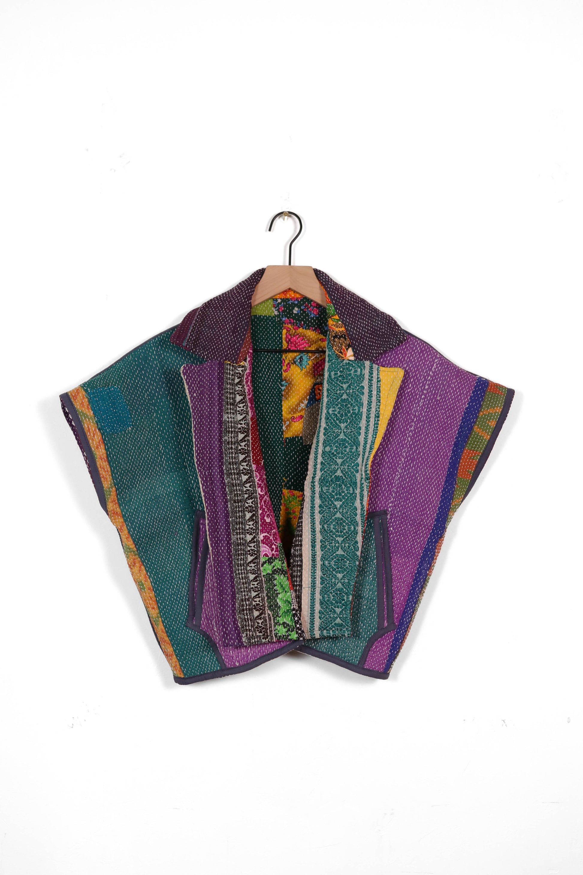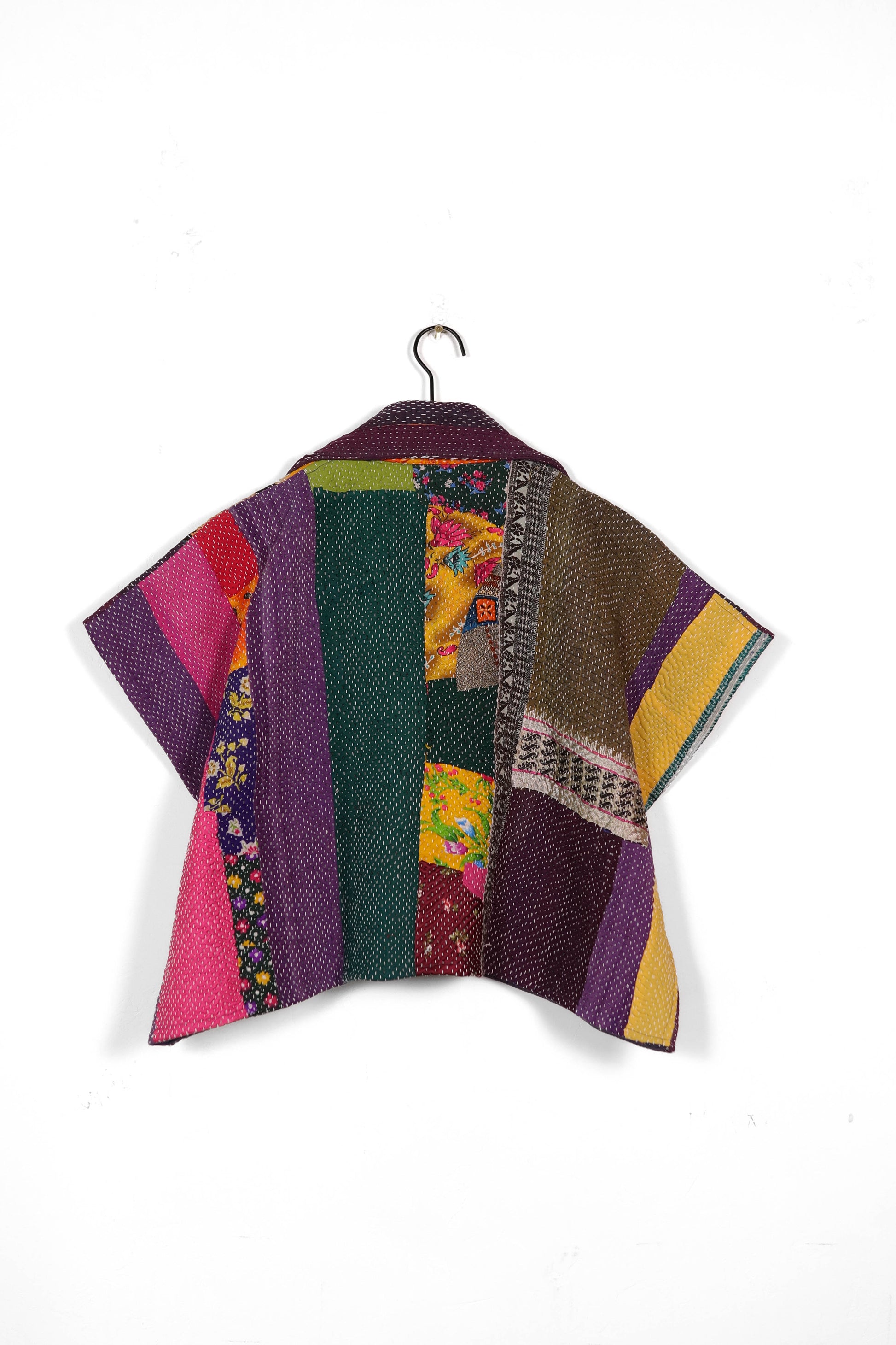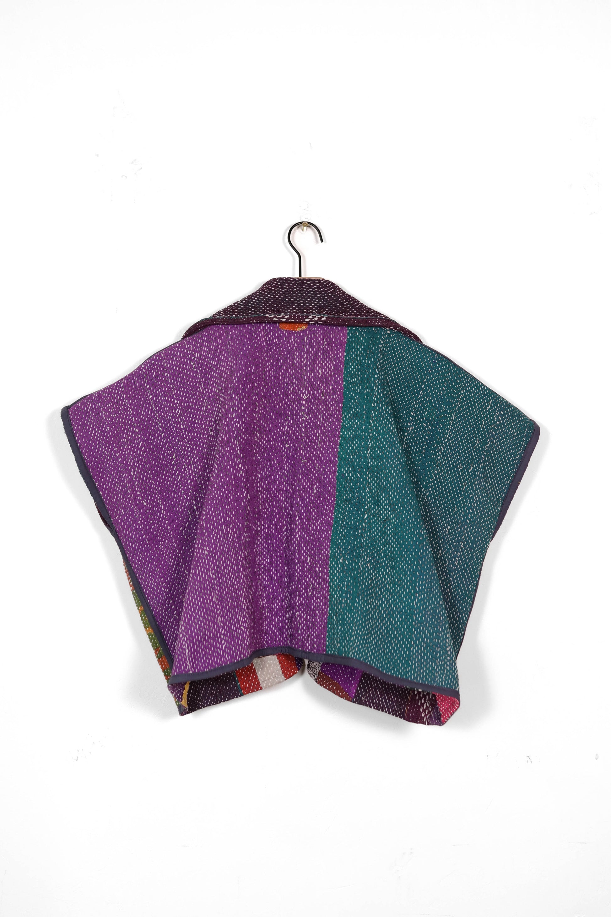 Every coat is one of a kind, made from a vintage kantha quilt. Layers of fabric bound by a hand sewn running stitch - your piece may have markings or worn areas that we find make our coats even more storied and unique.