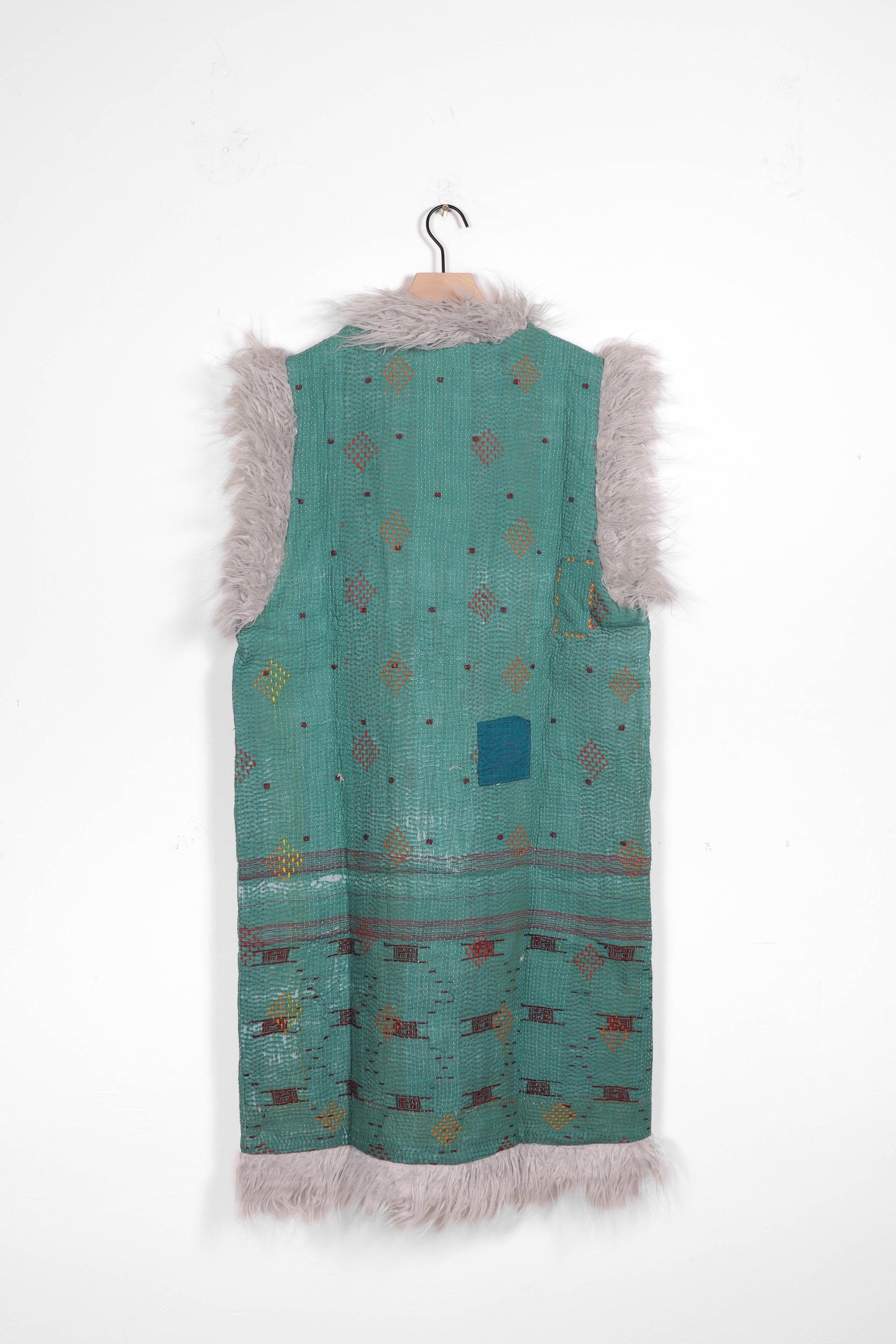 Every coat is one of a kind, made from a vintage kantha quilt. Layers of fabric bound by a hand sewn running stitch - your piece may have markings or worn areas that we find make our coats even more storied and unique.