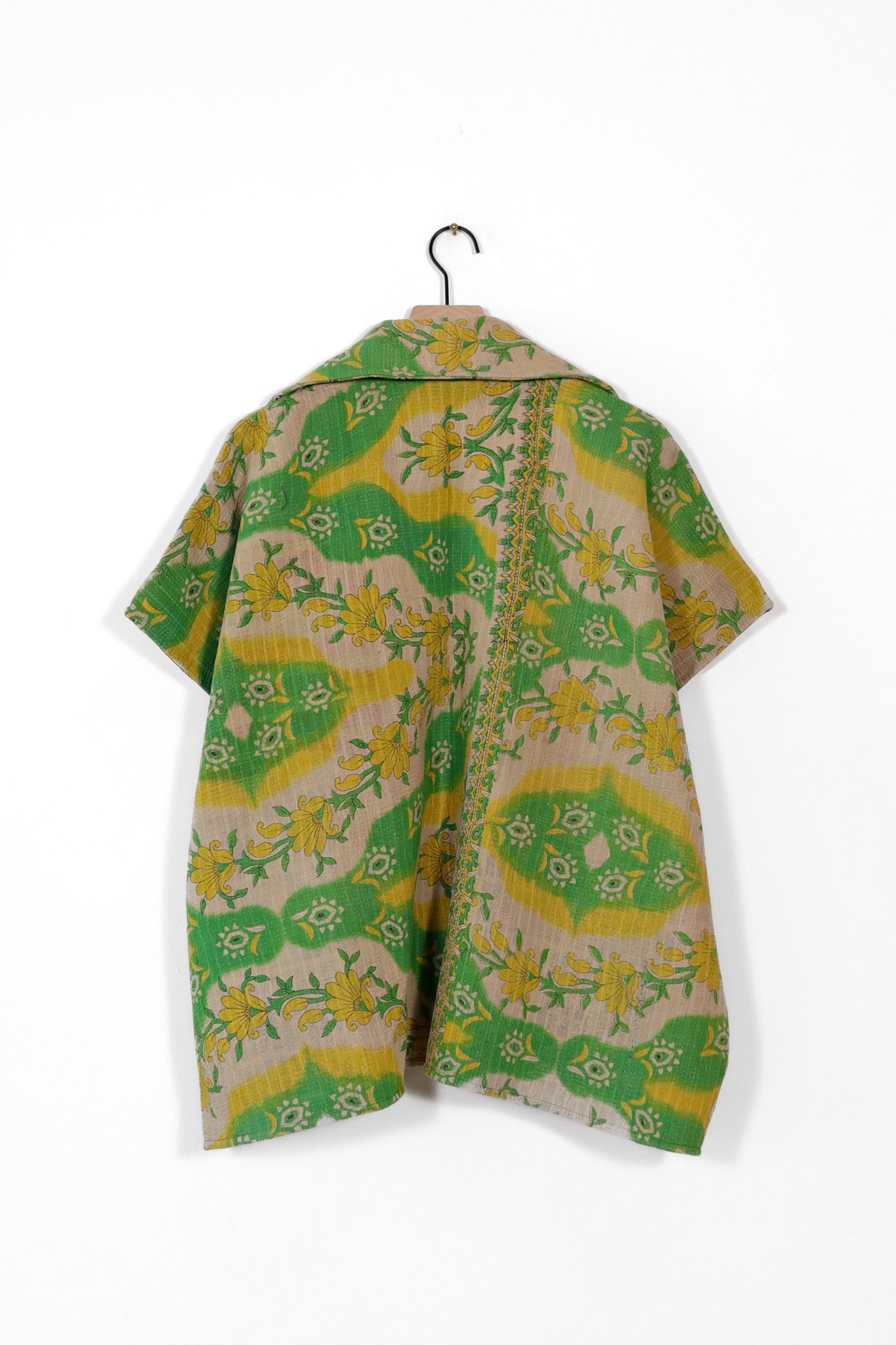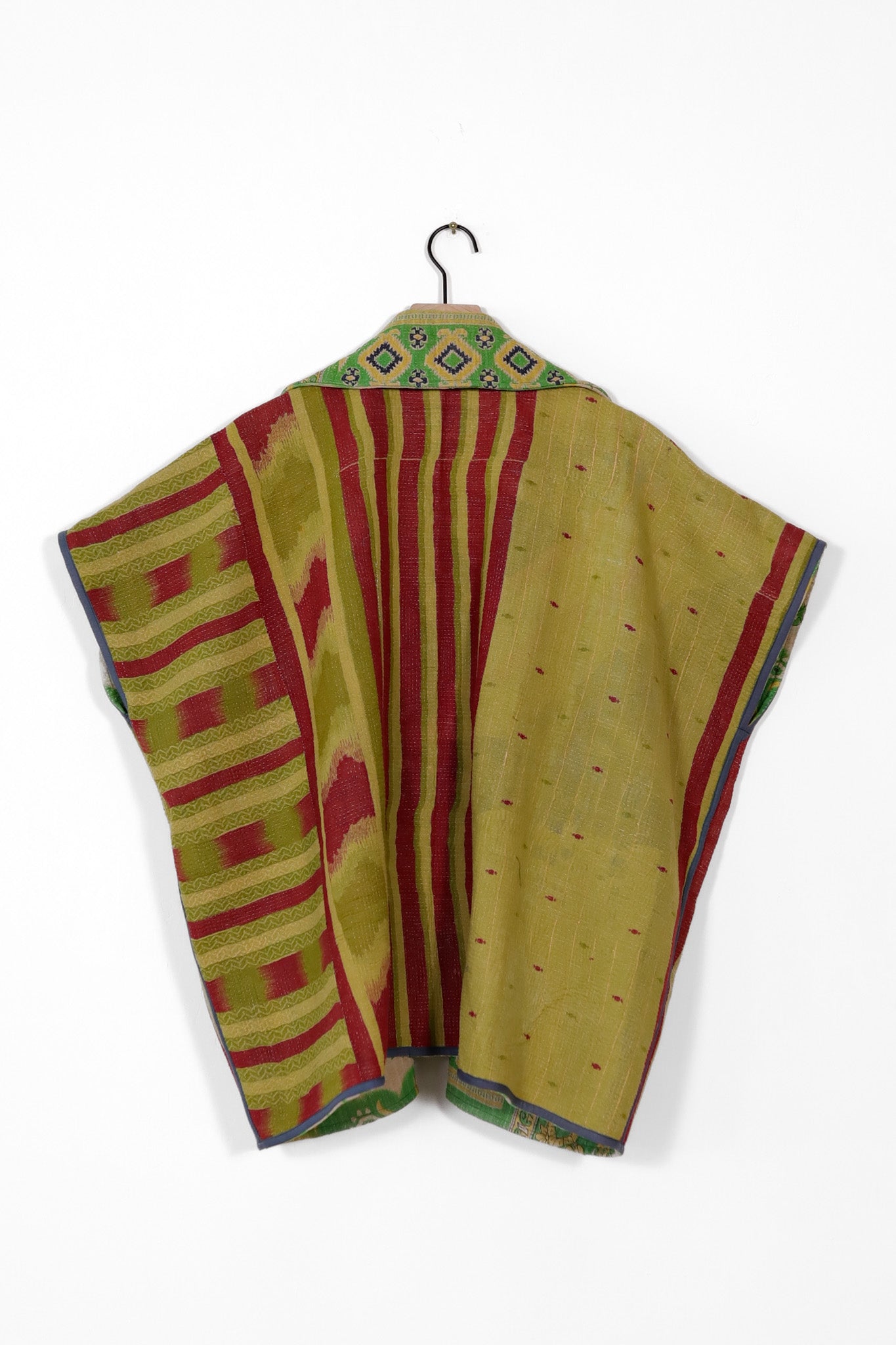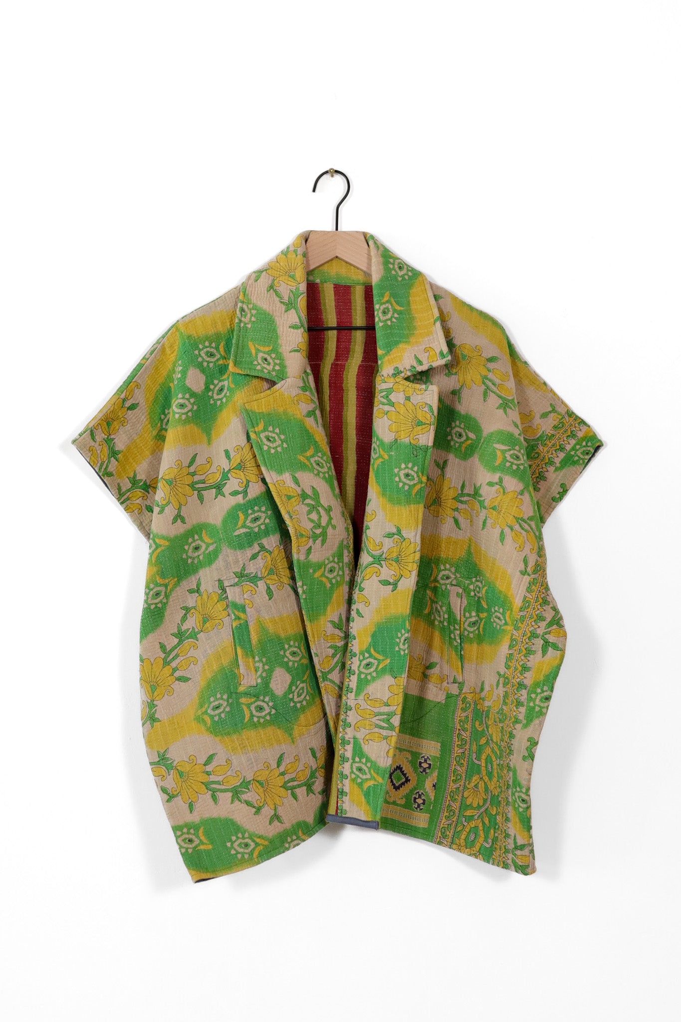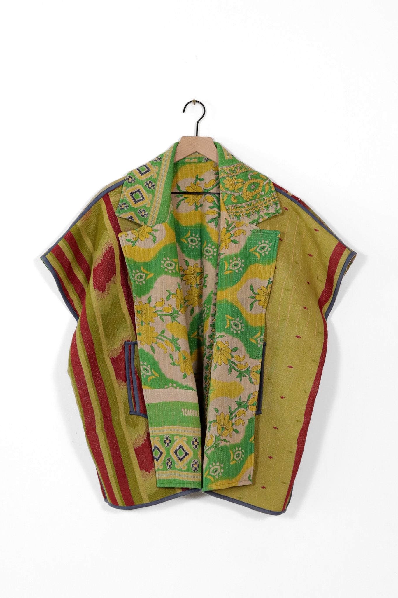 Every coat is one of a kind, made from a vintage kantha quilt. Layers of fabric bound by a hand sewn running stitch - your piece may have markings or worn areas that we find make our coats even more storied and unique.