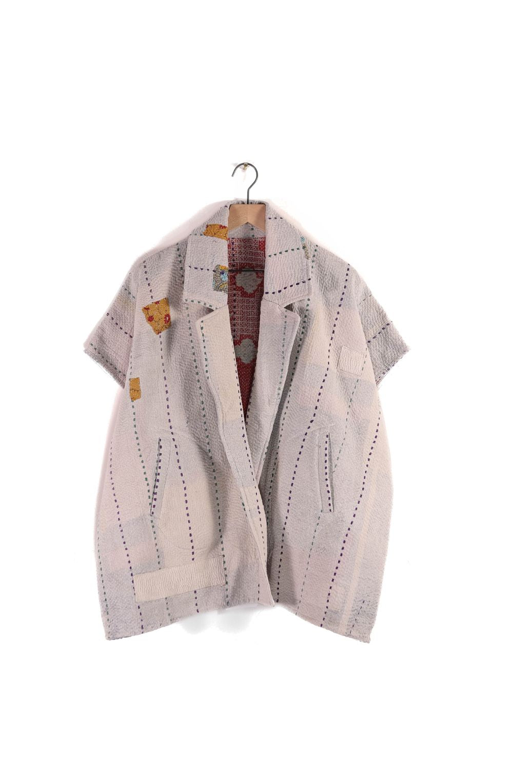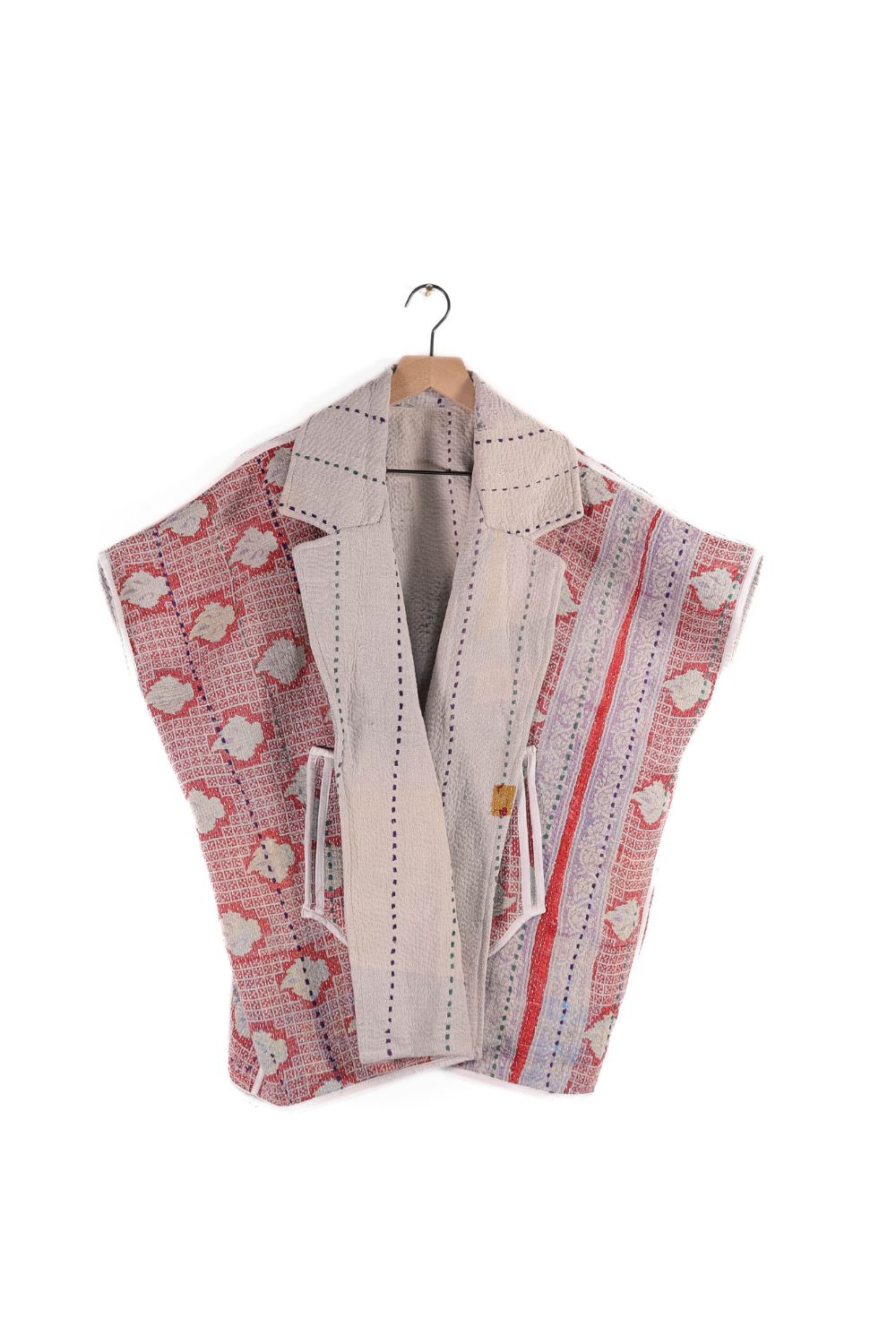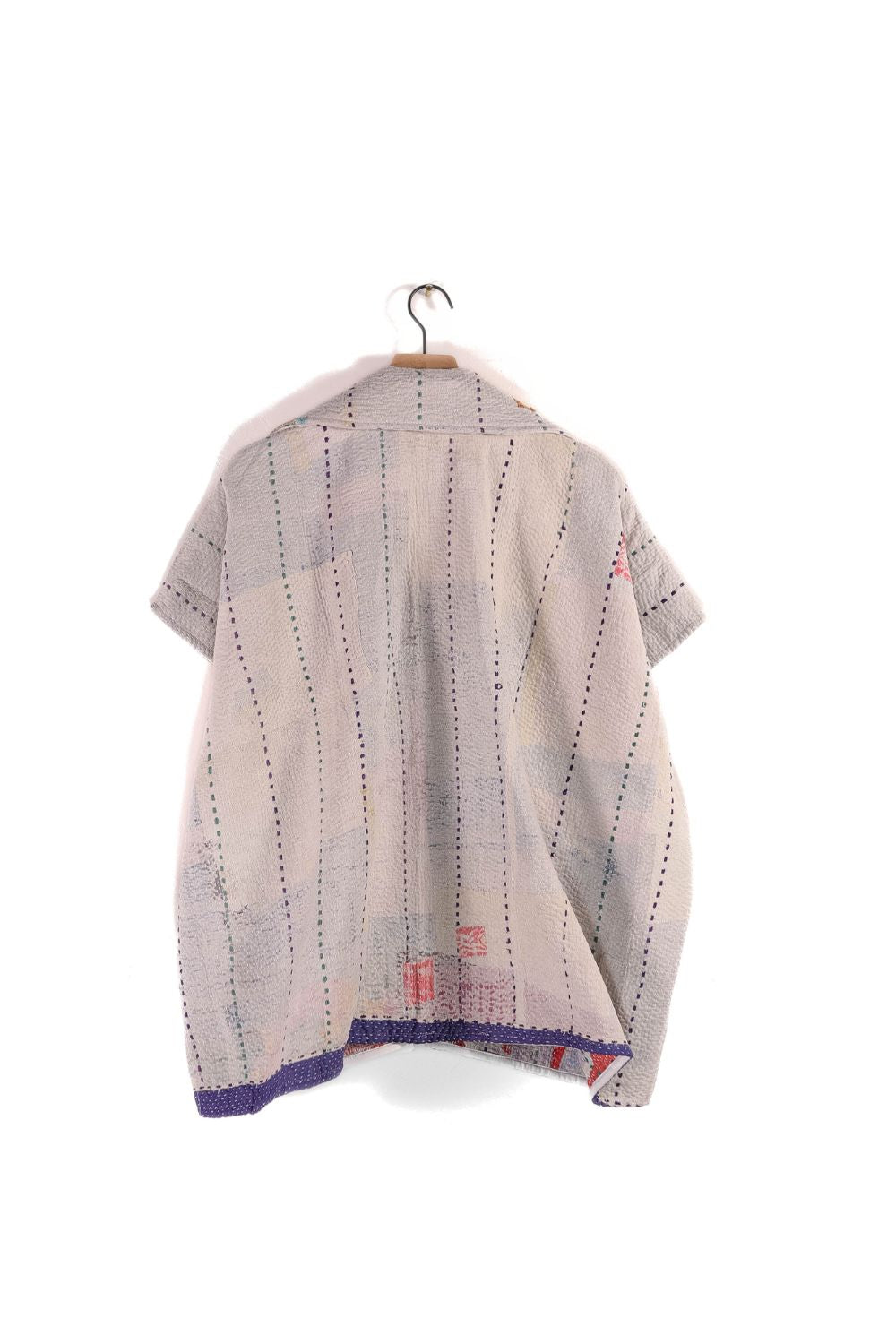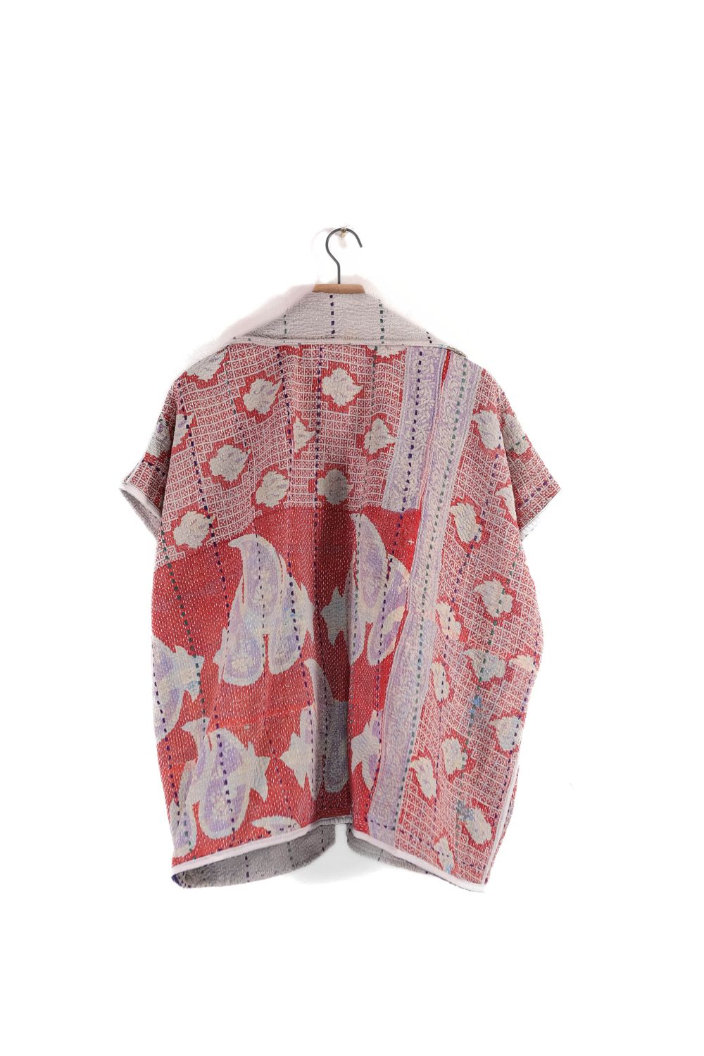Every coat is one of a kind, made from a vintage kantha quilt. Layers of fabric bound by a hand sewn running stitch - your piece may have markings or worn areas that we find make our coats even more storied and unique.