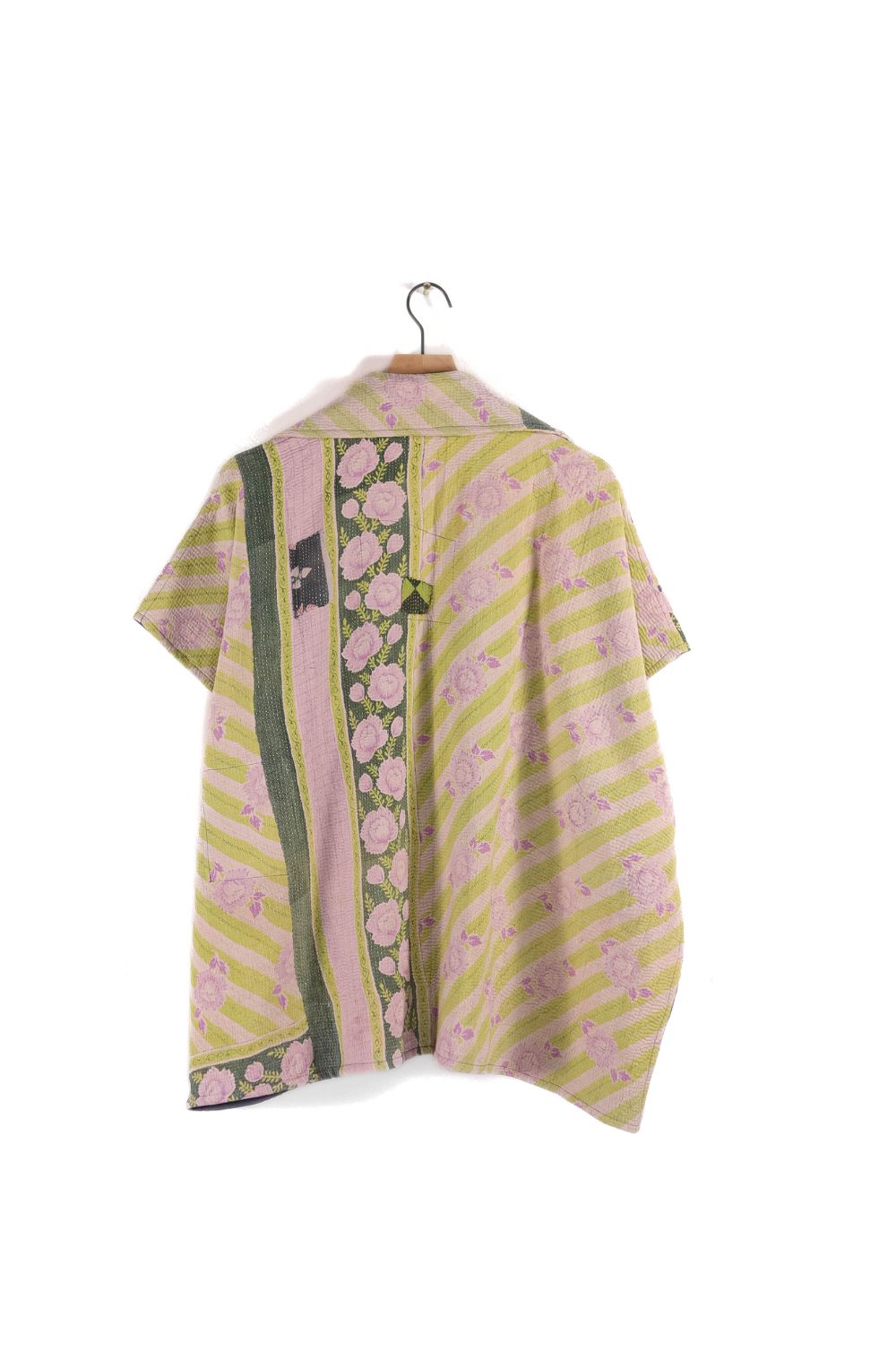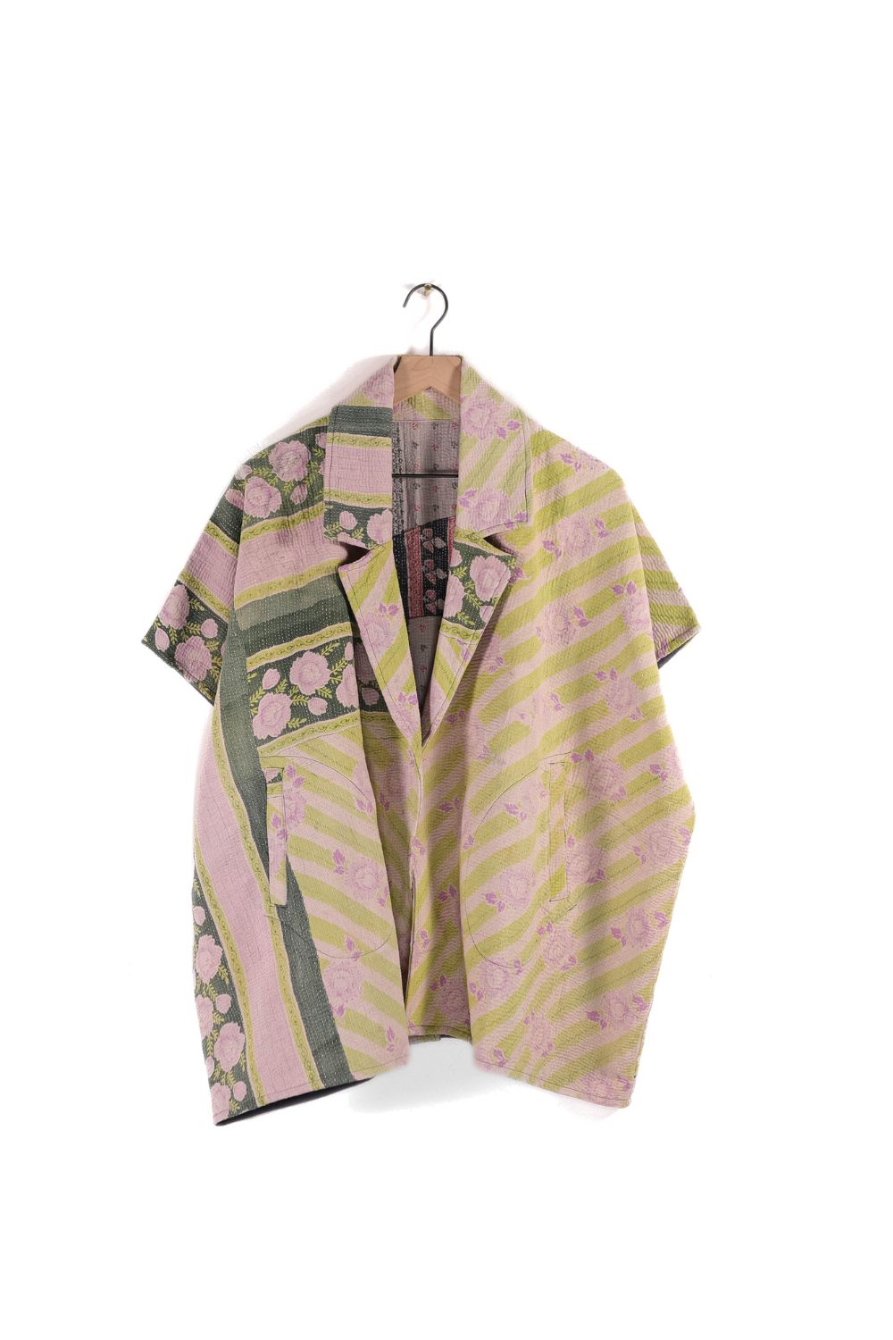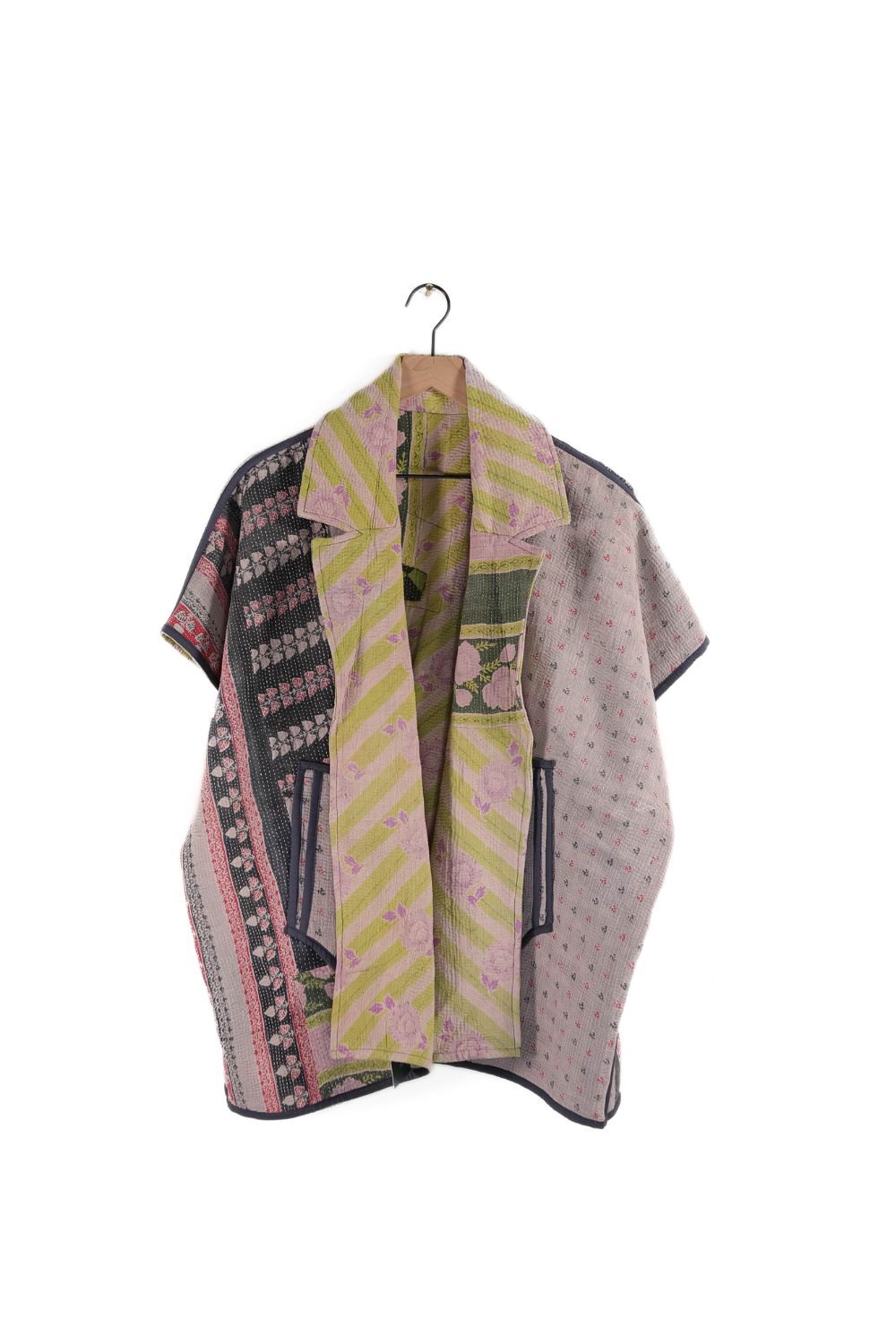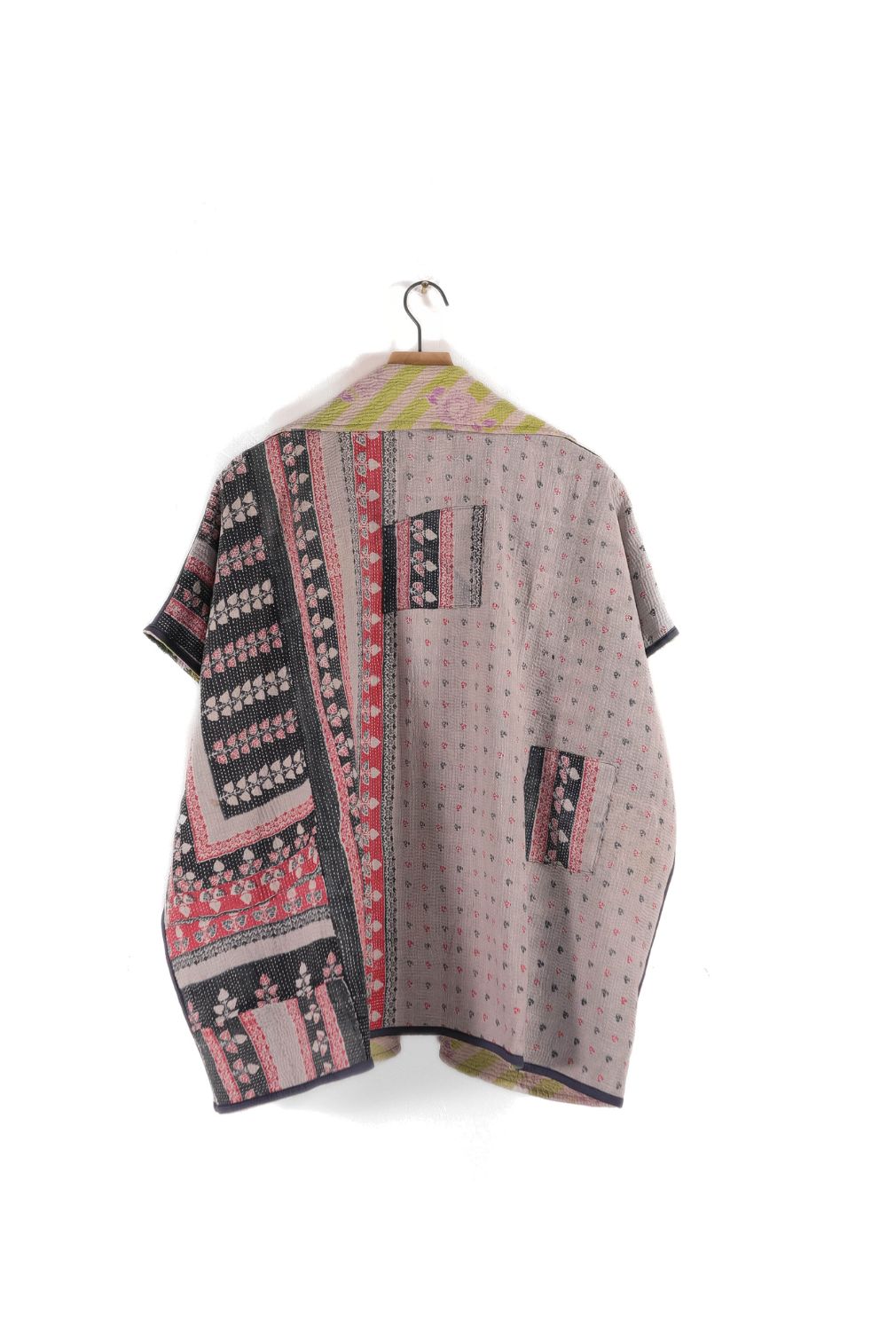 Every coat is one of a kind, made from a vintage kantha quilt. Layers of fabric bound by a hand sewn running stitch - your piece may have markings or worn areas that we find make our coats even more storied and unique.