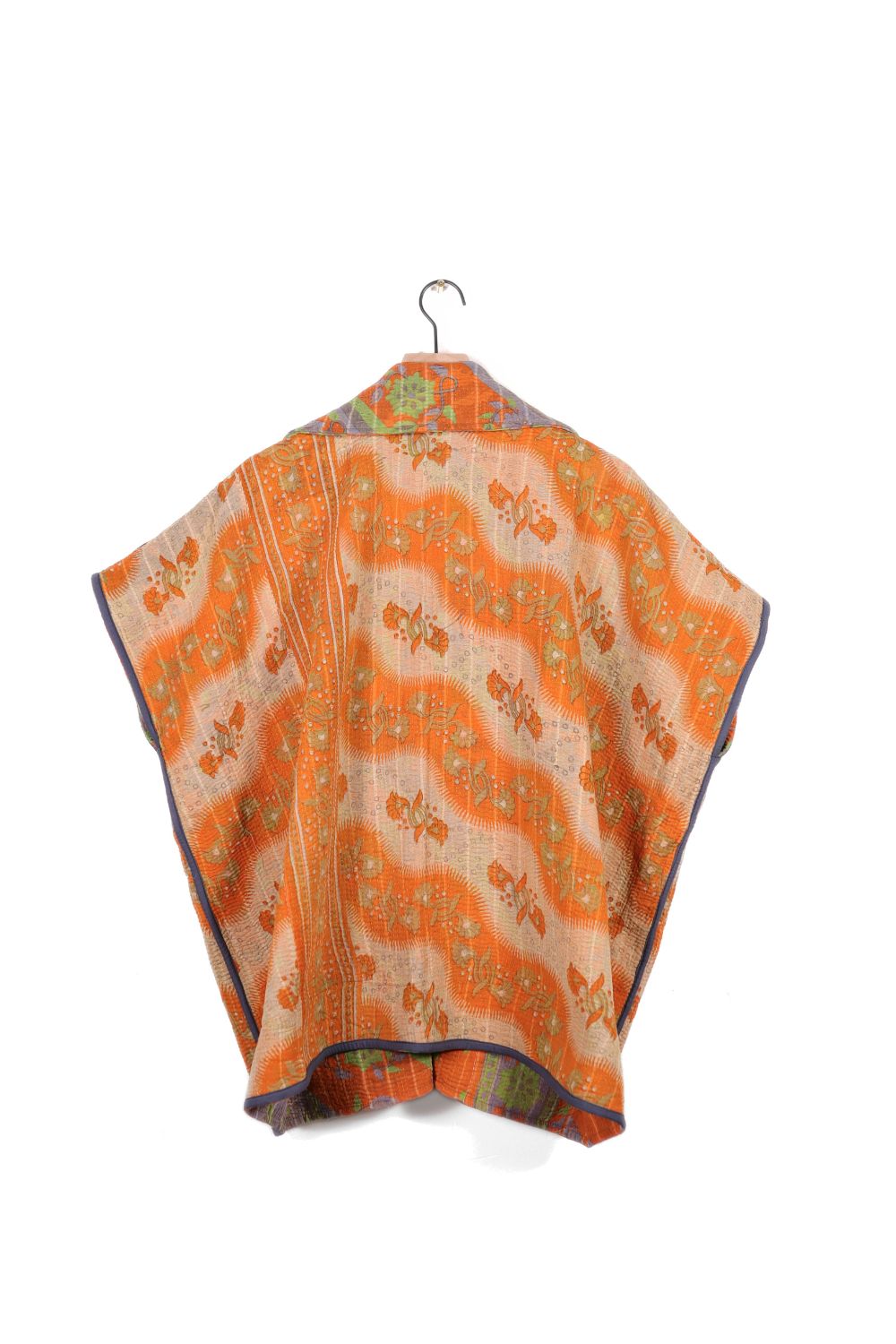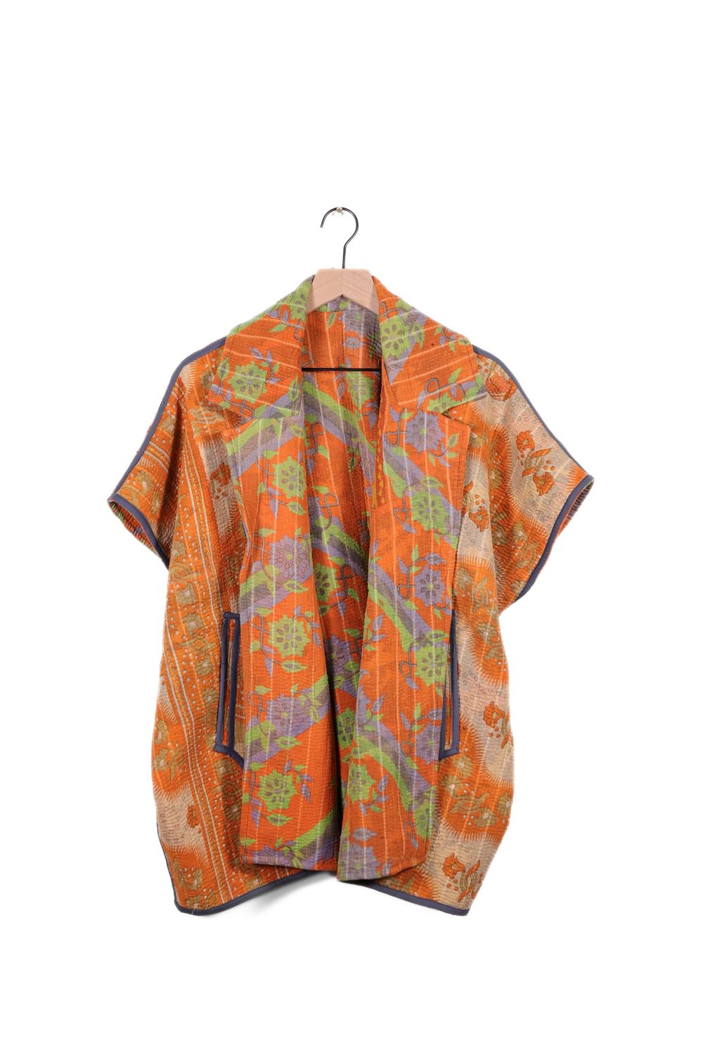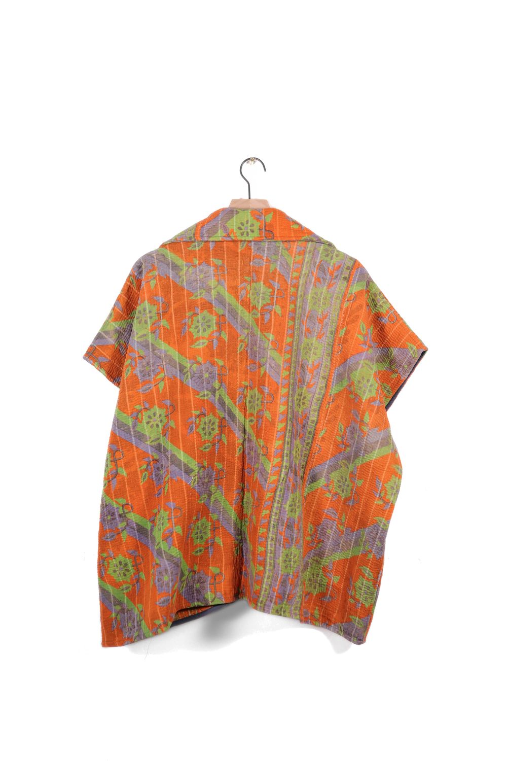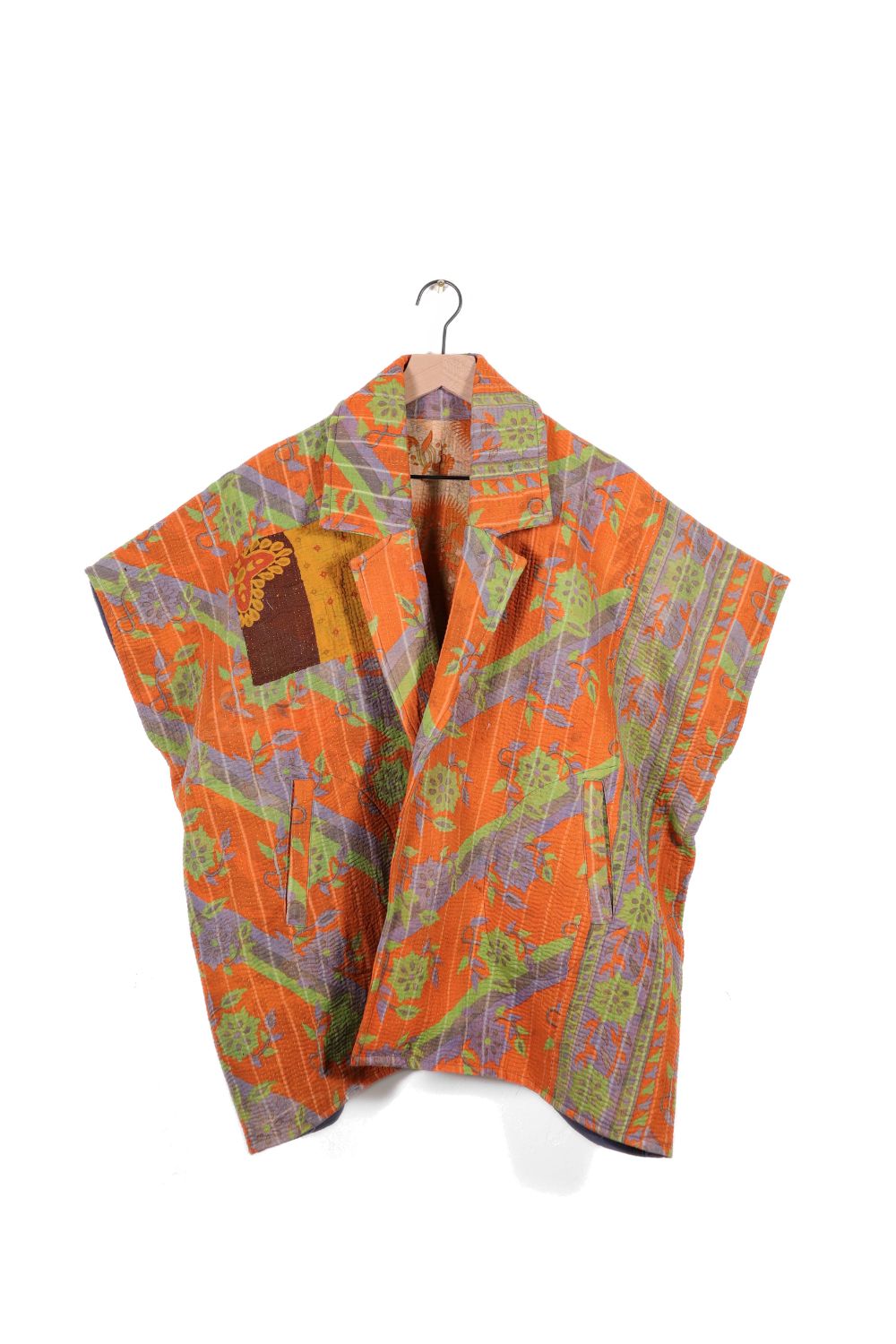 Every coat is one of a kind, made from a vintage kantha quilt. Layers of fabric bound by a hand sewn running stitch - your piece may have markings or worn areas that we find make our coats even more storied and unique.