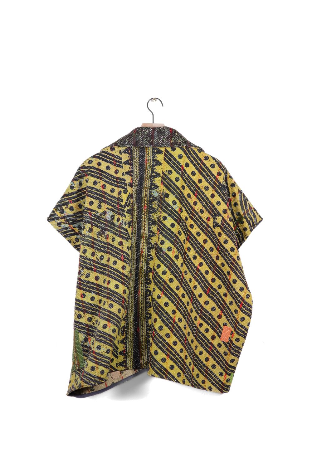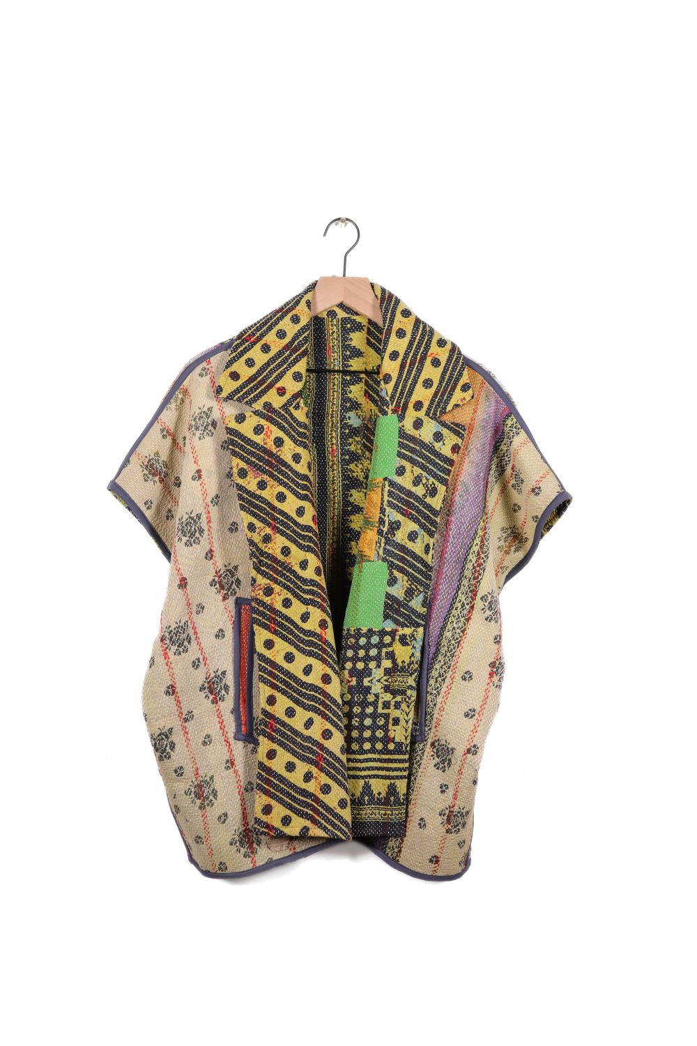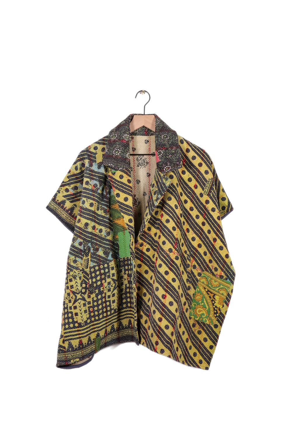 Every coat is one of a kind, made from a vintage kantha quilt. Layers of fabric bound by a hand sewn running stitch - your piece may have markings or worn areas that we find make our coats even more storied and unique.