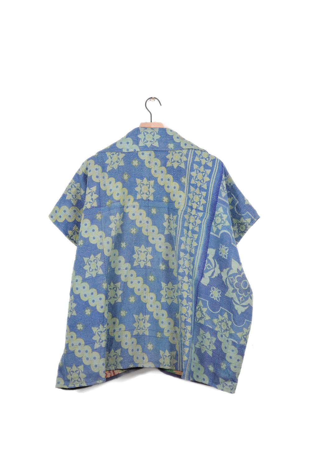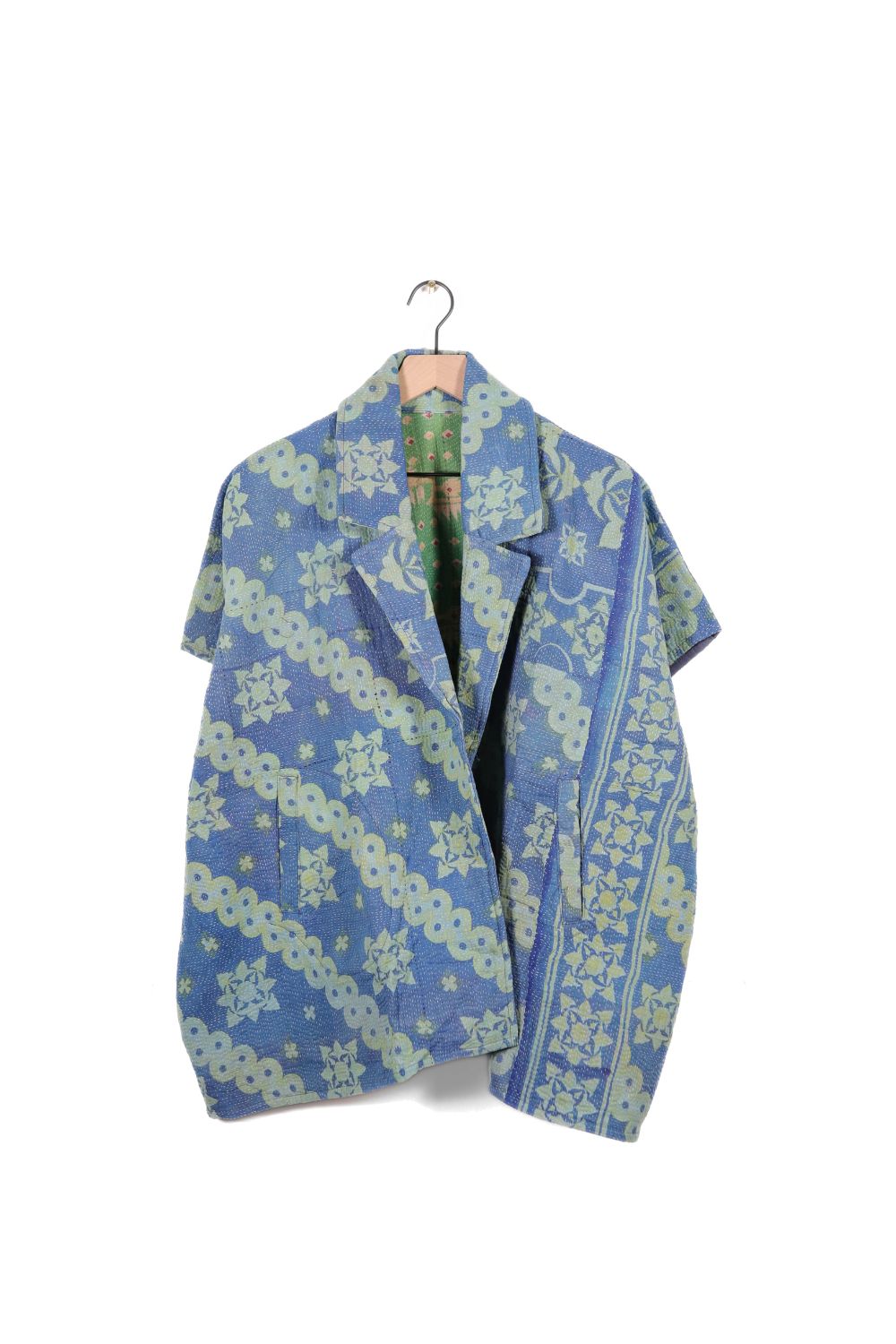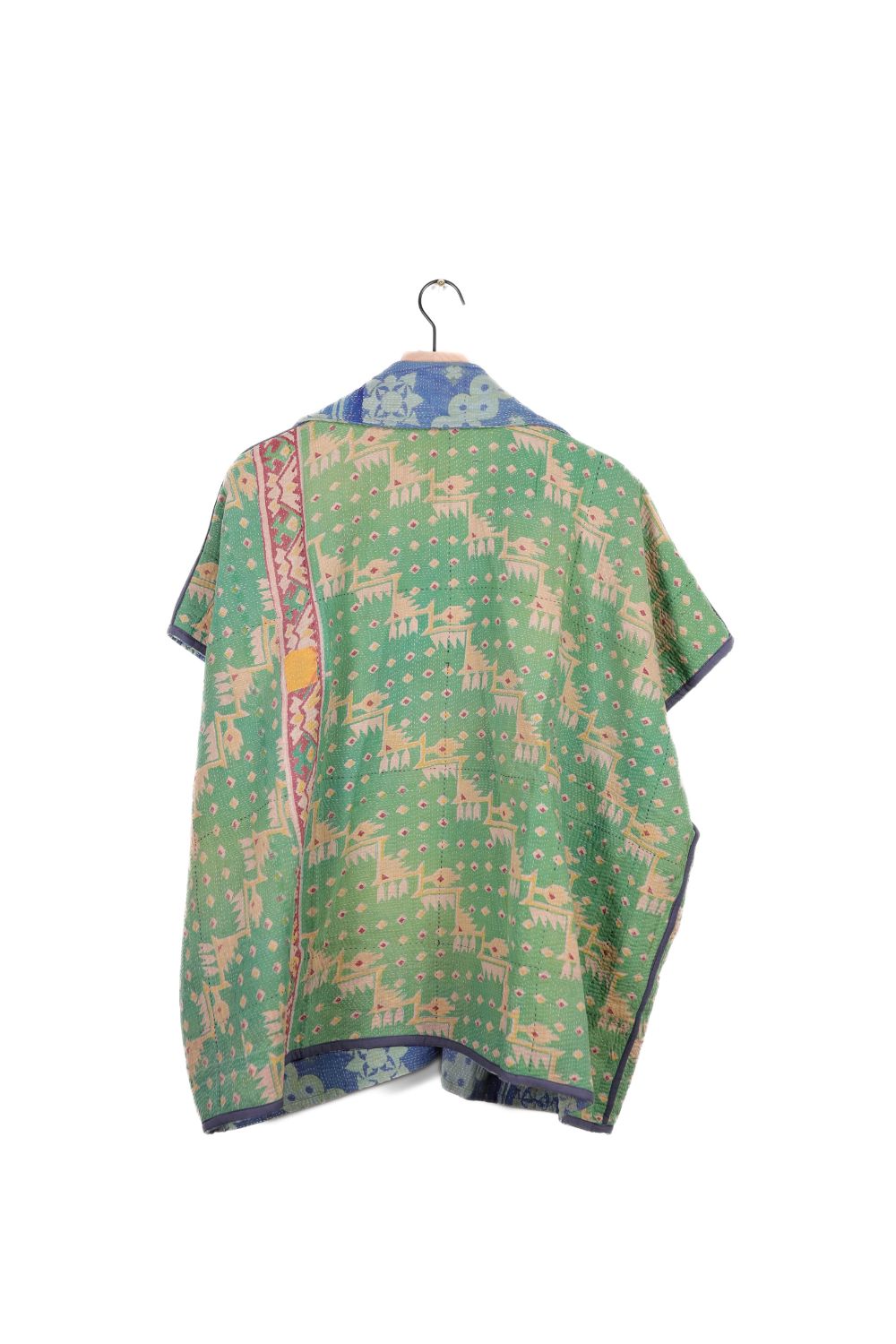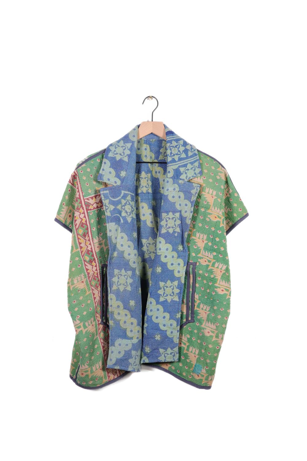 Every coat is one of a kind, made from a vintage kantha quilt. Layers of fabric bound by a hand sewn running stitch - your piece may have markings or worn areas that we find make our coats even more storied and unique.