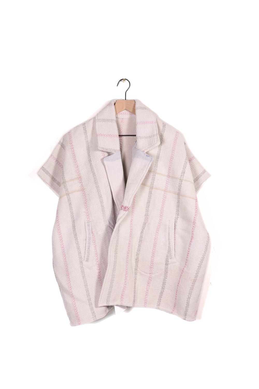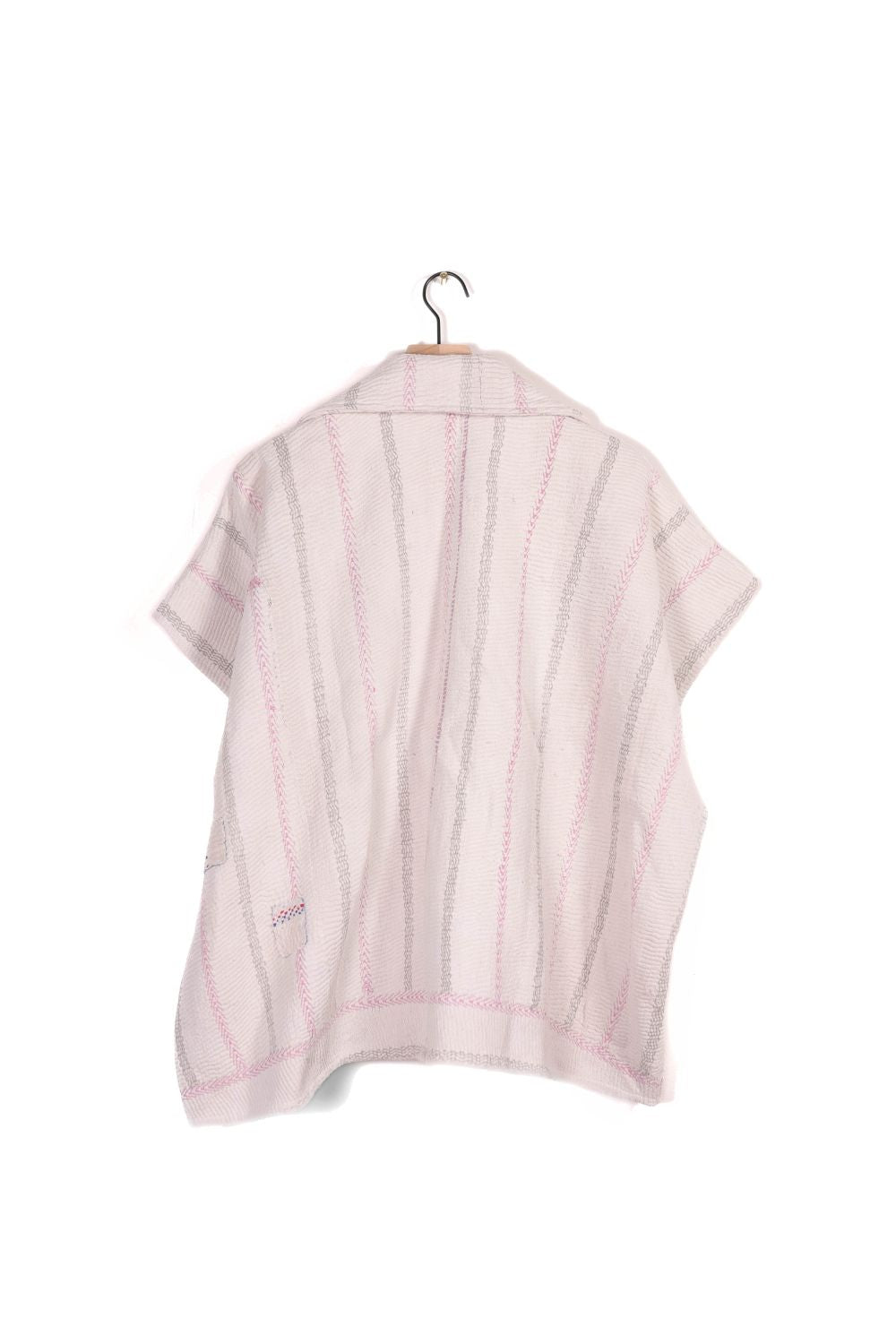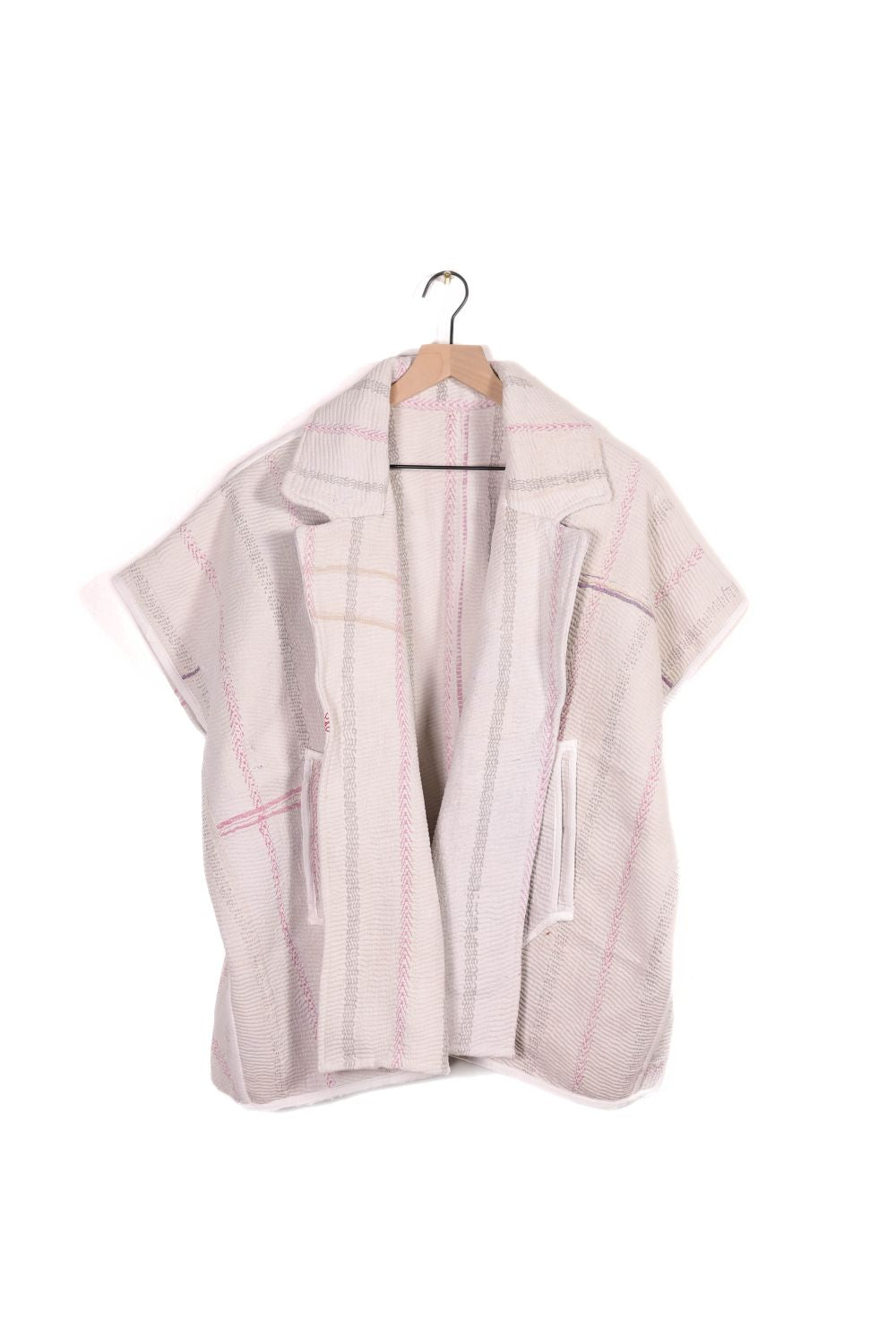 Every coat is one of a kind, made from a vintage kantha quilt. Layers of fabric bound by a hand sewn running stitch - your piece may have markings or worn areas that we find make our coats even more storied and unique.