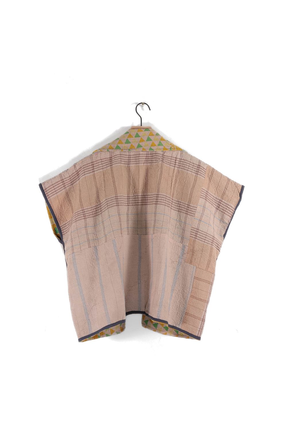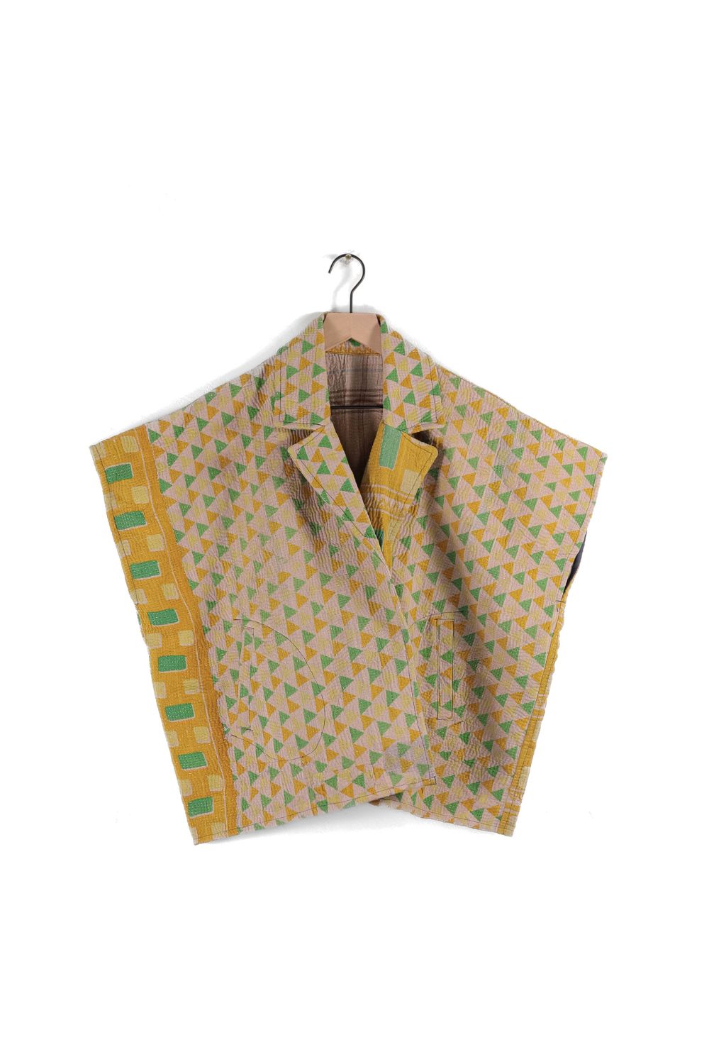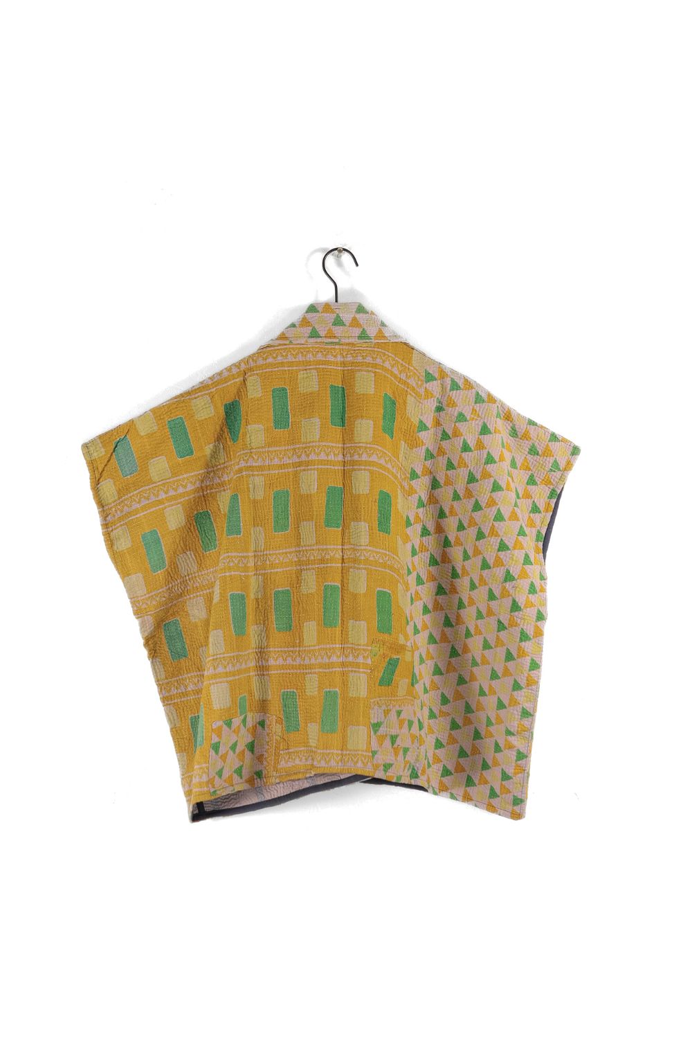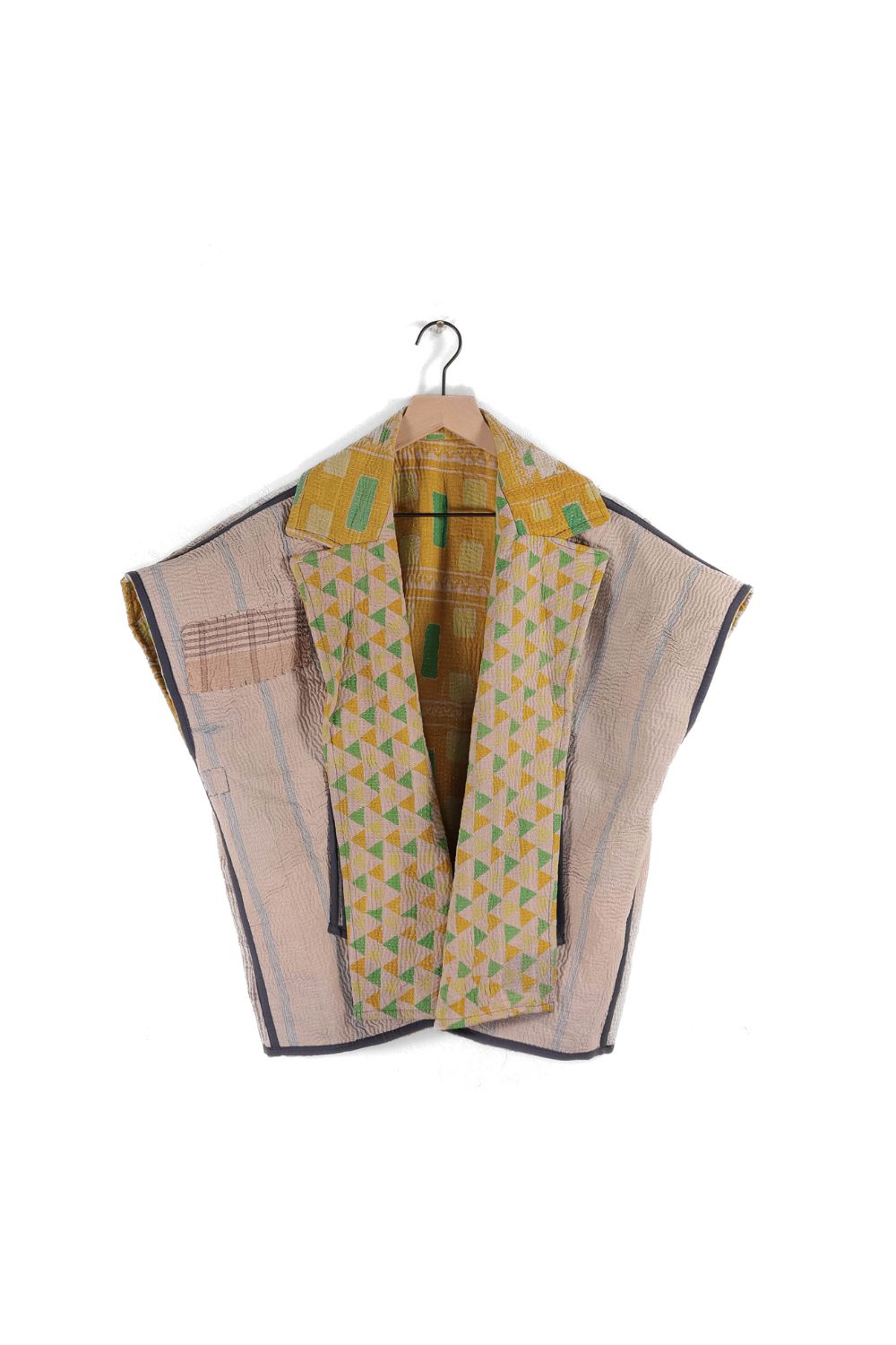 Every coat is one of a kind, made from a vintage kantha quilt. Layers of fabric bound by a hand sewn running stitch - your piece may have markings or worn areas that we find make our coats even more storied and unique.
