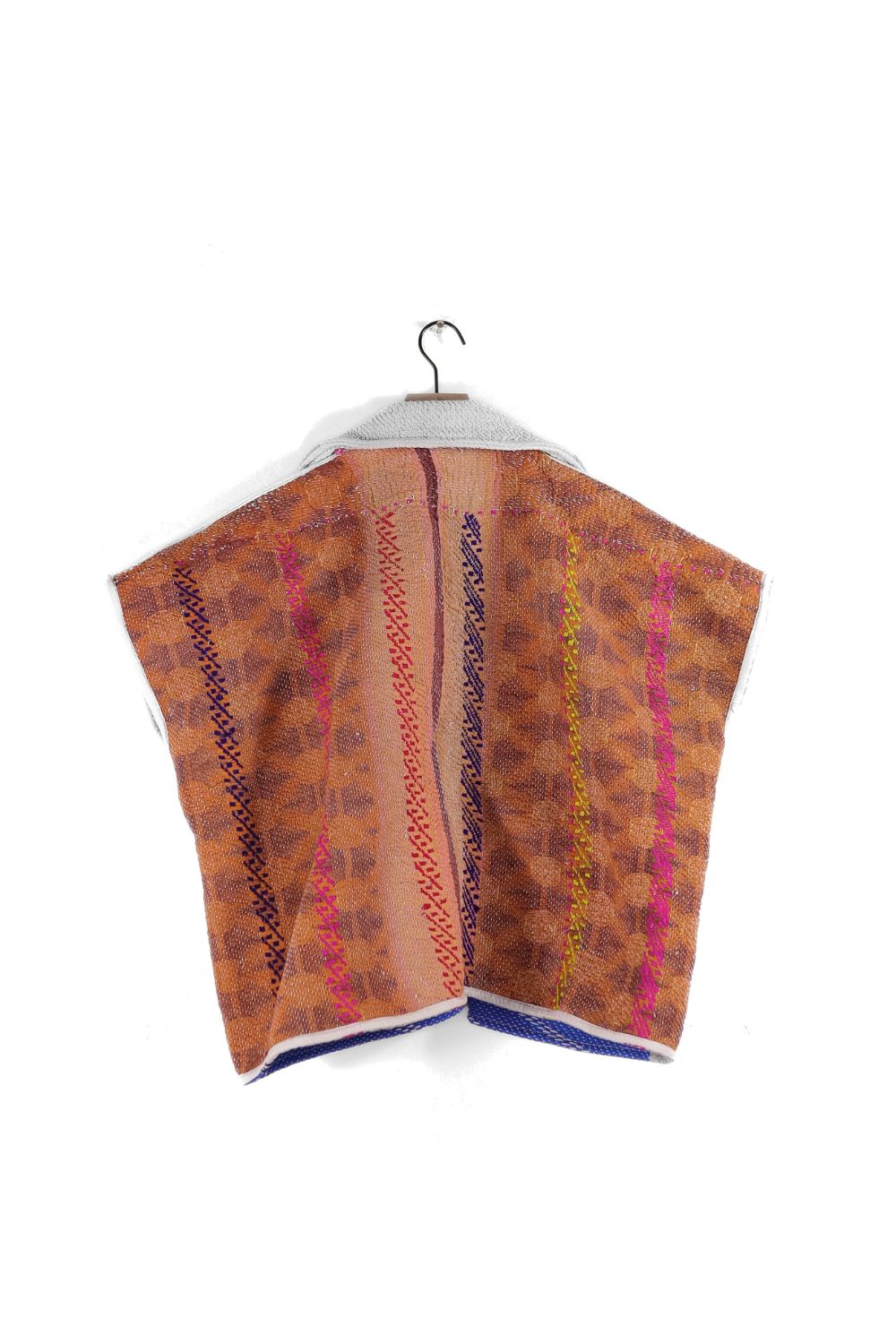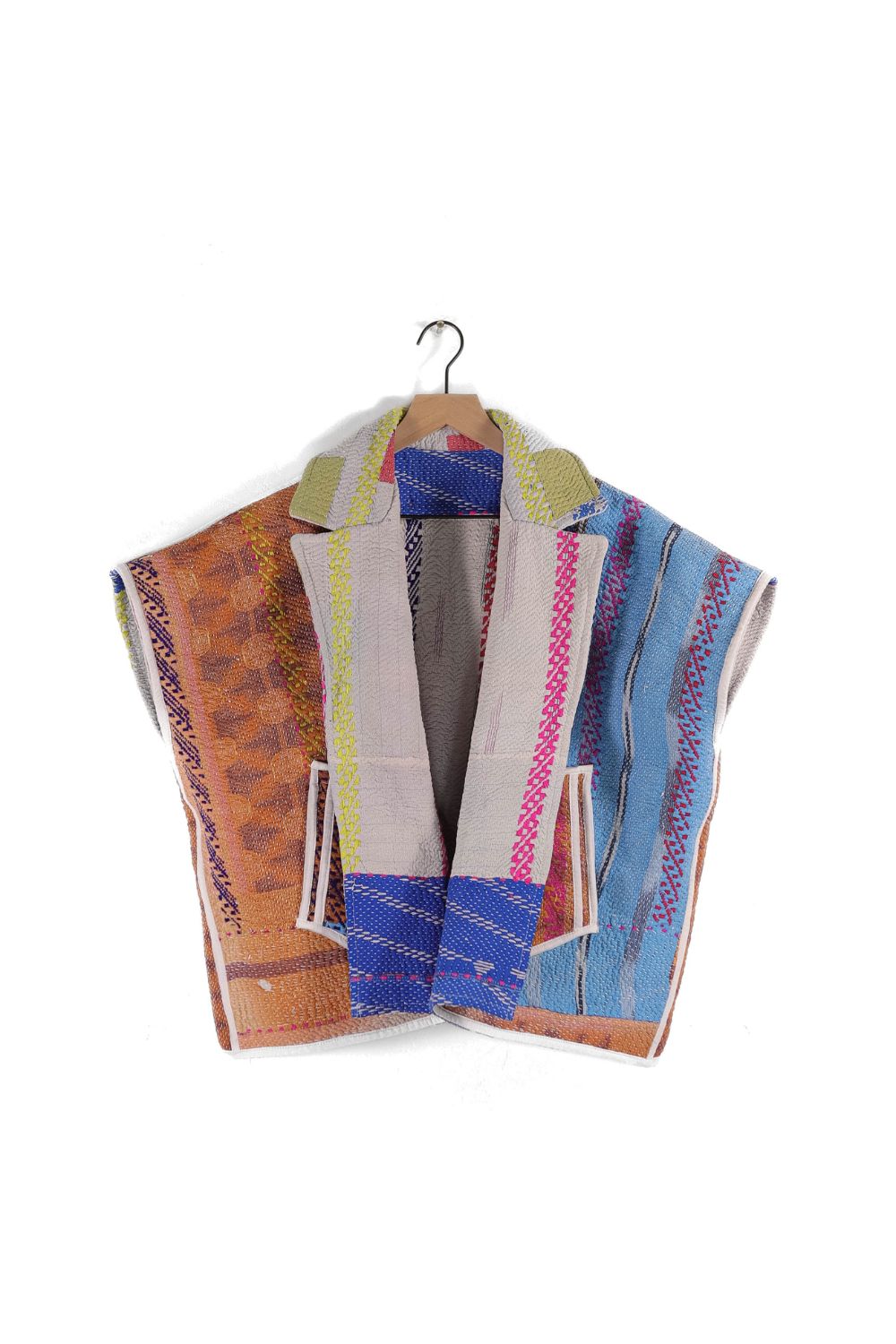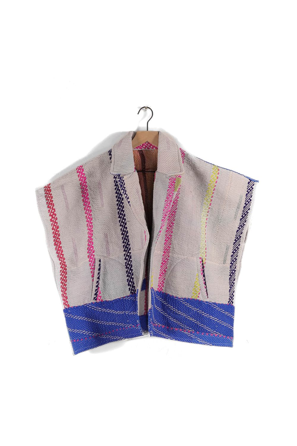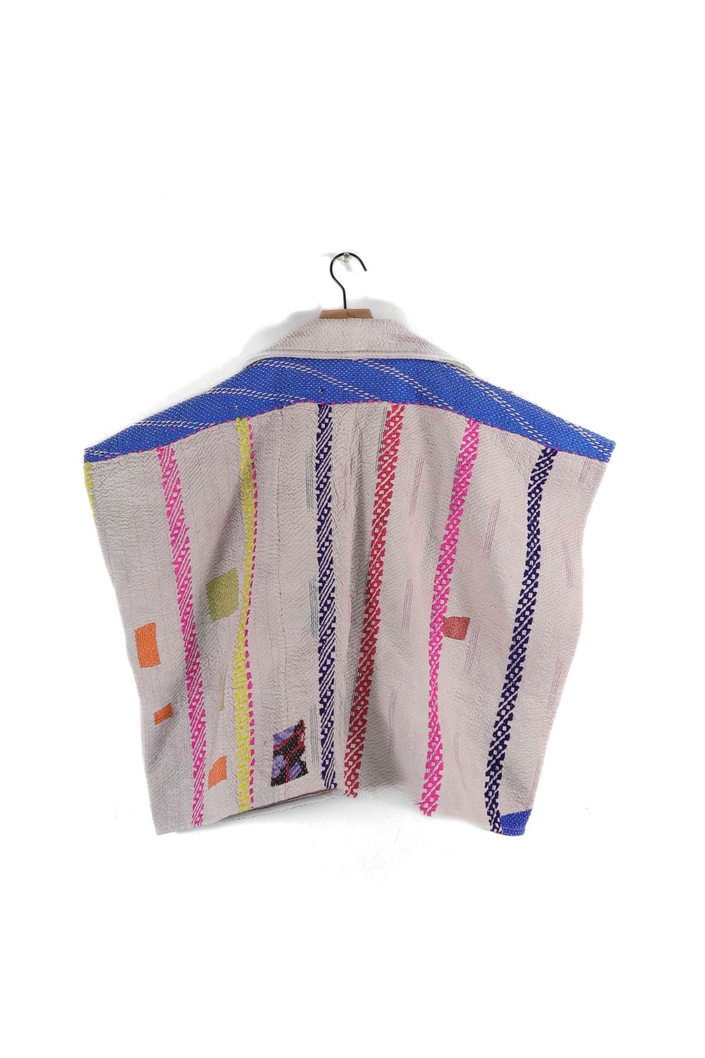Every coat is one of a kind, made from a vintage kantha quilt. Layers of fabric bound by a hand sewn running stitch - your piece may have markings or worn areas that we find make our coats even more storied and unique.