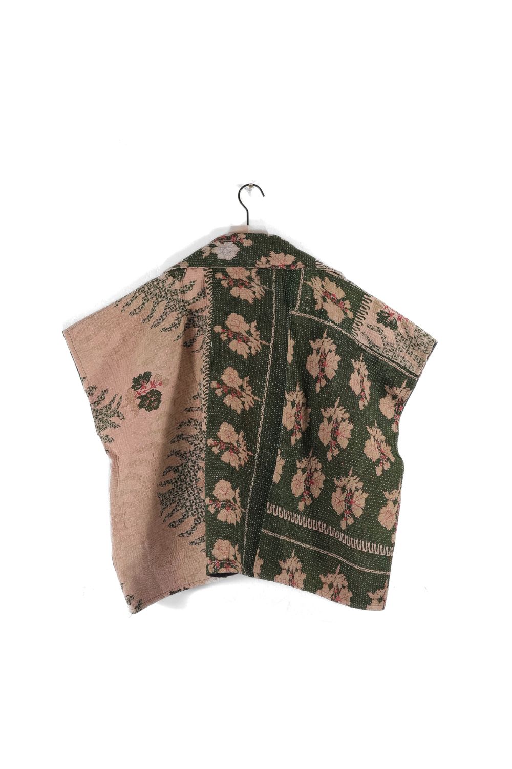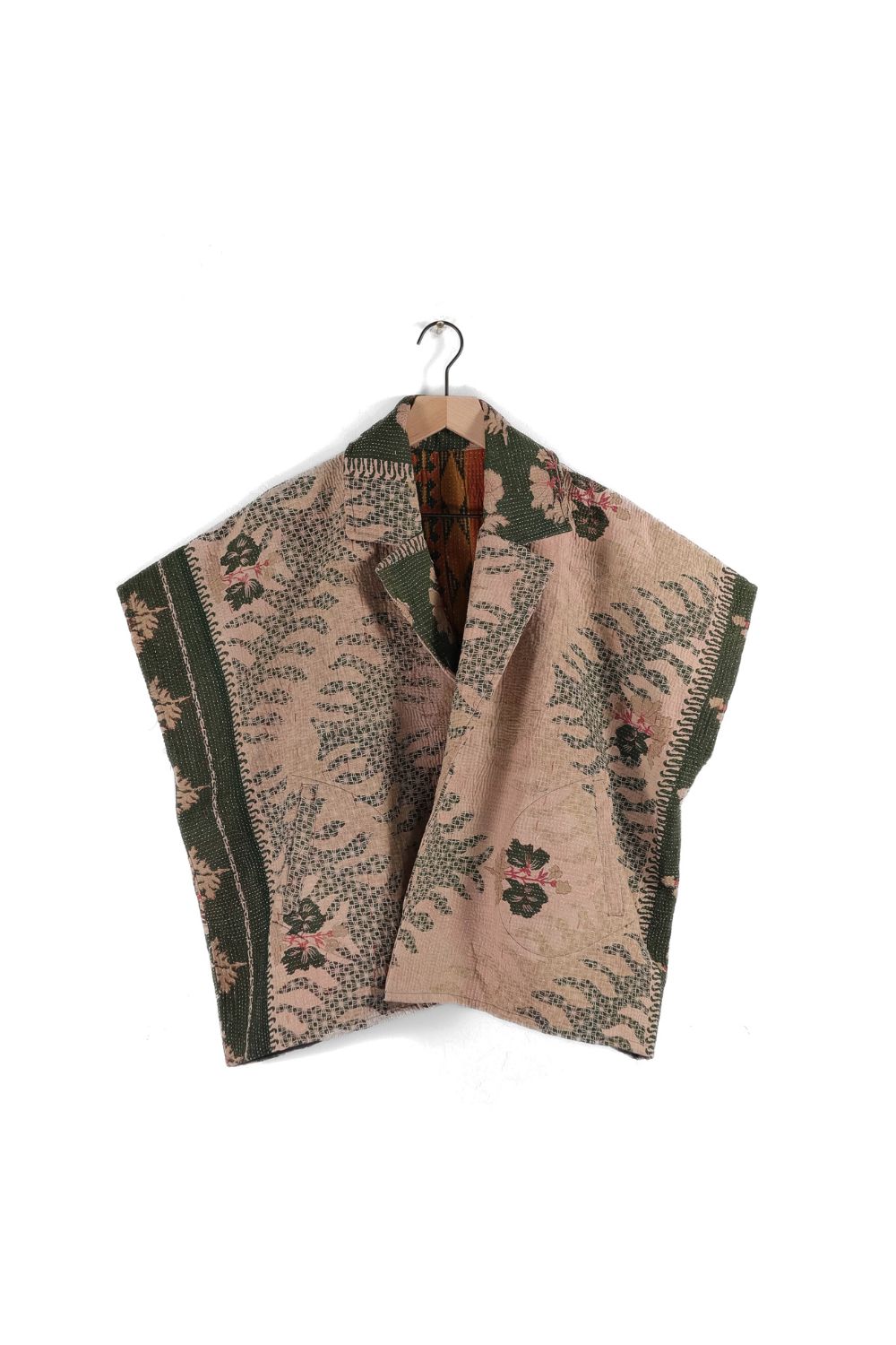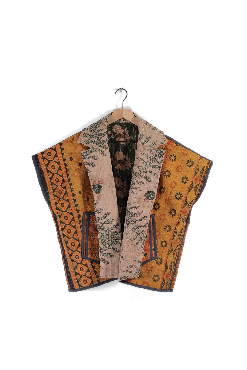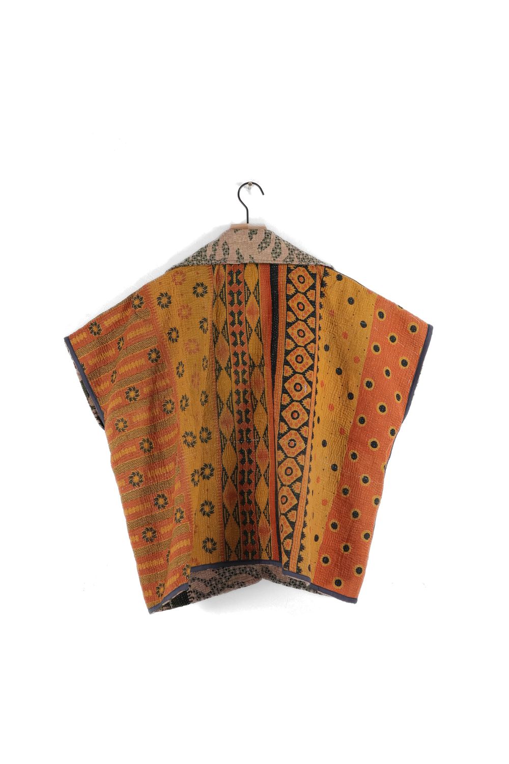 Every coat is one of a kind, made from a vintage kantha quilt. Layers of fabric bound by a hand sewn running stitch - your piece may have markings or worn areas that we find make our coats even more storied and unique.