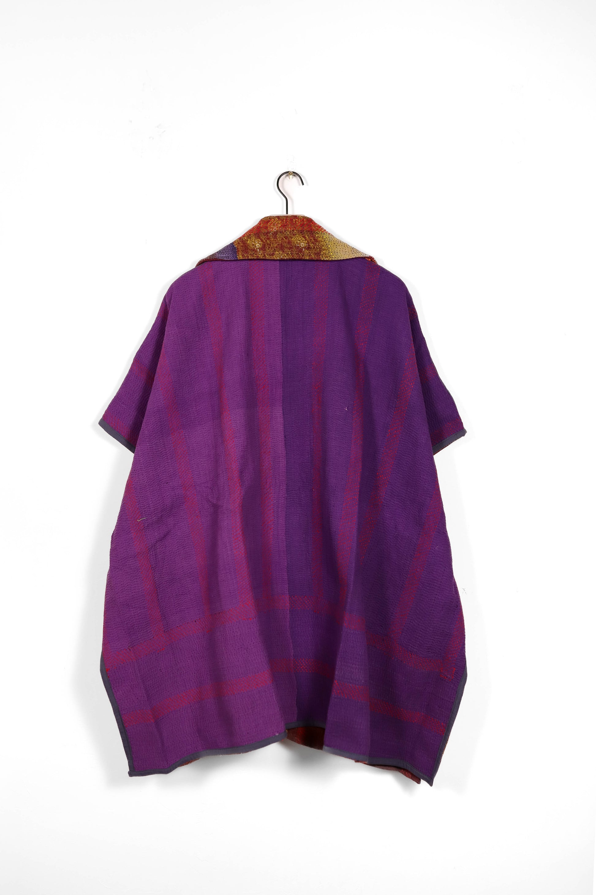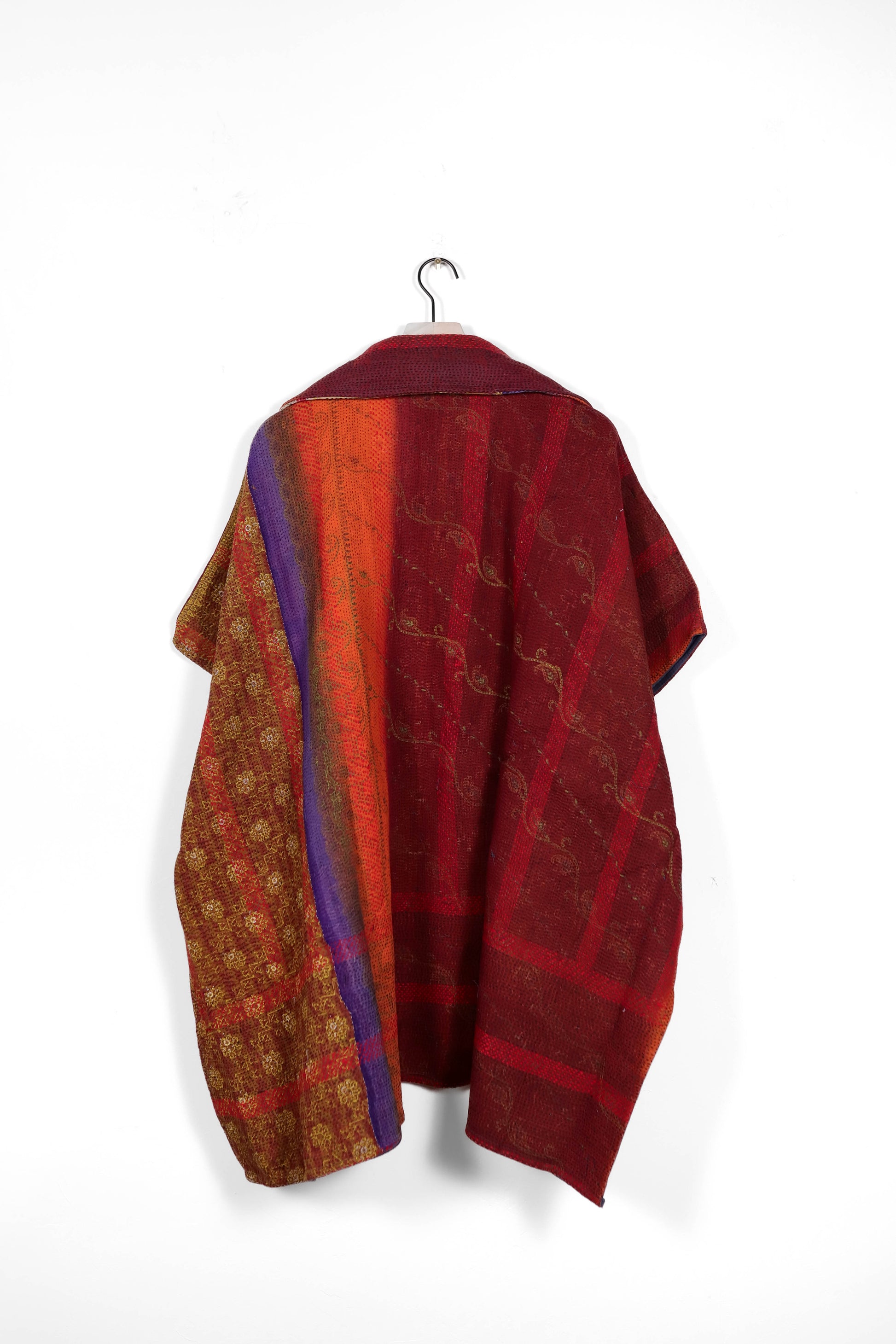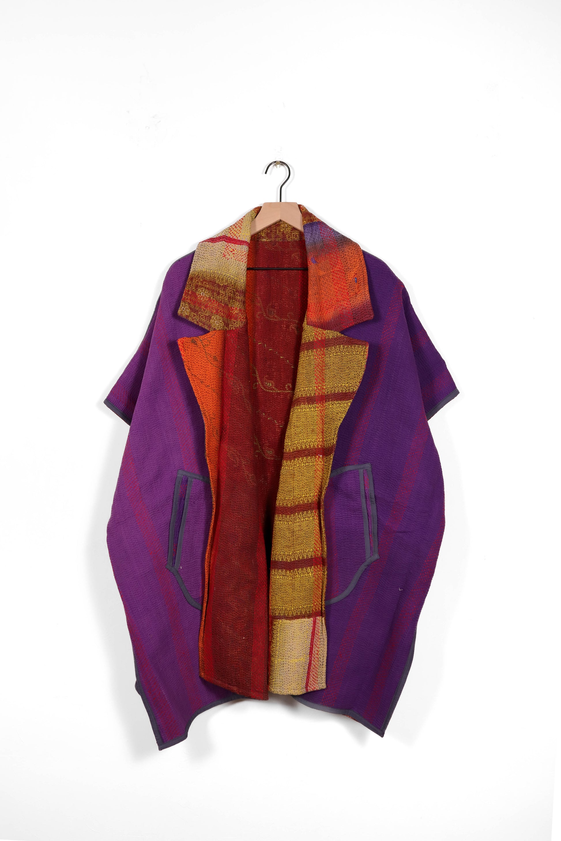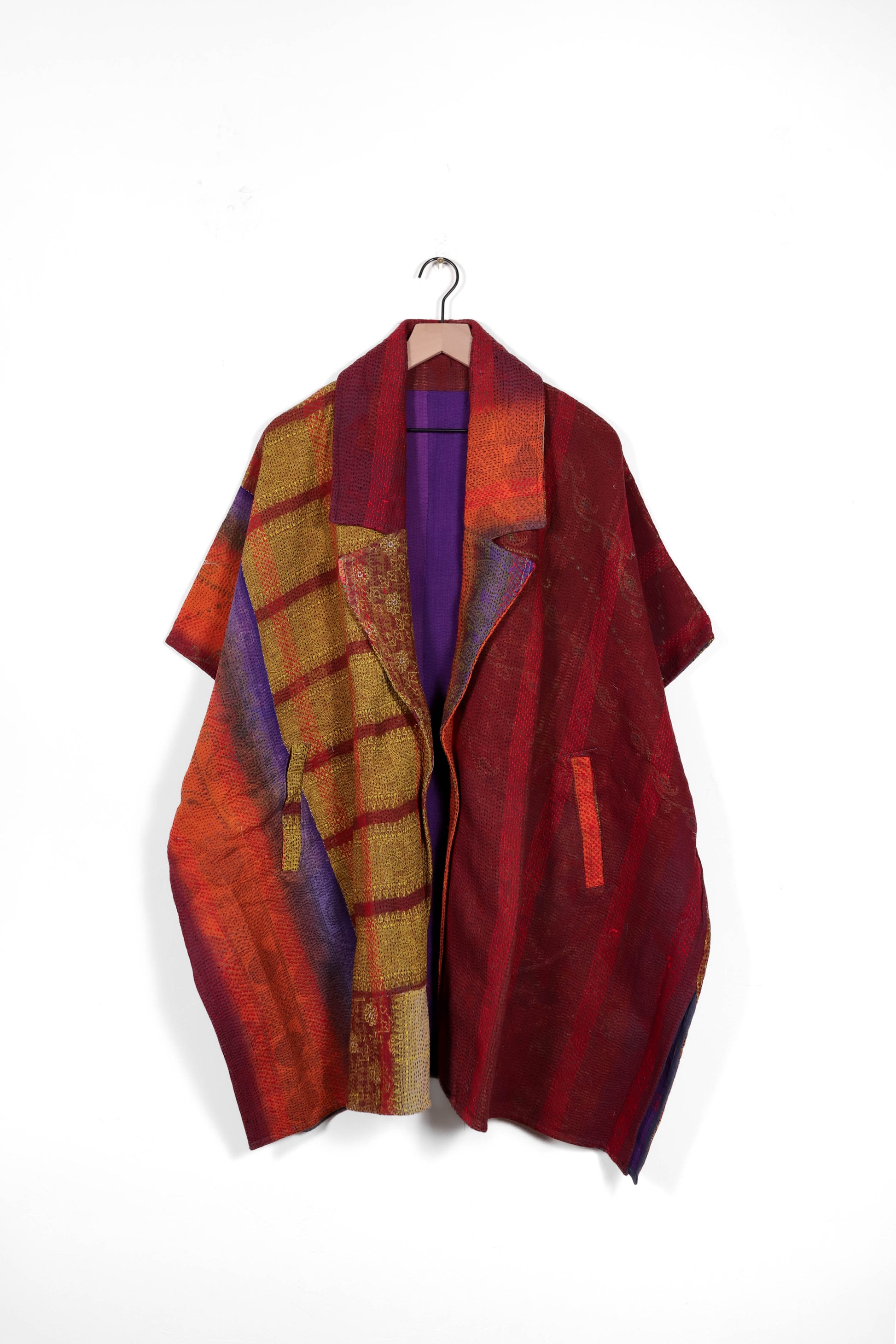 Every coat is one of a kind, made from a vintage kantha quilt. Layers of fabric bound by a hand sewn running stitch - your piece may have markings or worn areas that we find make our coats even more storied and unique.