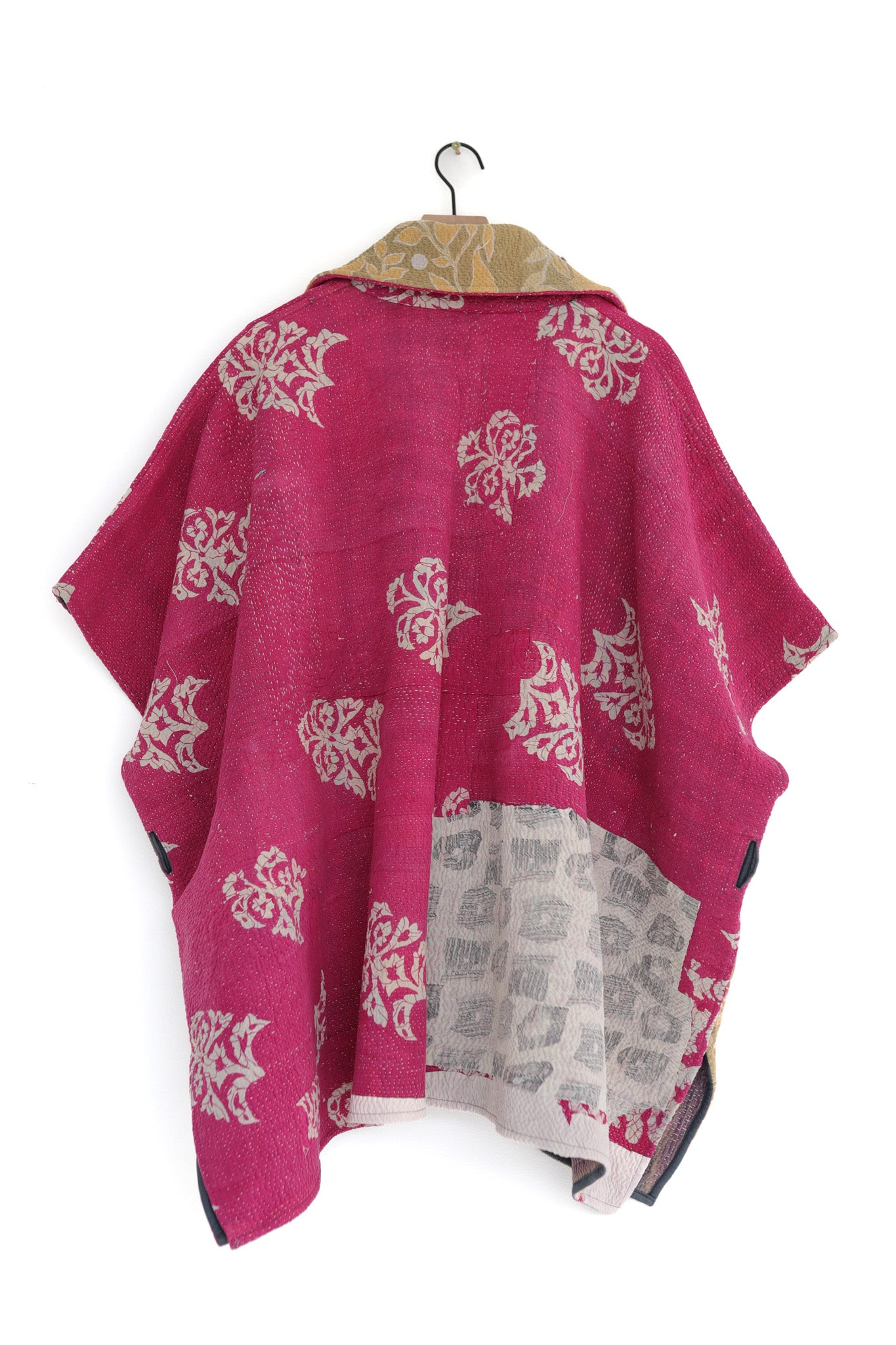 Scan the QR code label hidden in the collar of your coat to learn more about the kanthas we use to make our blanket coats.