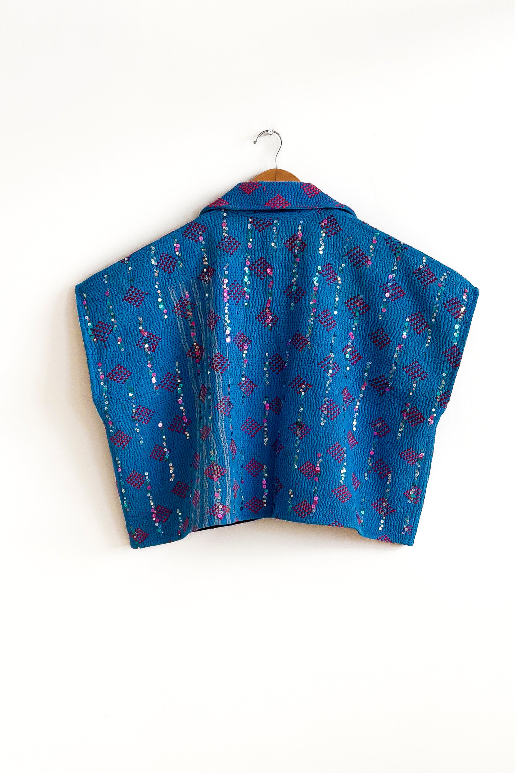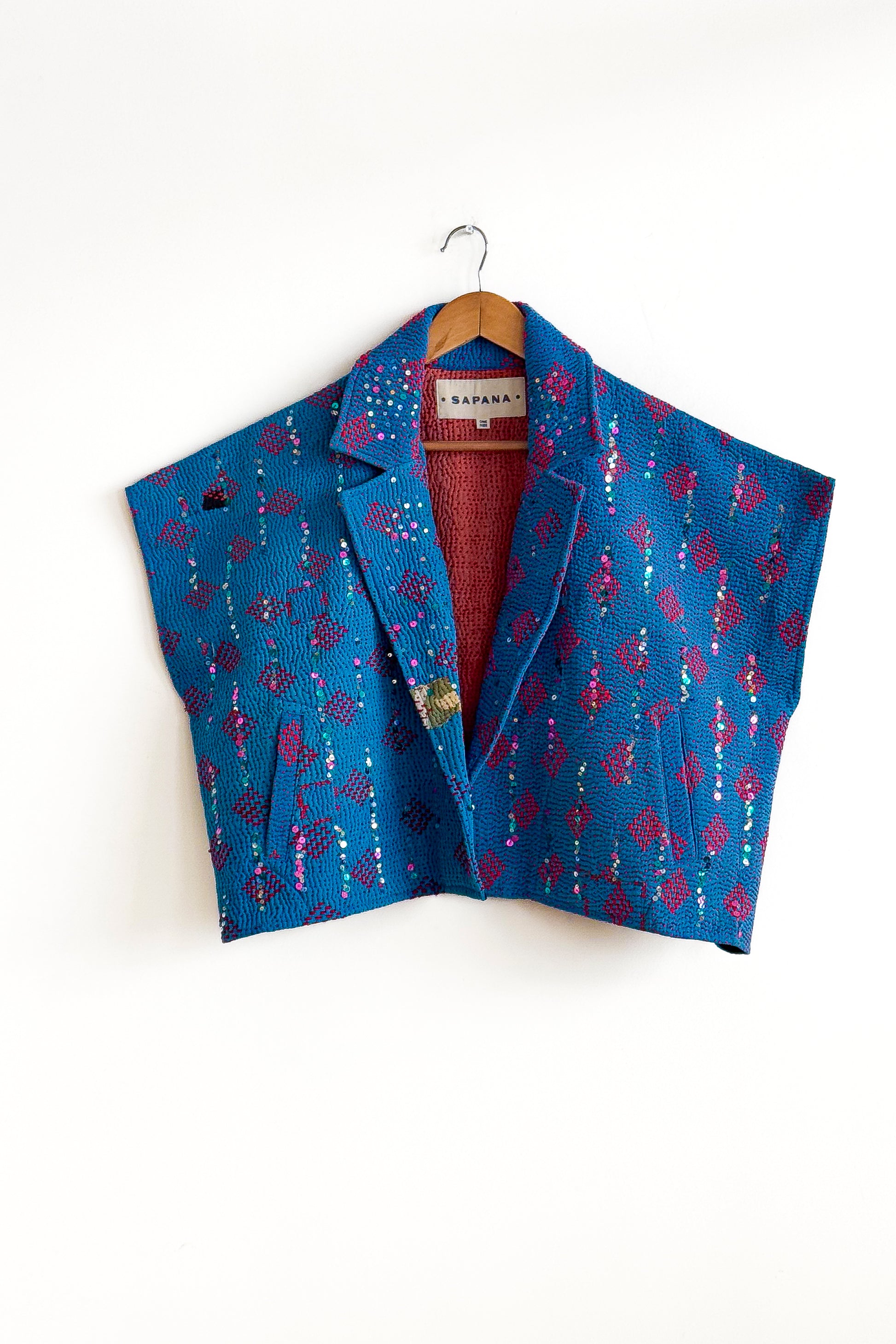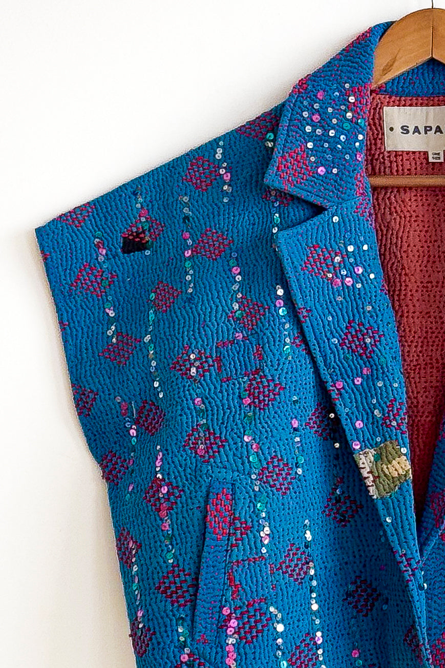 Every coat is one of a kind, made from a vintage kantha quilt. Layers of fabric bound by a hand sewn running stitch - your piece may have markings or worn areas that we find make our coats even more storied and unique.