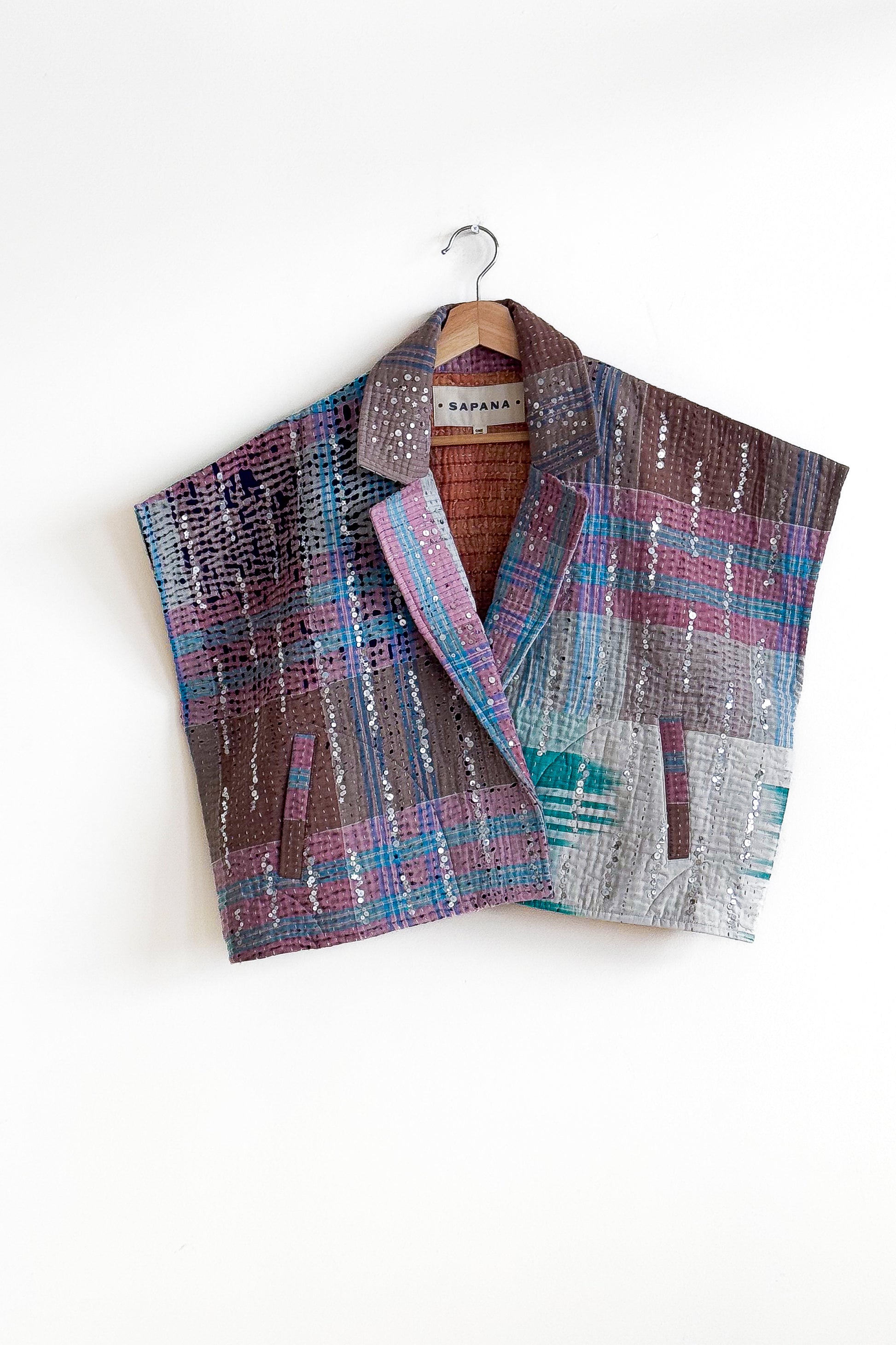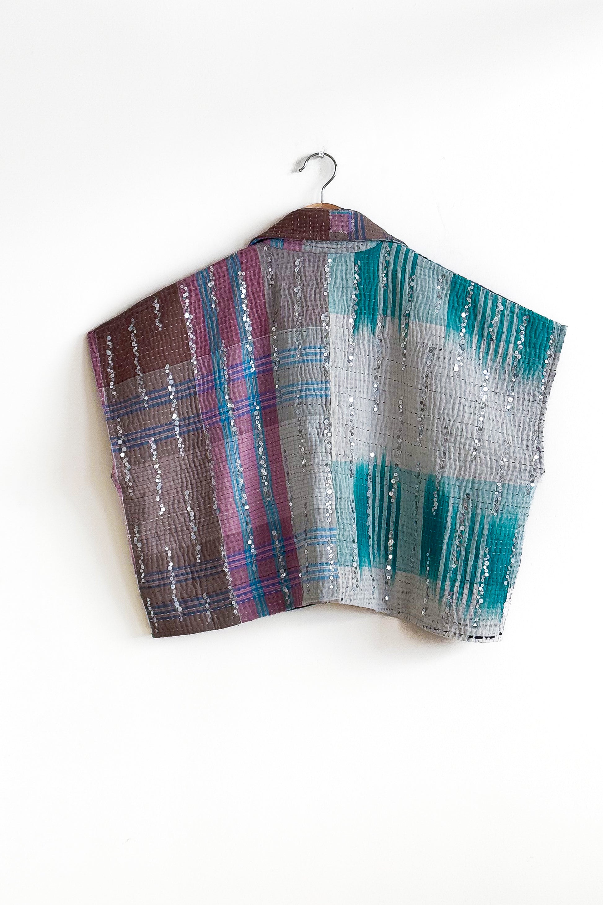 The sequins have been hand applied to your Kantha before it became your coat.