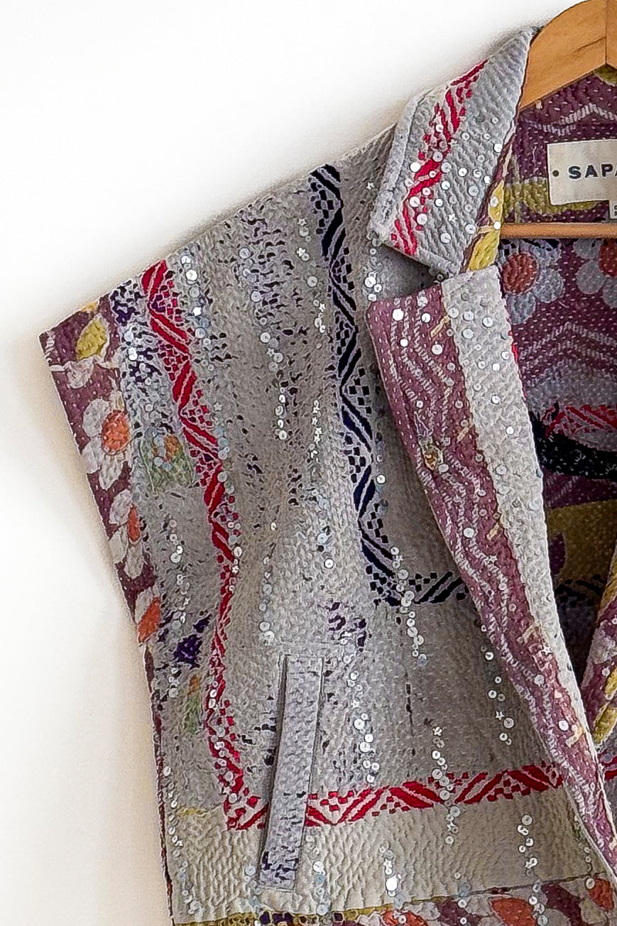 The sequins have been hand applied to your Kantha before it became your coat.