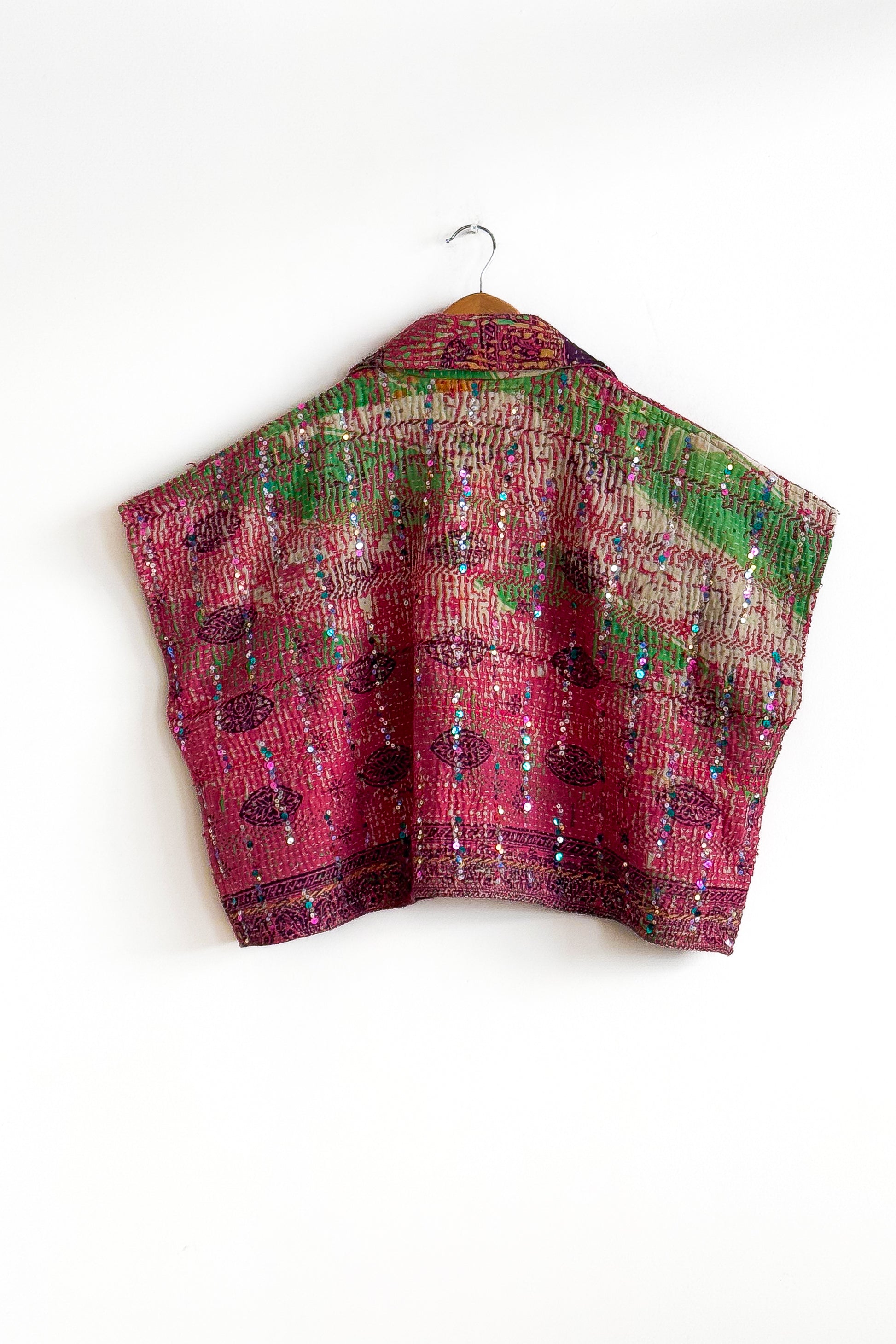 Every coat is one of a kind, made from a vintage kantha quilt. Layers of fabric bound by a hand sewn running stitch - your piece may have markings or worn areas that we find make our coats even more storied and unique.