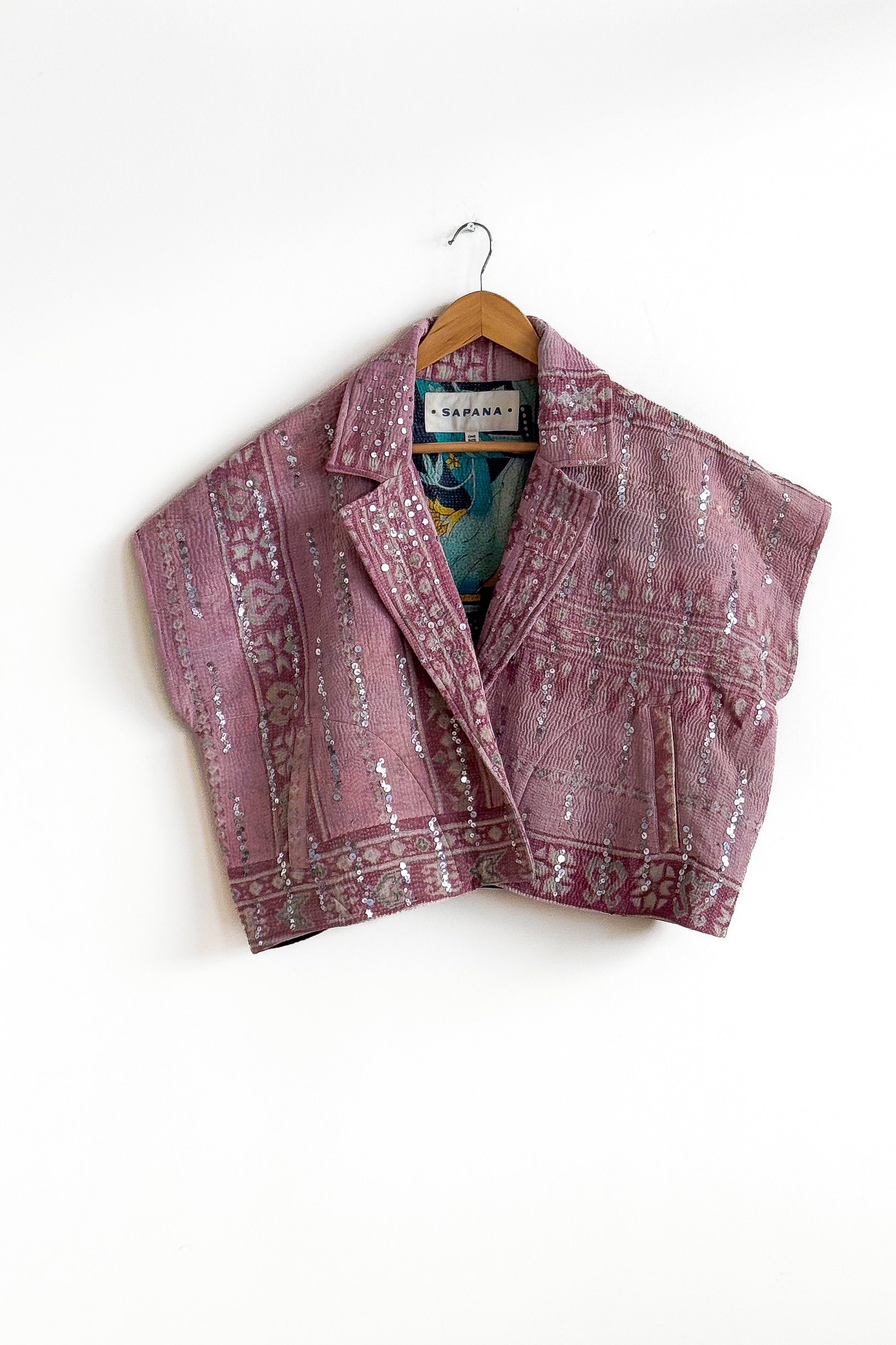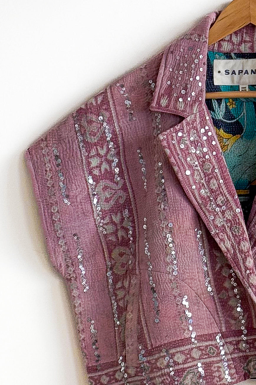 The sequins have been hand applied to your Kantha before it became your coat.