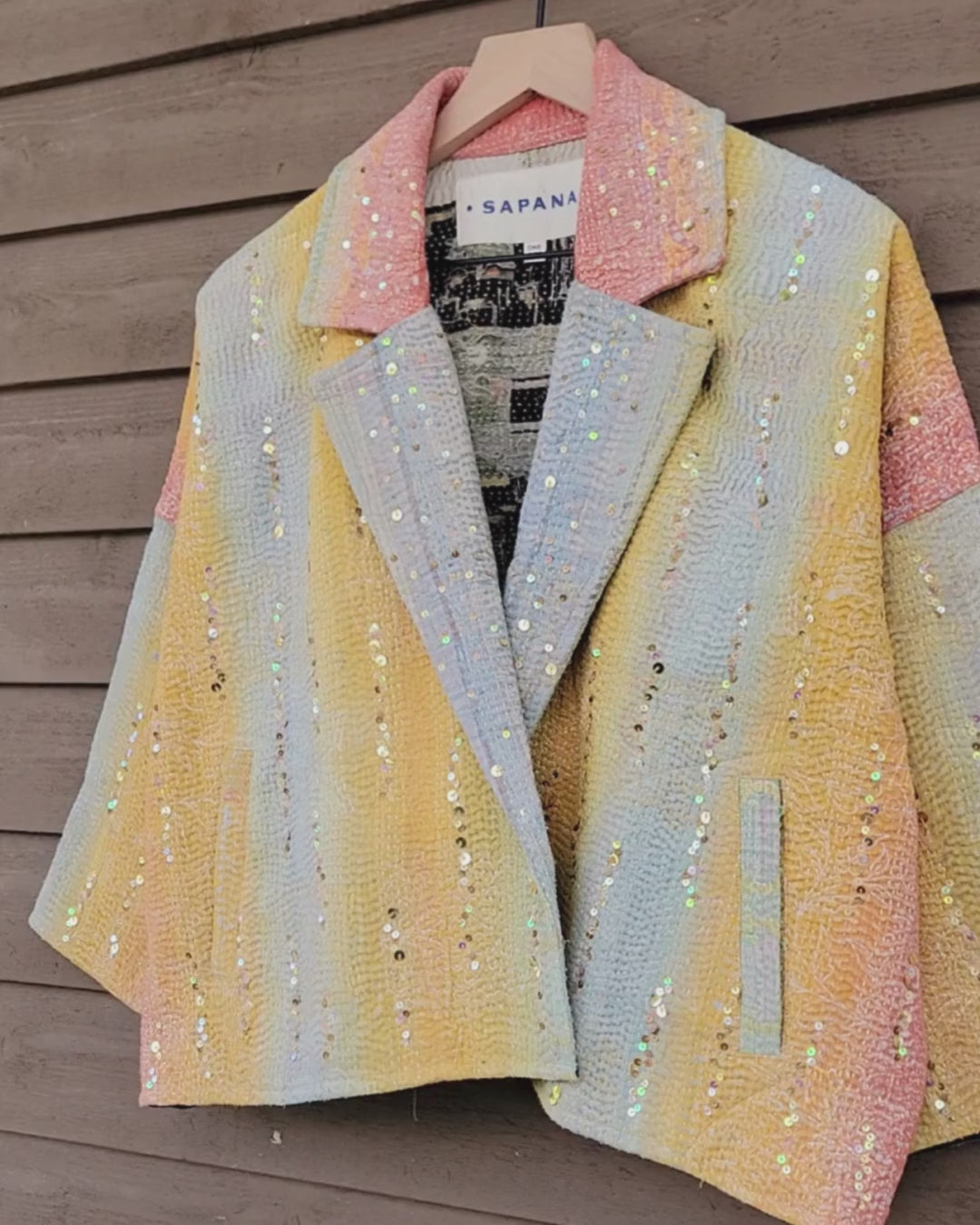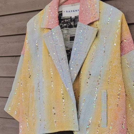 The sequins have been hand applied to your Kantha before it became your coat.