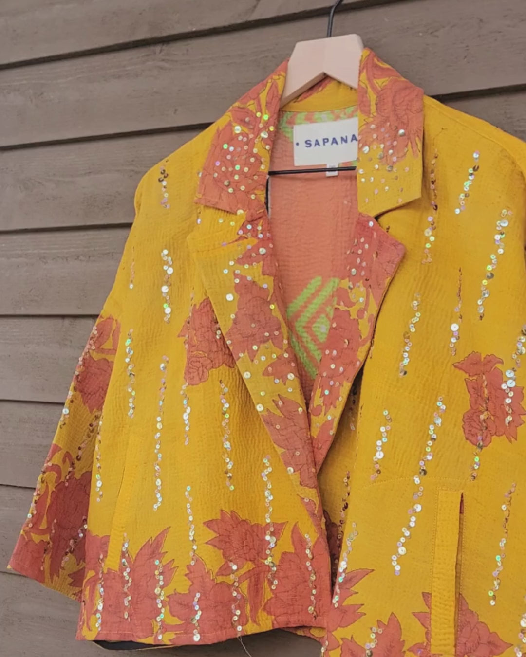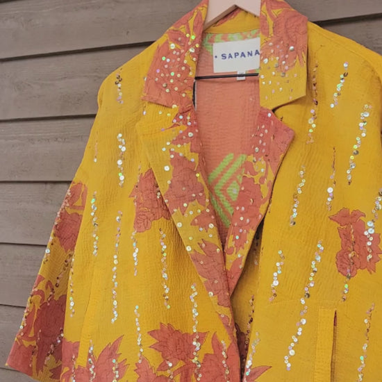The sequins have been hand applied to your Kantha before it became your coat.