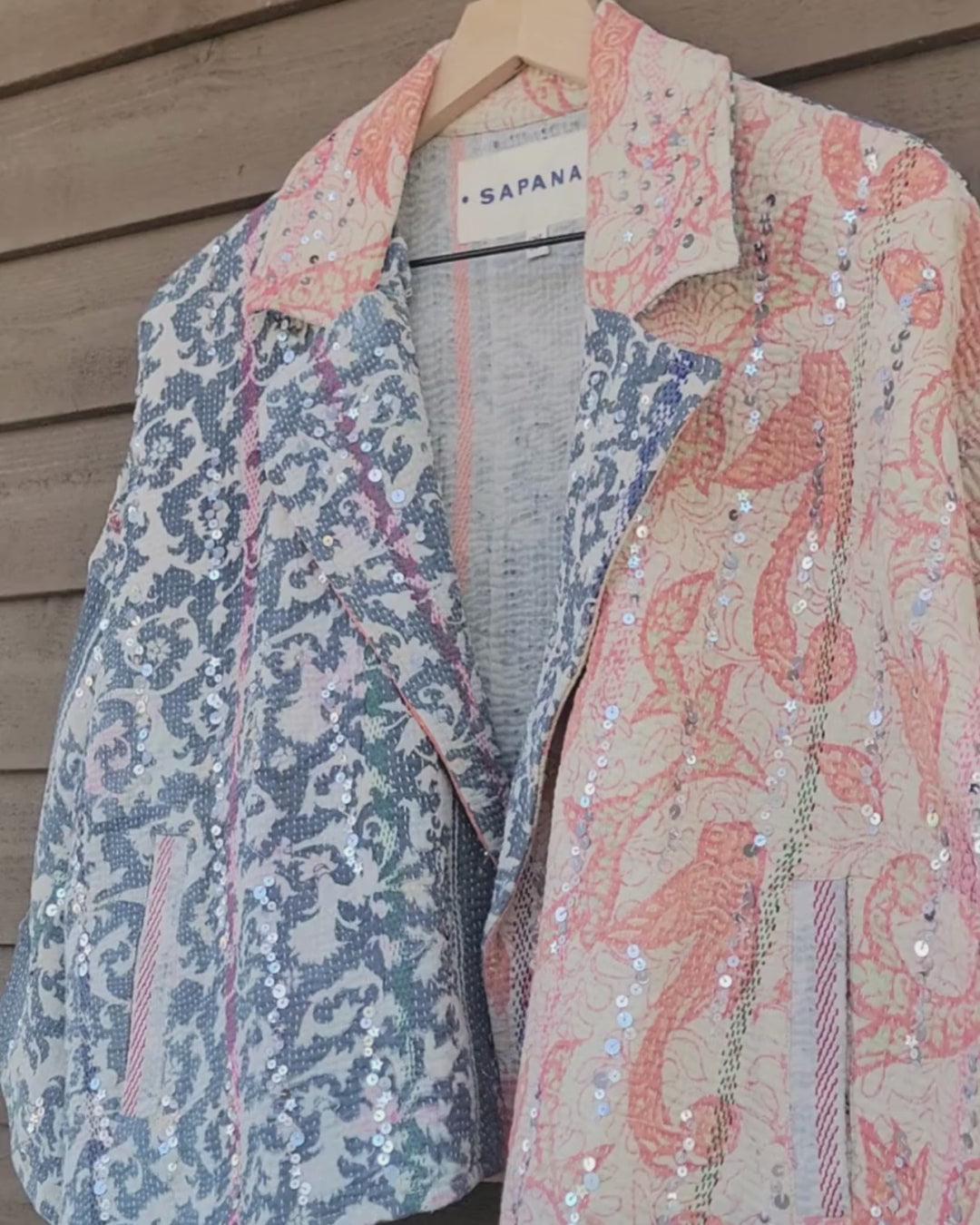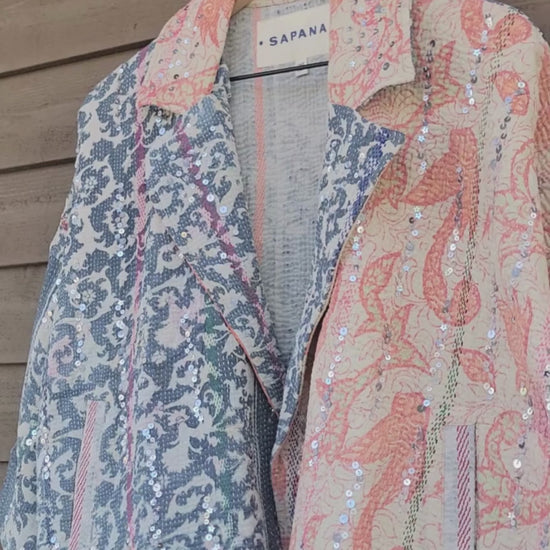 The sequins have been hand applied to your Kantha before it became your coat.
