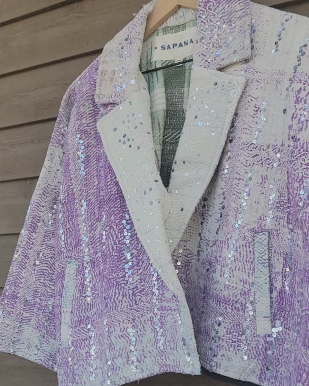 The sequins have been hand applied to your Kantha before it became your coat.
