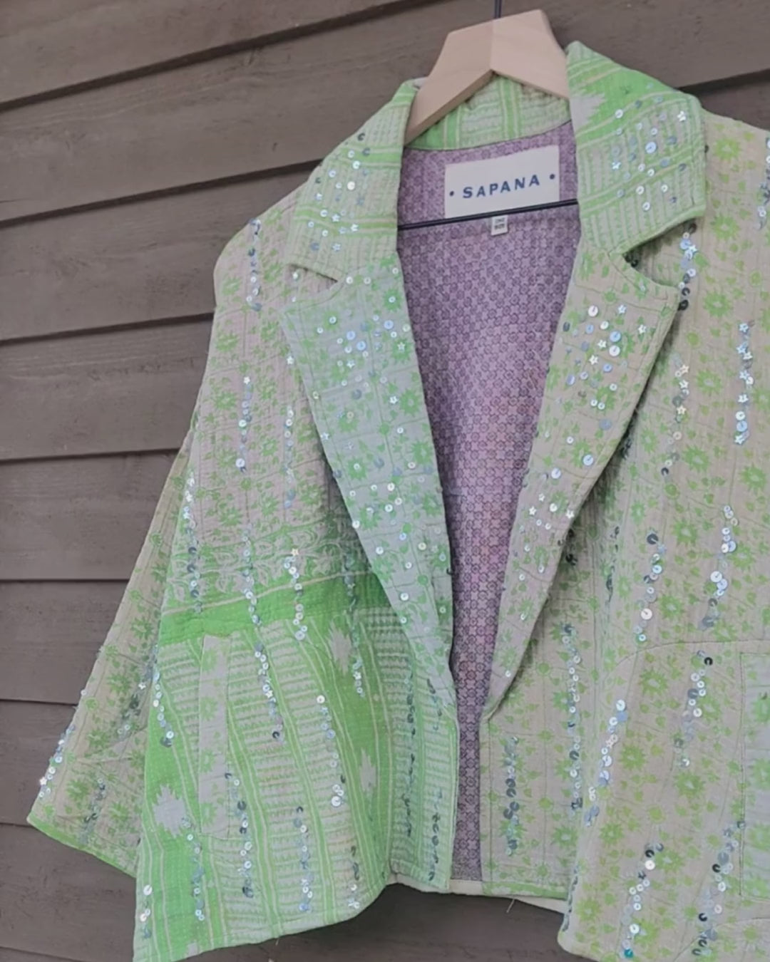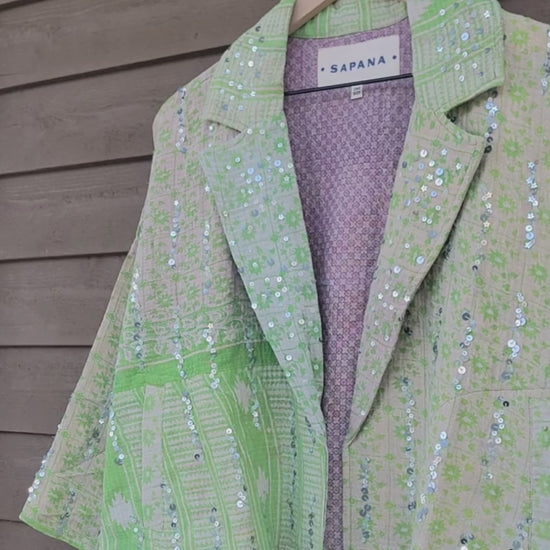 The sequins have been hand applied to your Kantha before it became your coat.