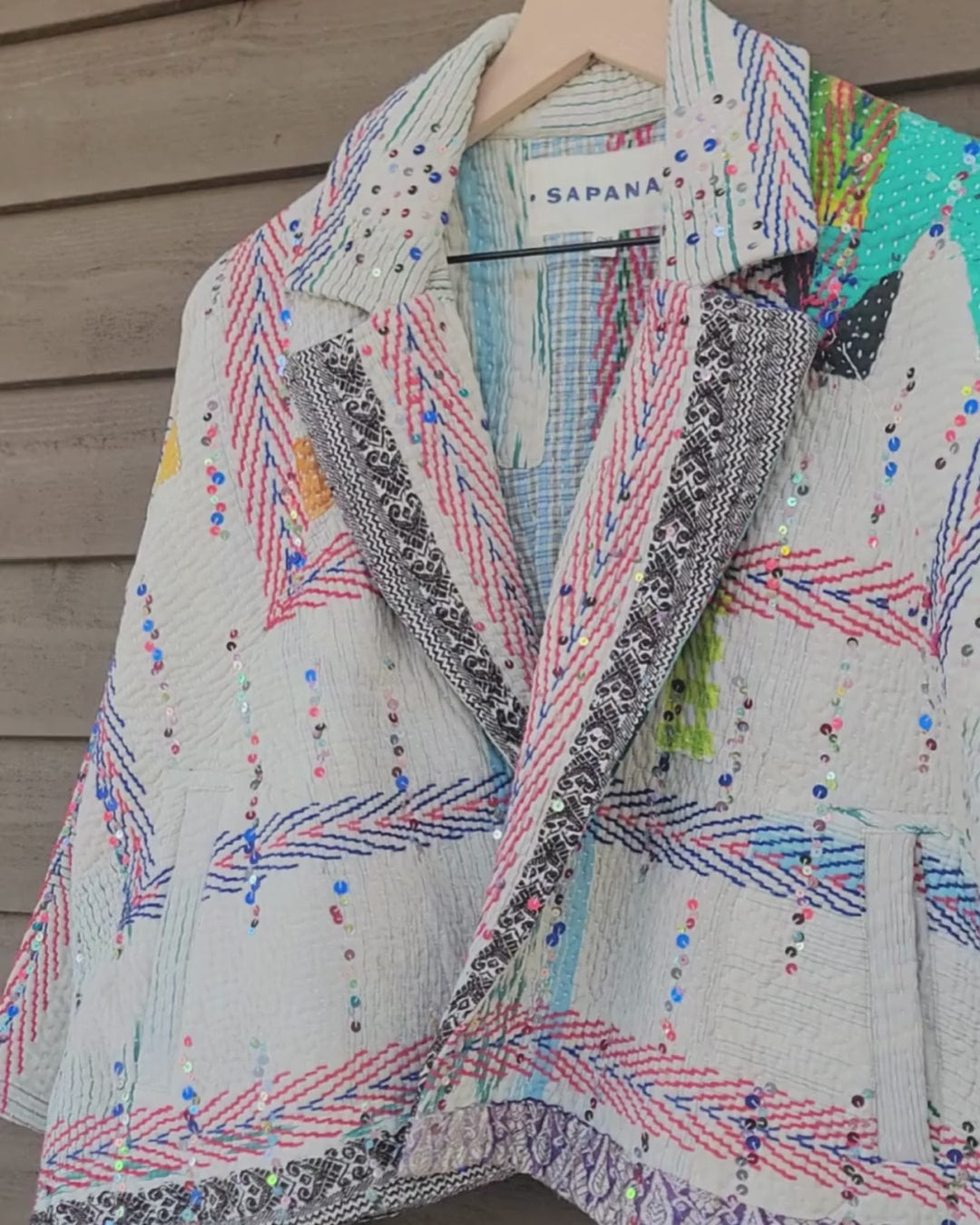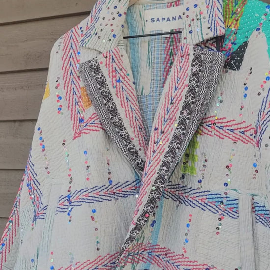 The sequins have been hand applied to your Kantha before it became your coat.