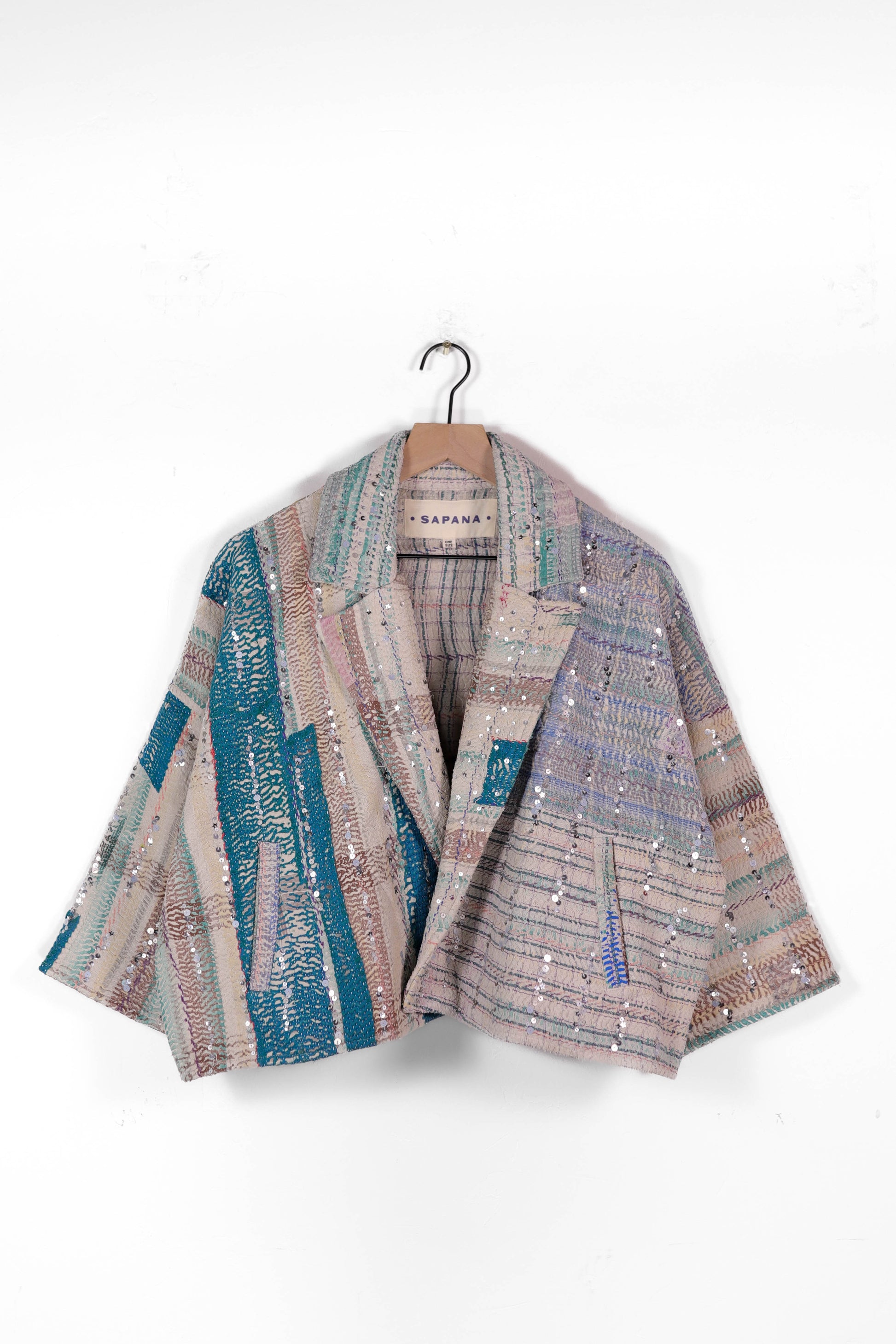 Every coat is one of a kind, made from a vintage kantha quilt. Layers of fabric bound by a hand sewn running stitch - your piece may have markings or worn areas that we find make our coats even more storied and unique.