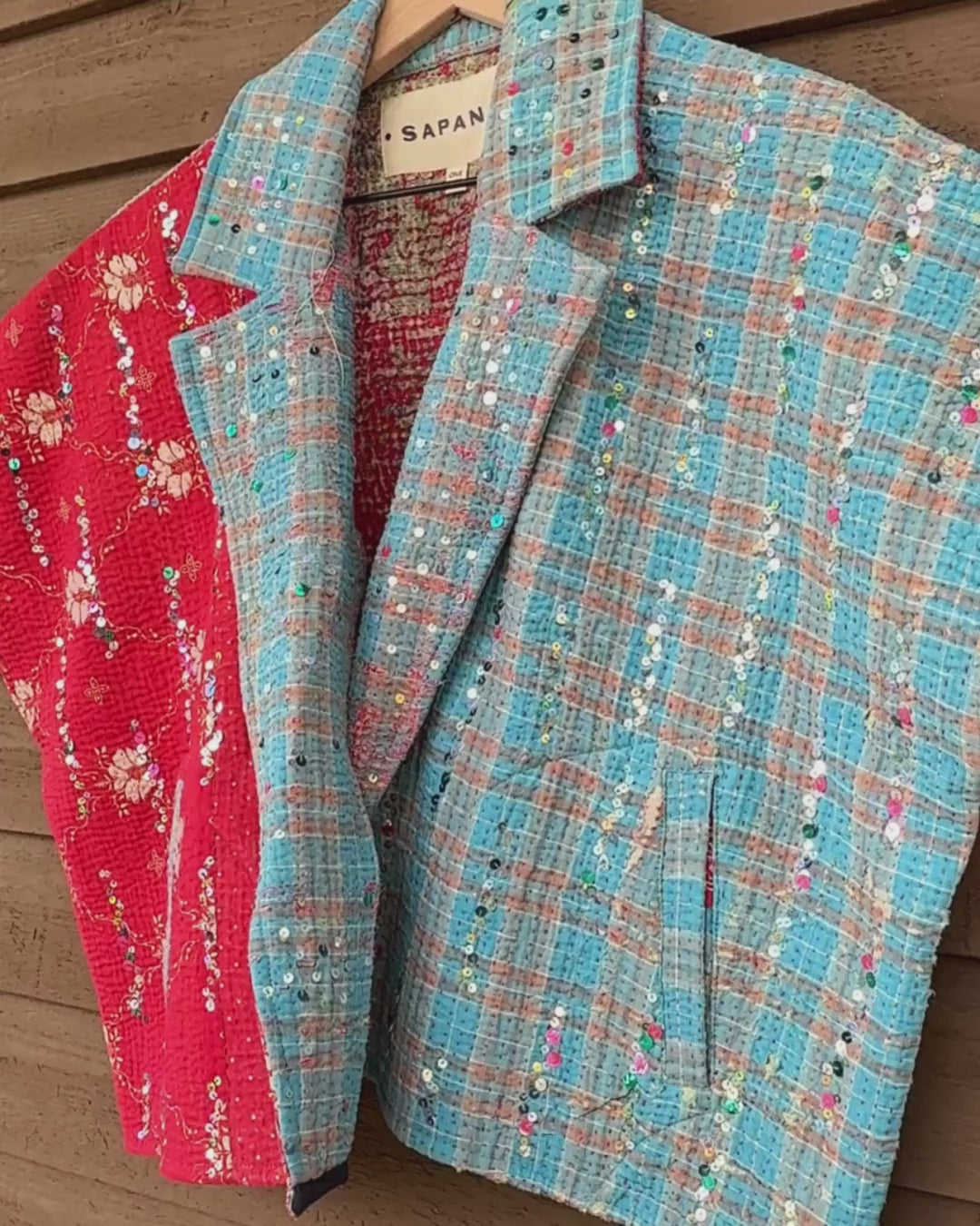 The sequins have been hand applied to your Kantha before it became your coat.