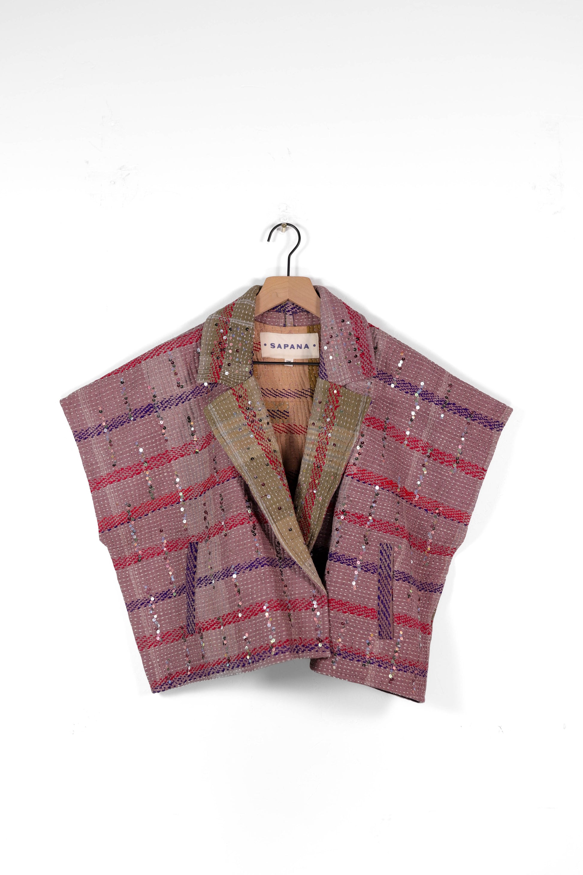 Every coat is one of a kind, made from a vintage kantha quilt. Layers of fabric bound by a hand sewn running stitch - your piece may have markings or worn areas that we find make our coats even more storied and unique.