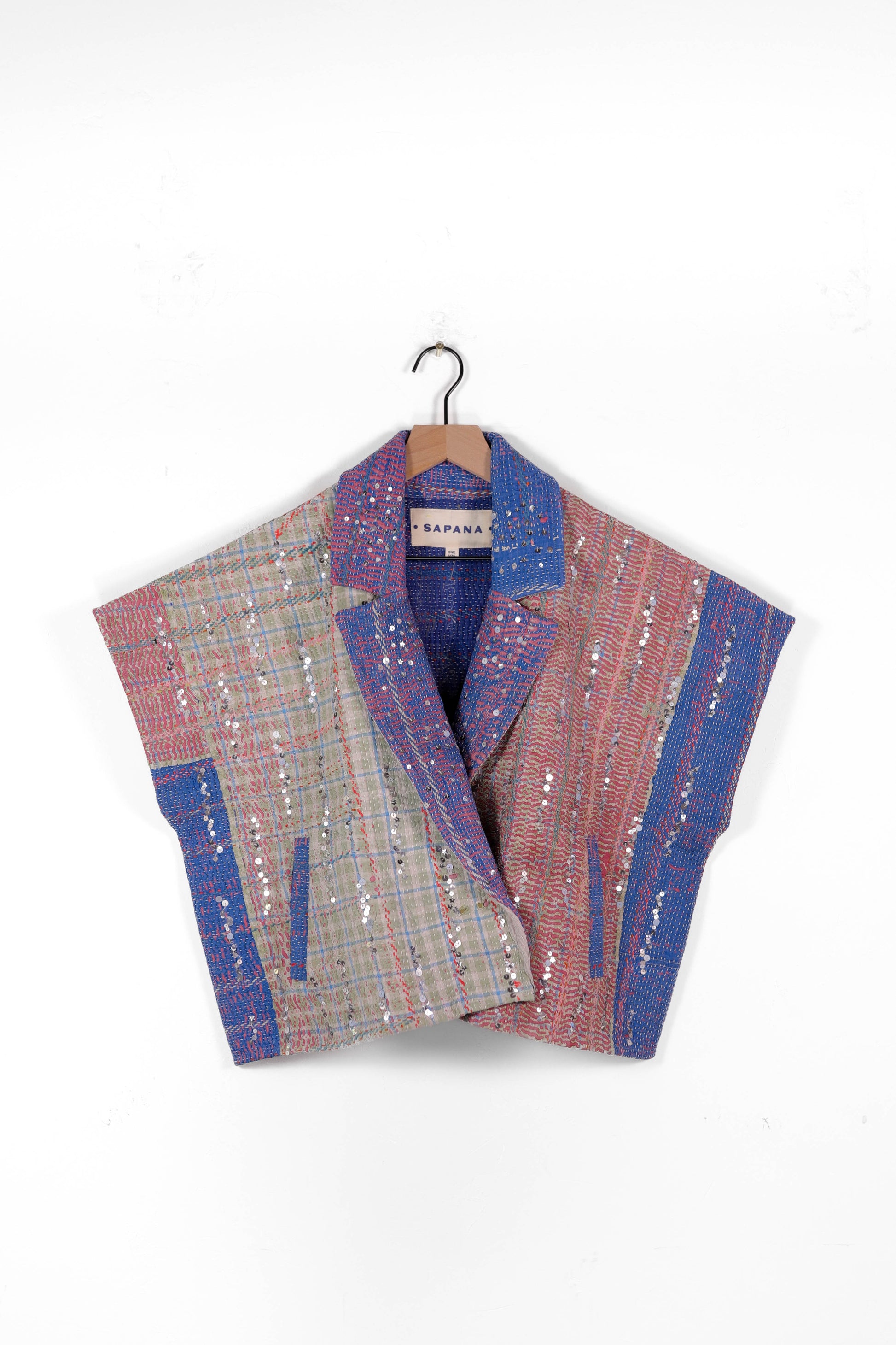 Every coat is one of a kind, made from a vintage kantha quilt. Layers of fabric bound by a hand sewn running stitch - your piece may have markings or worn areas that we find make our coats even more storied and unique.