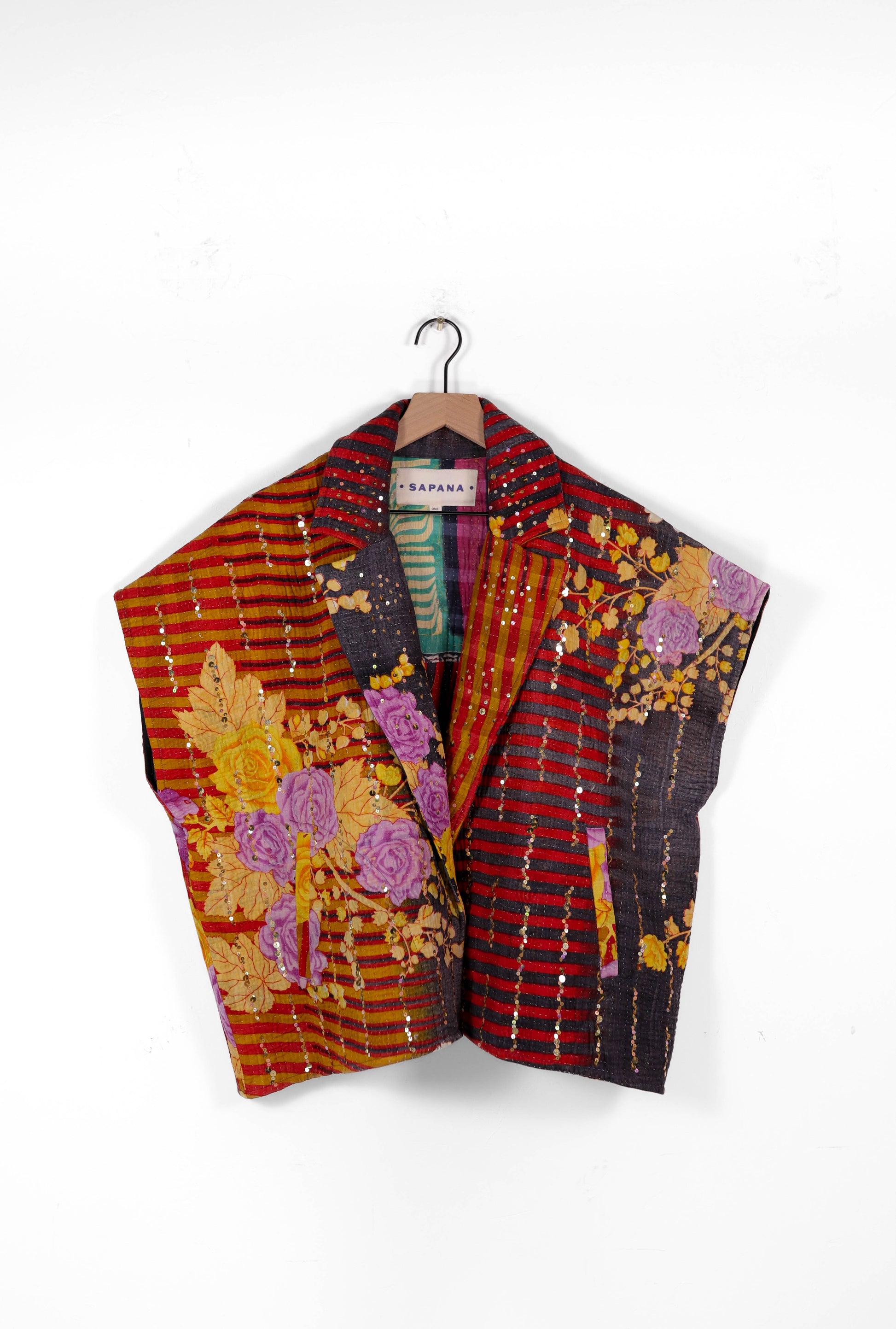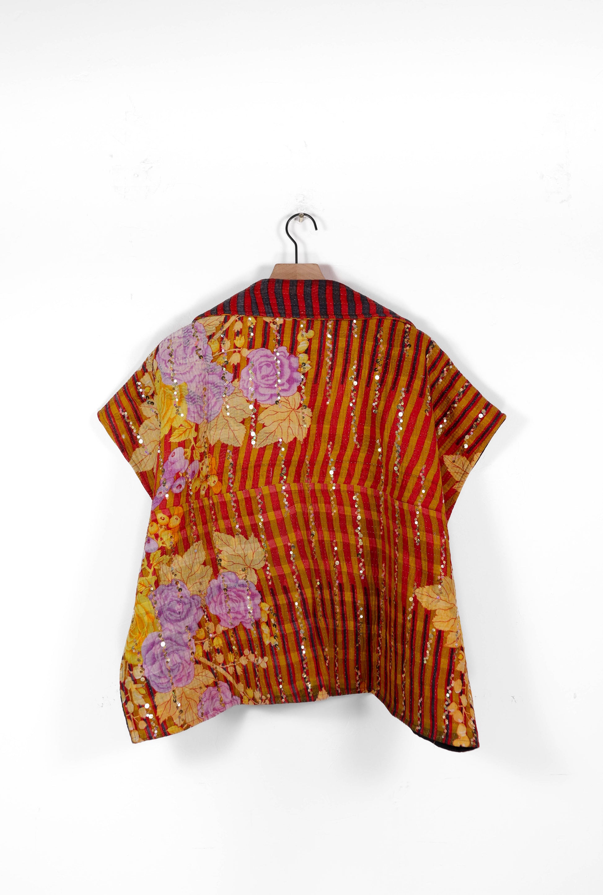 Every coat is one of a kind, made from a vintage kantha quilt. Layers of fabric bound by a hand sewn running stitch - your piece may have markings or worn areas that we find make our coats even more storied and unique.