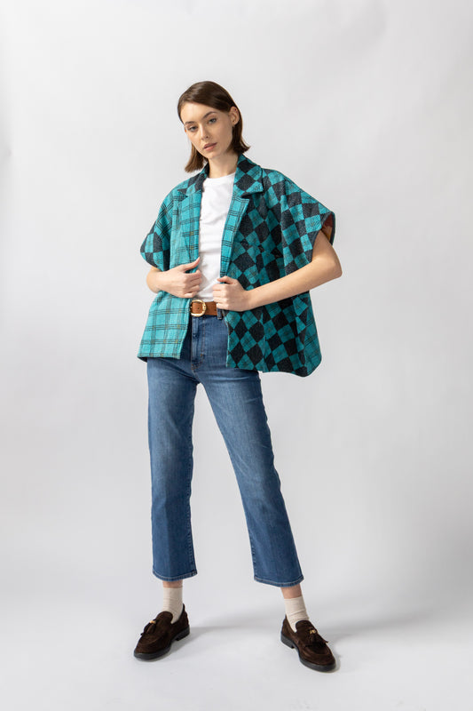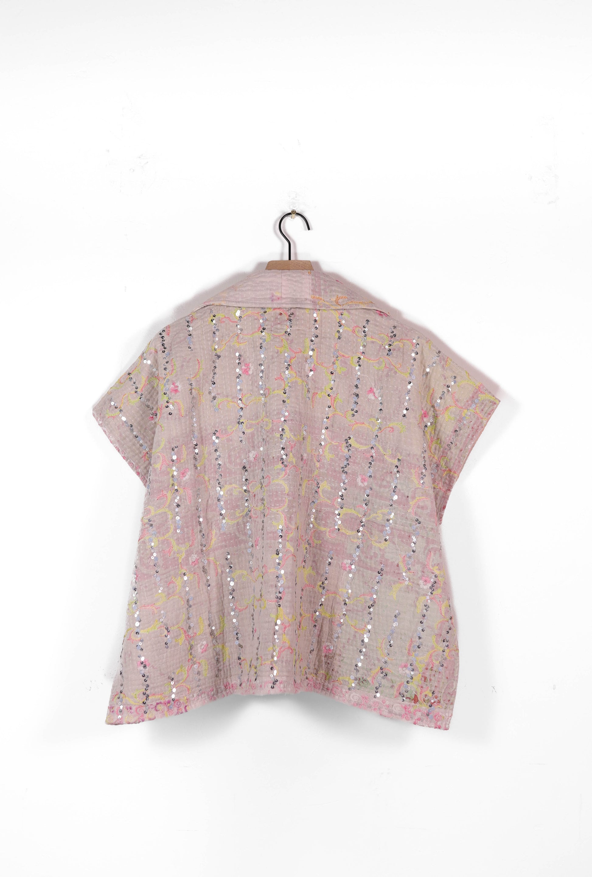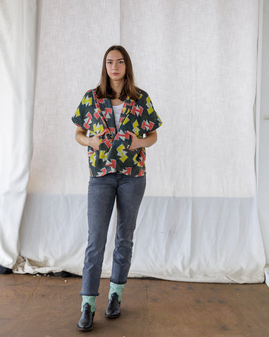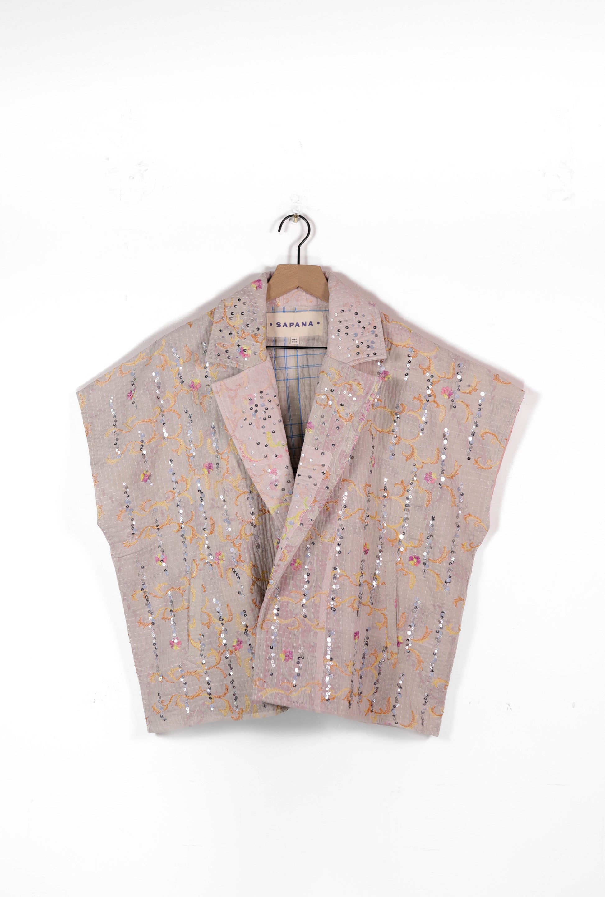 Every coat is one of a kind, made from a vintage kantha quilt. Layers of fabric bound by a hand sewn running stitch - your piece may have markings or worn areas that we find make our coats even more storied and unique.