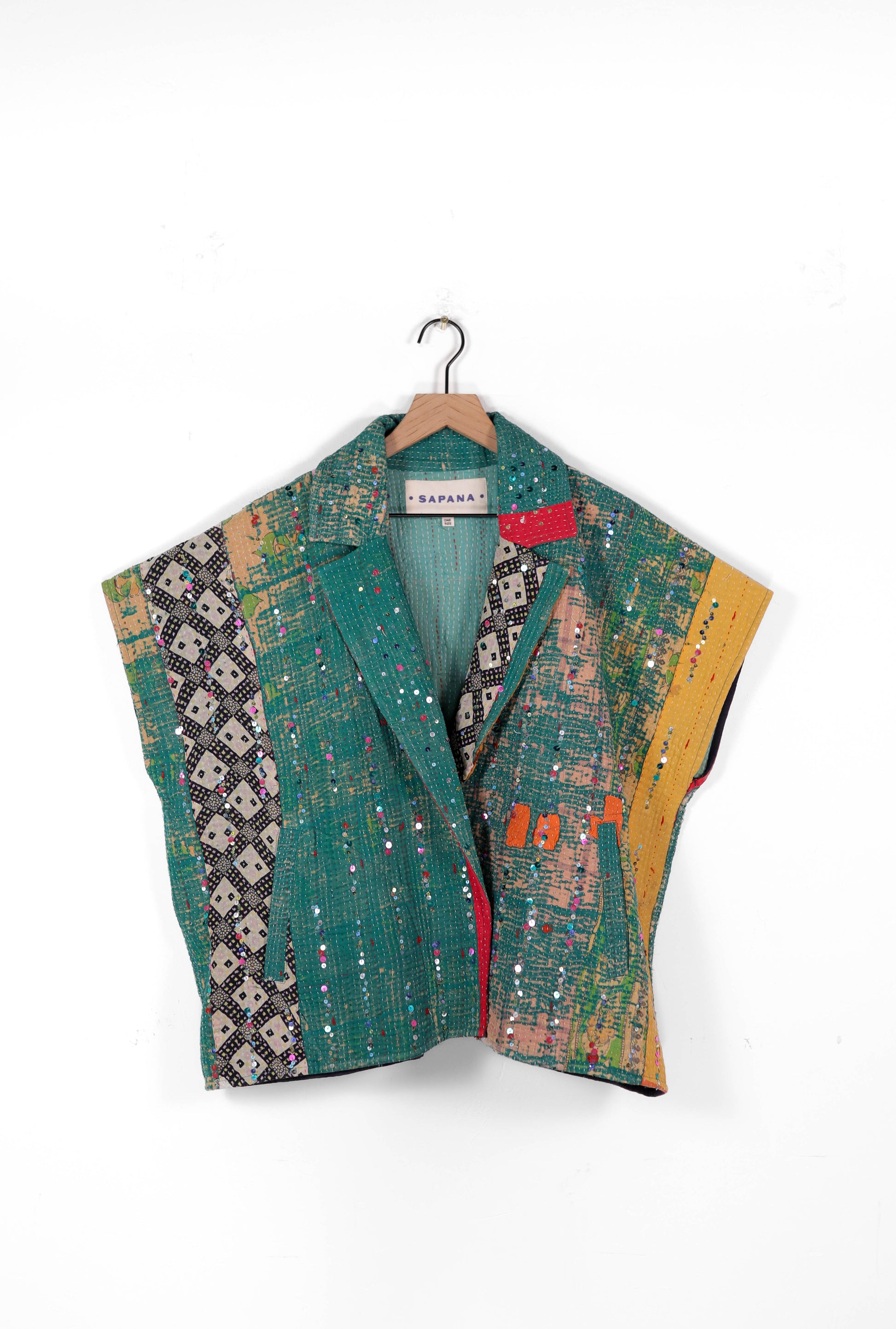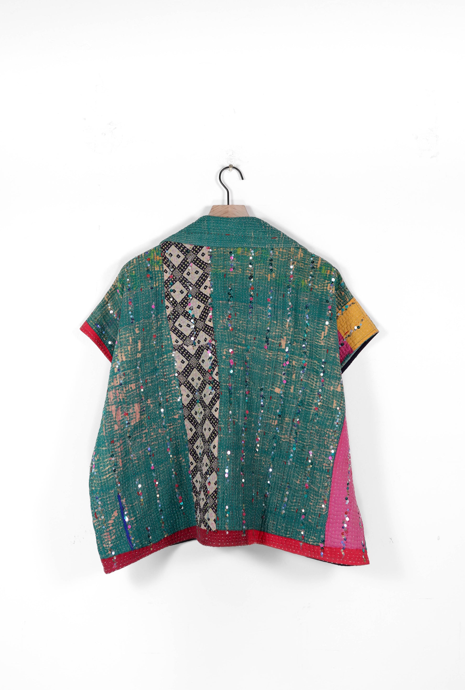Every coat is one of a kind, made from a vintage kantha quilt. Layers of fabric bound by a hand sewn running stitch - your piece may have markings or worn areas that we find make our coats even more storied and unique.