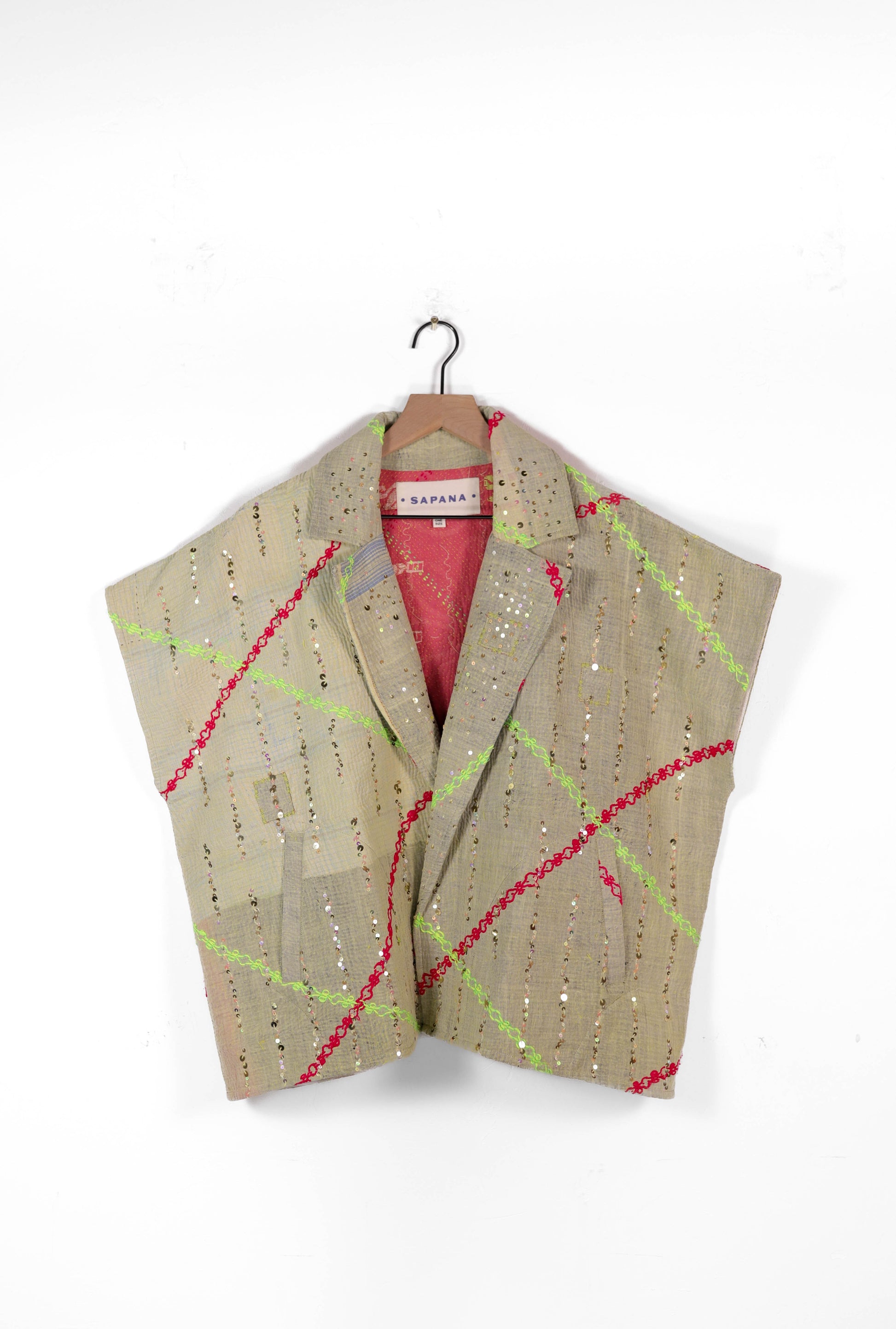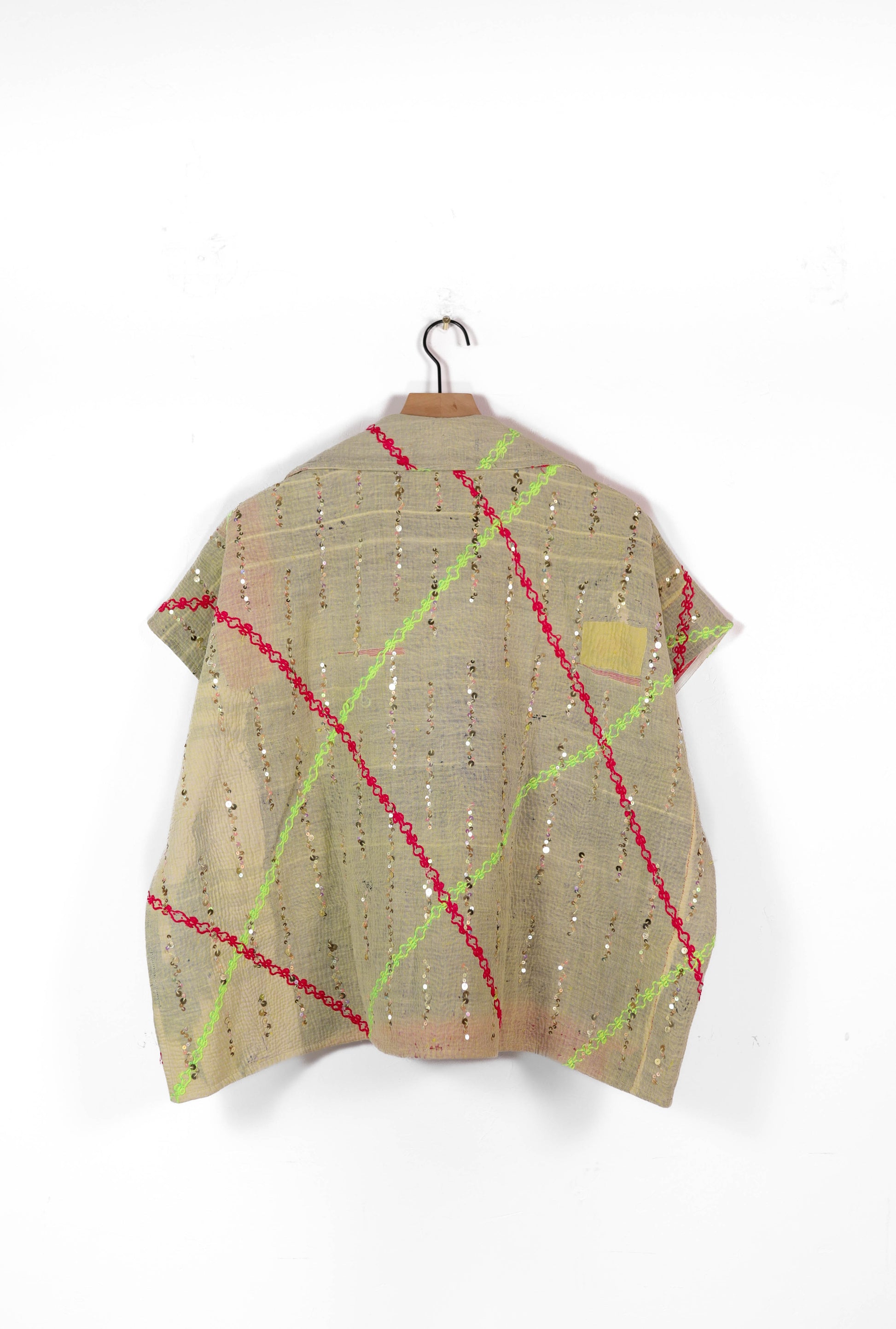 The sequins have been hand applied to your Kantha before it became your coat.