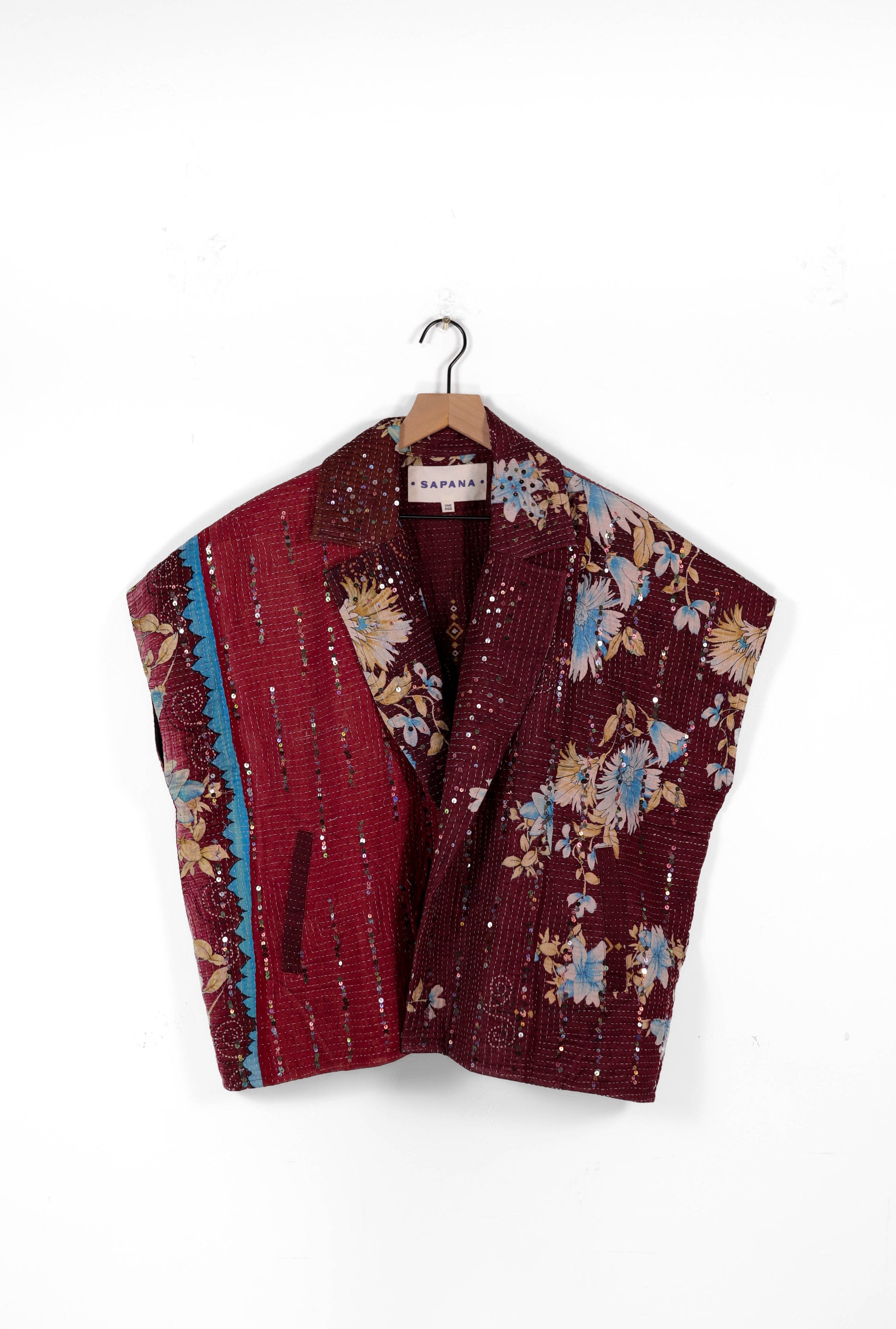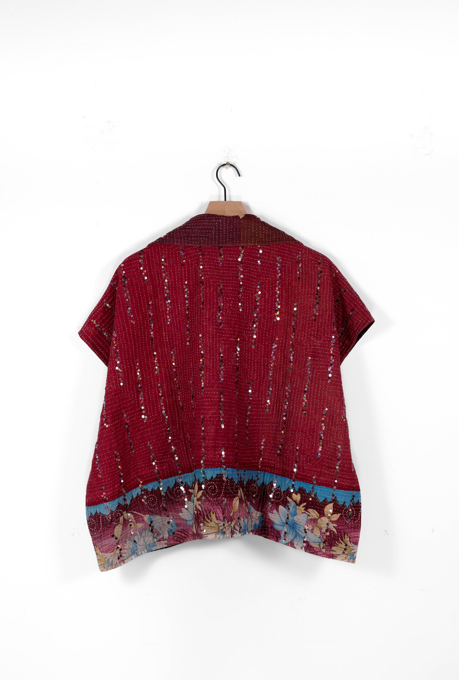 Every coat is one of a kind, made from a vintage kantha quilt. Layers of fabric bound by a hand sewn running stitch - your piece may have markings or worn areas that we find make our coats even more storied and unique.