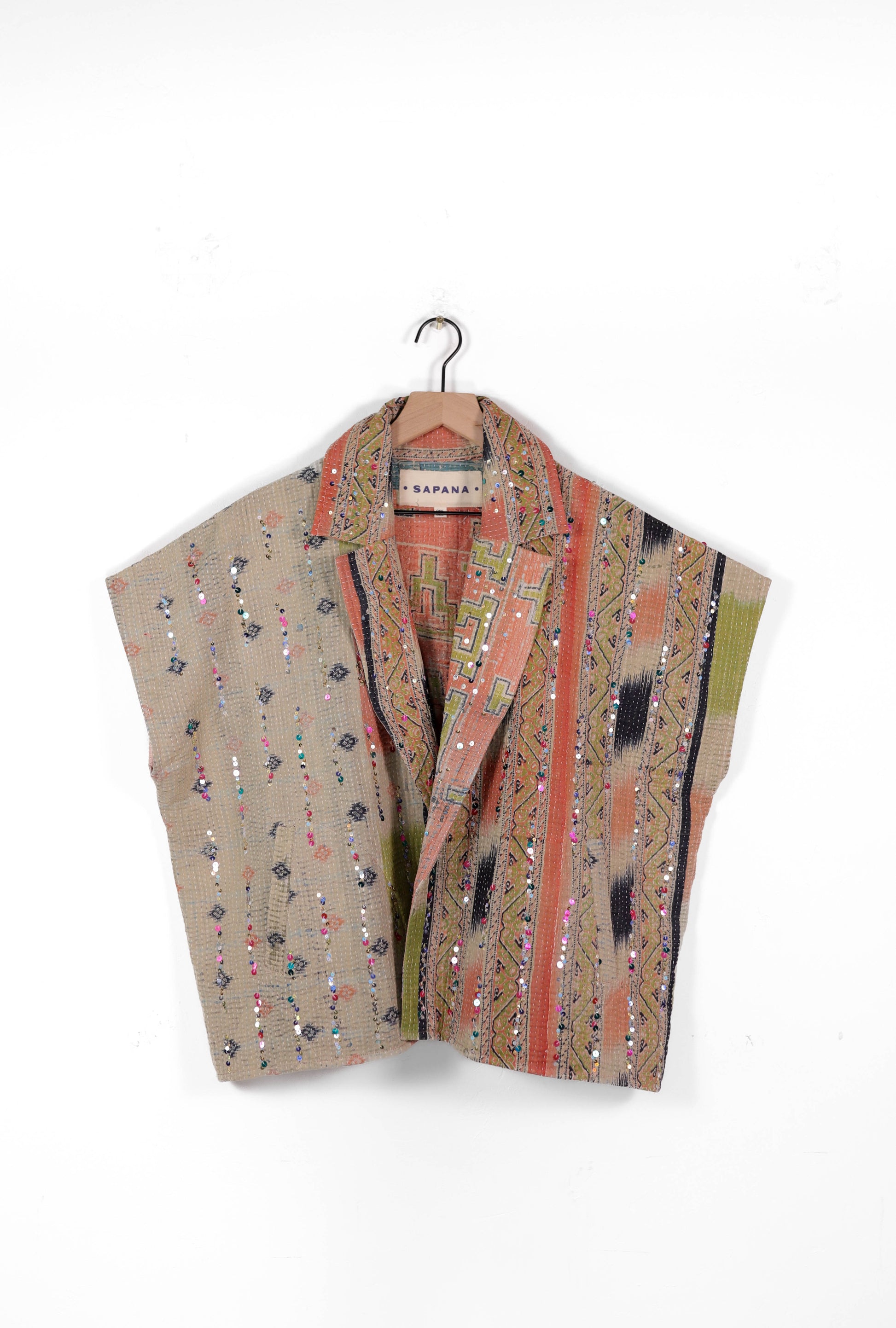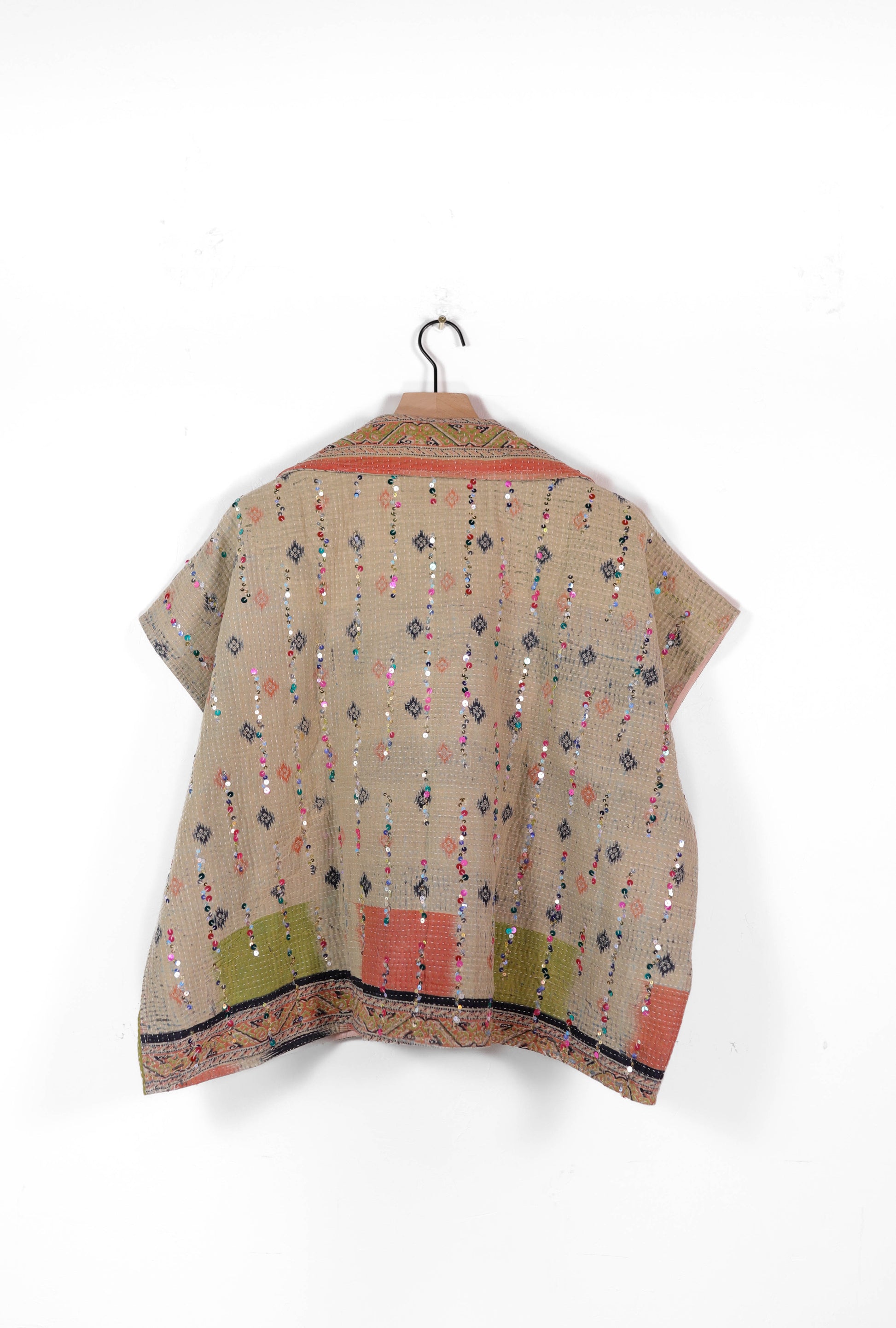 The sequins have been hand applied to your Kantha before it became your coat.