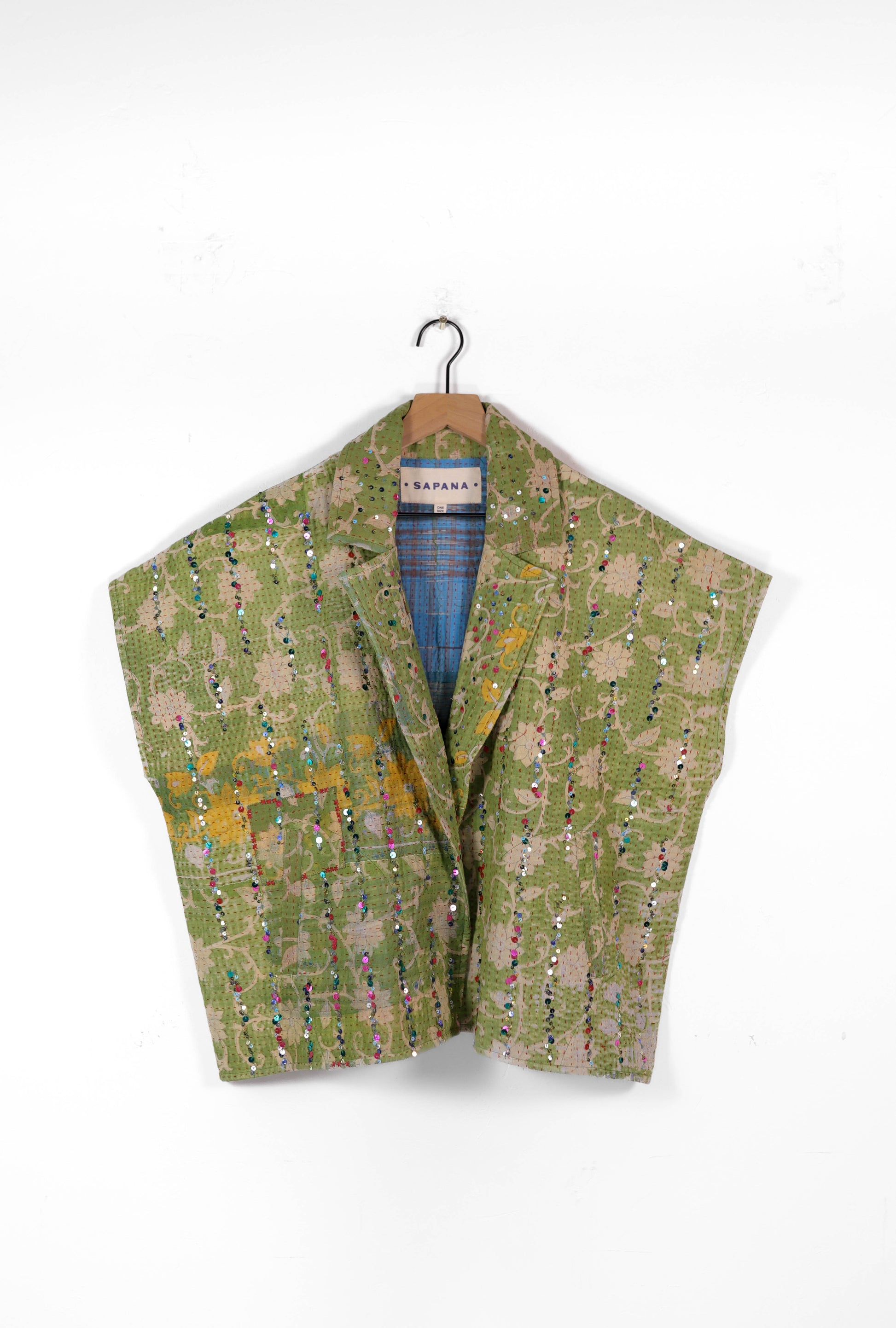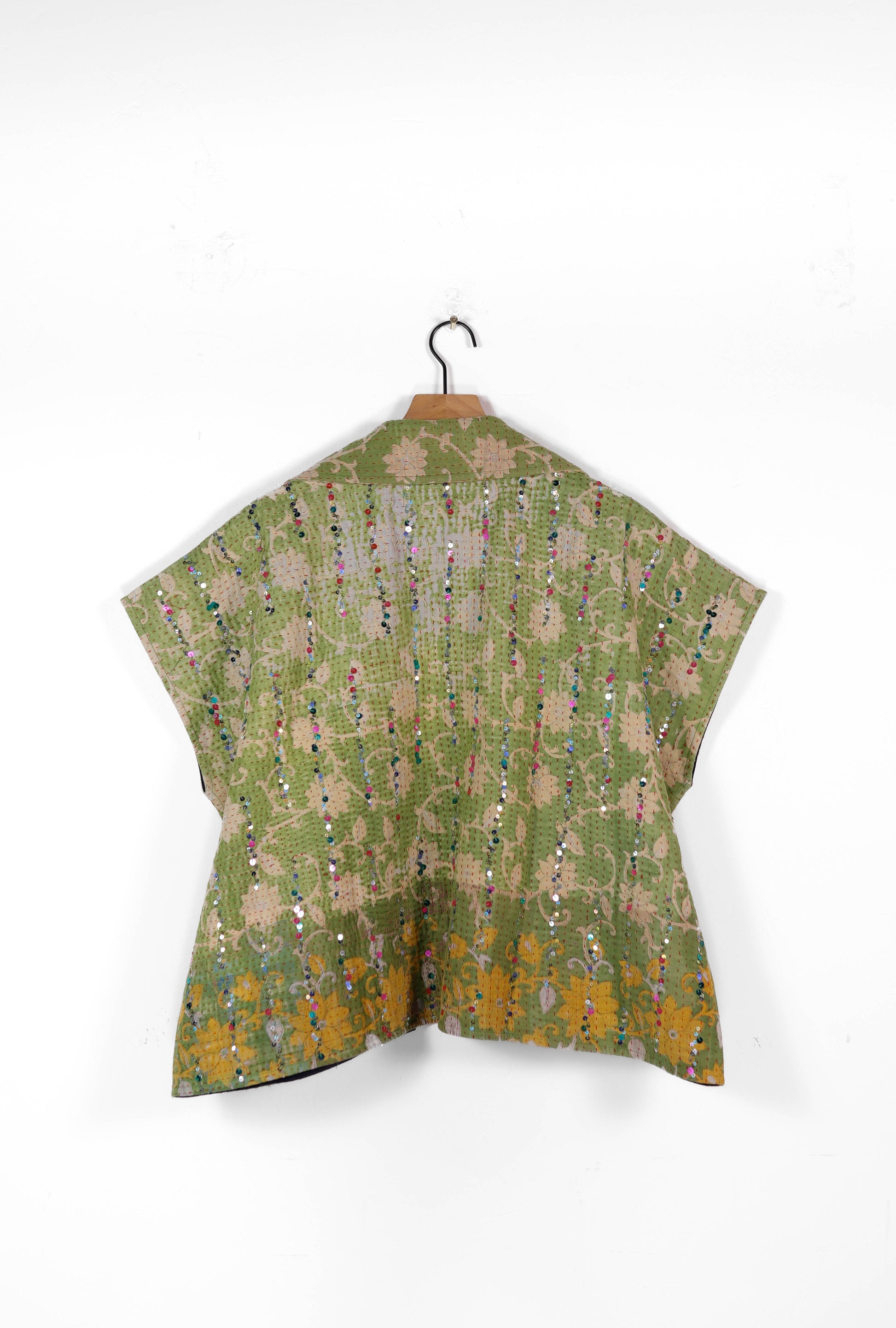 Every coat is one of a kind, made from a vintage kantha quilt. Layers of fabric bound by a hand sewn running stitch - your piece may have markings or worn areas that we find make our coats even more storied and unique.